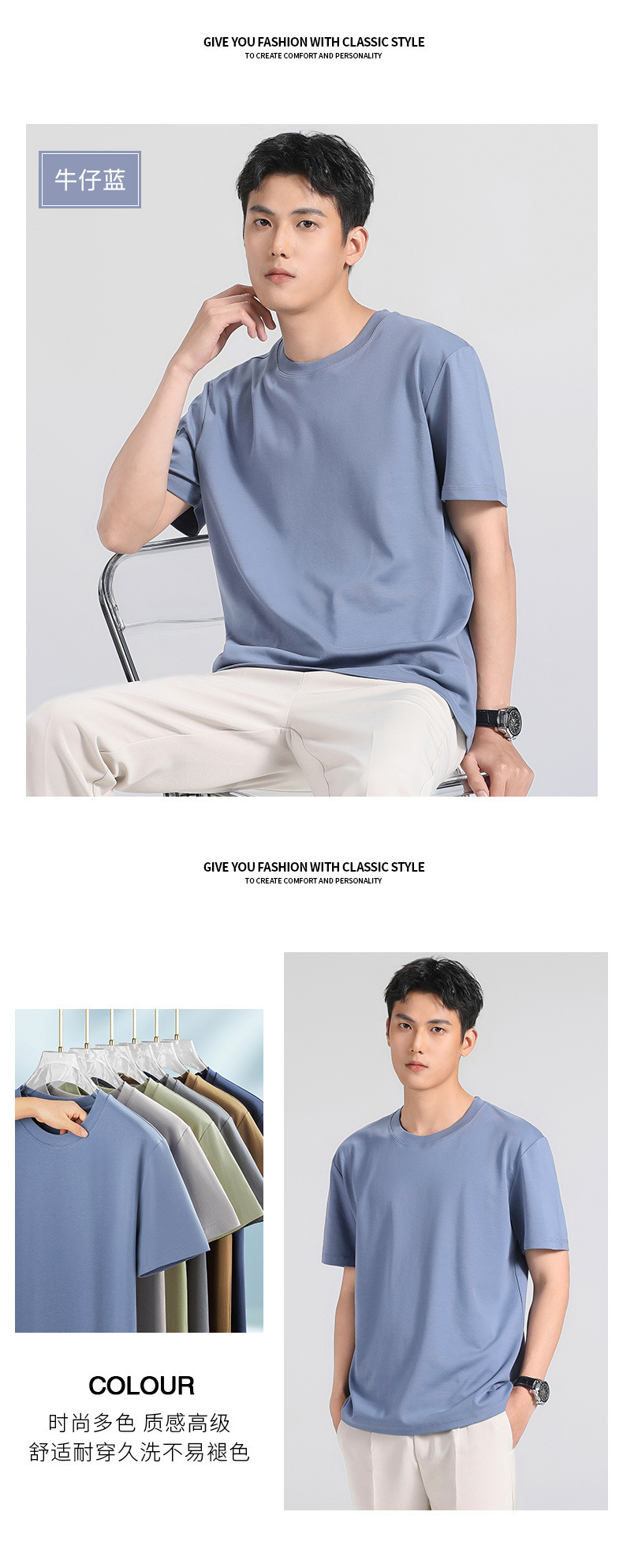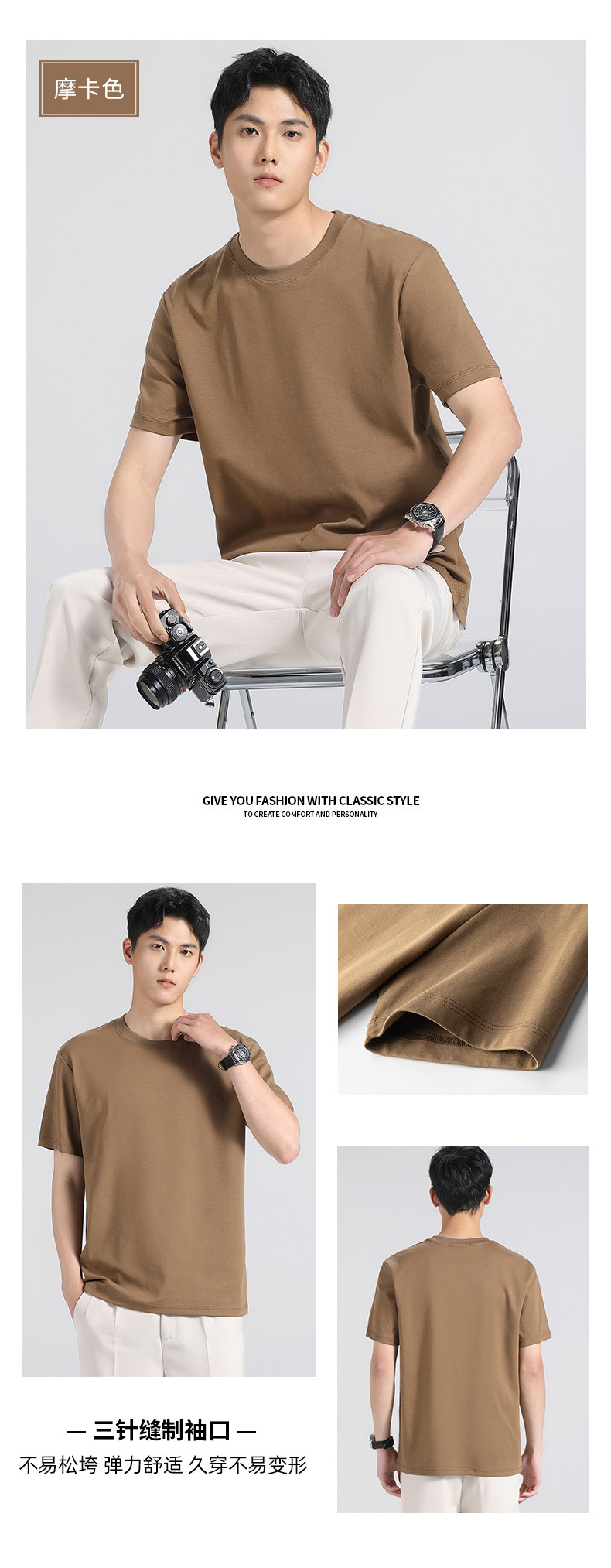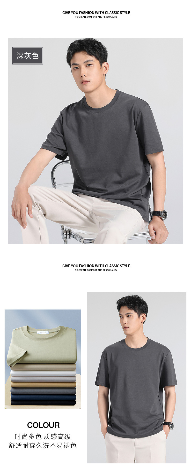 270g 하이 엔드 액체 암모니아 머서라이즈 코튼 반팔 티셔츠 남성용 아이스 실크 시원한 여름 느슨한 하이 엔드 얇은 티셔츠 남성용