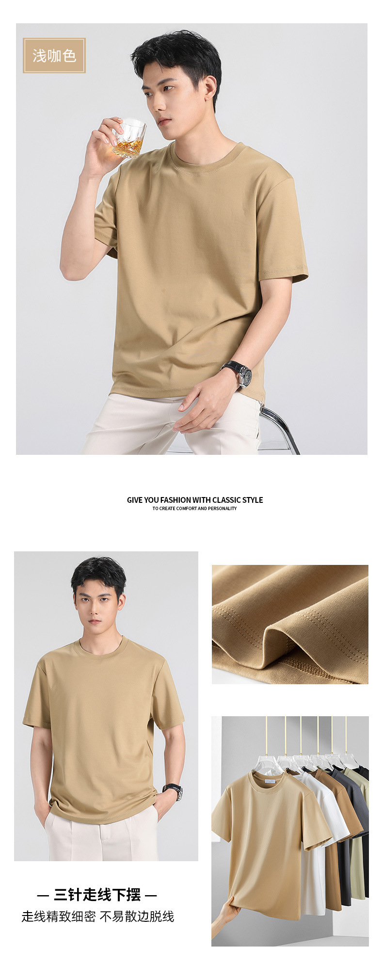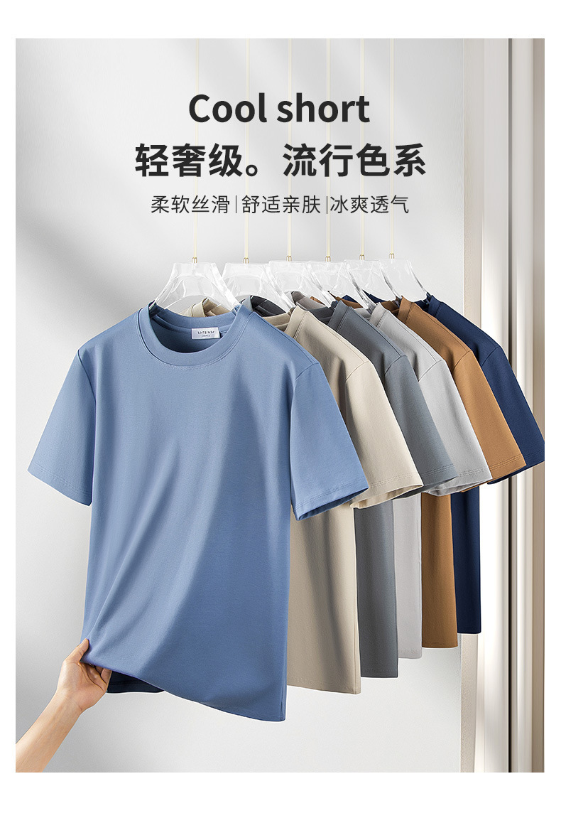 270g 하이 엔드 액체 암모니아 머서라이즈 코튼 반팔 티셔츠 남성용 아이스 실크 시원한 여름 느슨한 하이 엔드 얇은 티셔츠 남성용스토어 가기
