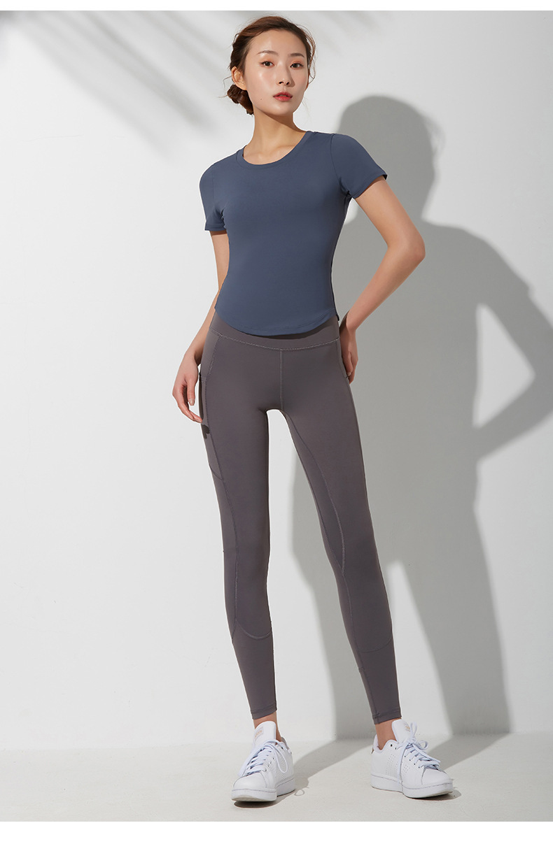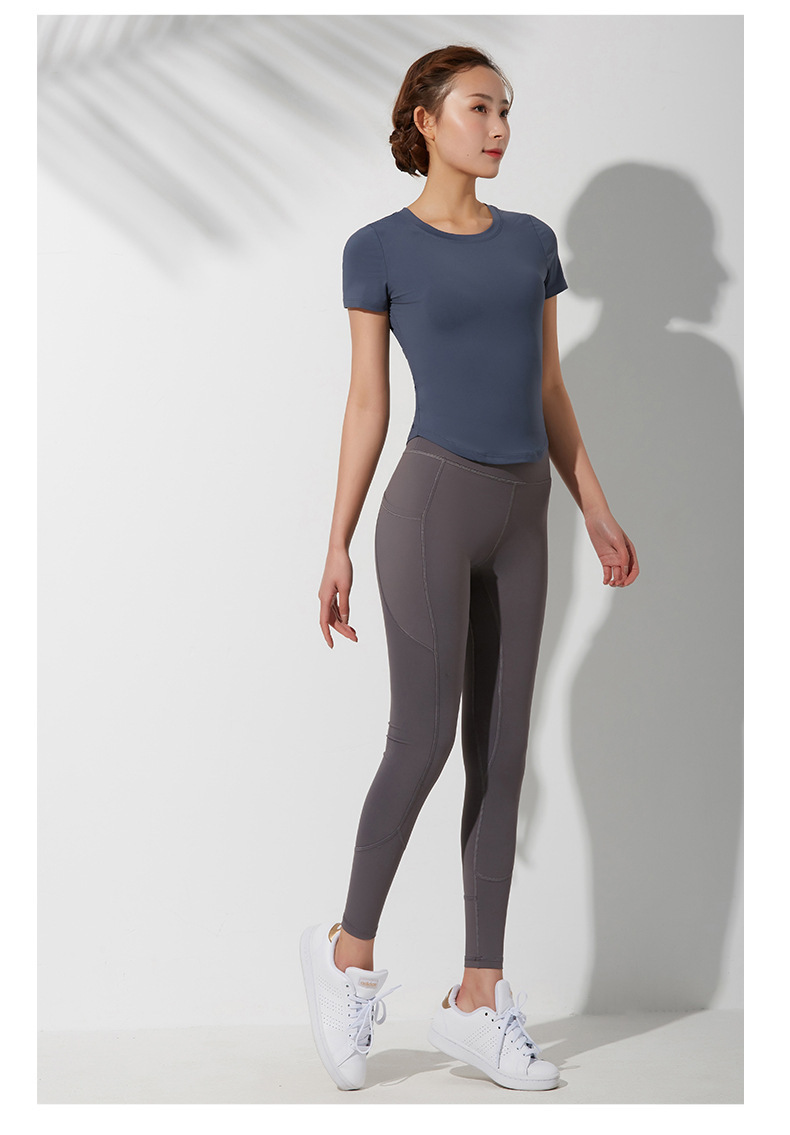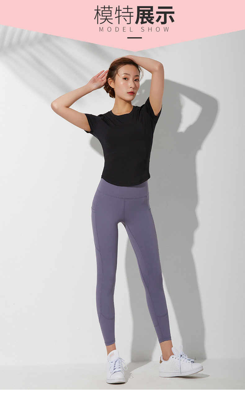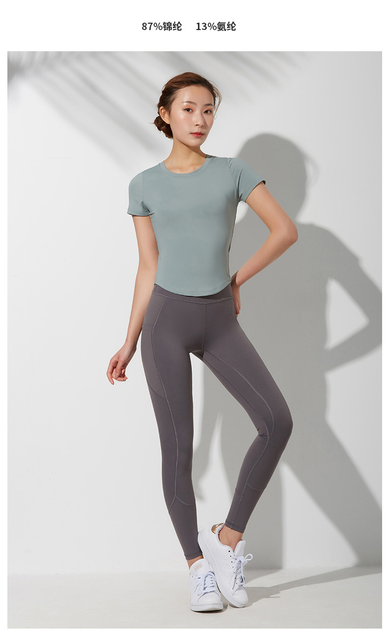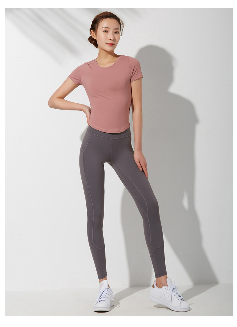 봄과 여름 2025 새로운 사이드 스플릿 요가 짧은 소매 여성의 원활한 피부 친화적 인 스포츠 최고의 여성 크로스 스티칭 피트니스 세트스토어 가기