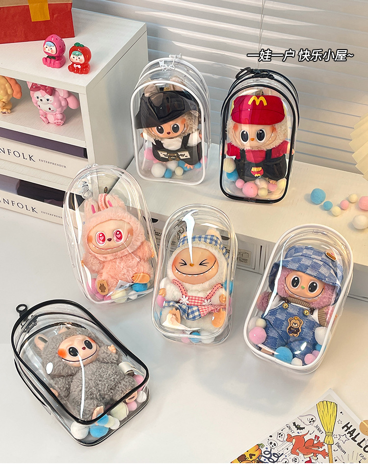 라부부 보호 케이스 마카롱 방진 가방 면 인형 외출용 가방 에폭시 19cm 블라인드 박스 수납 가방스토어 가기