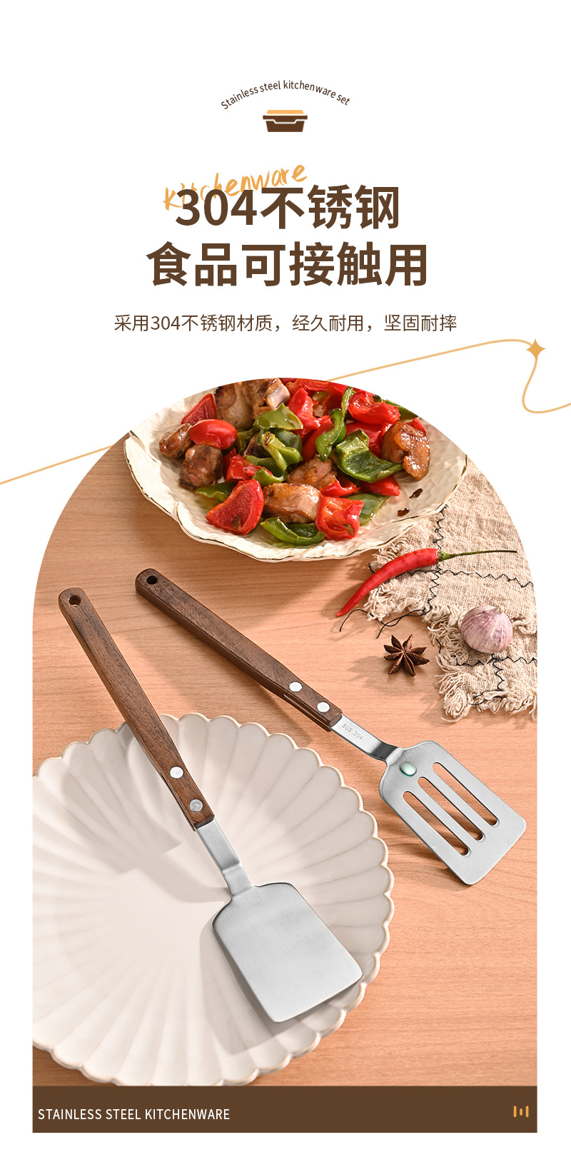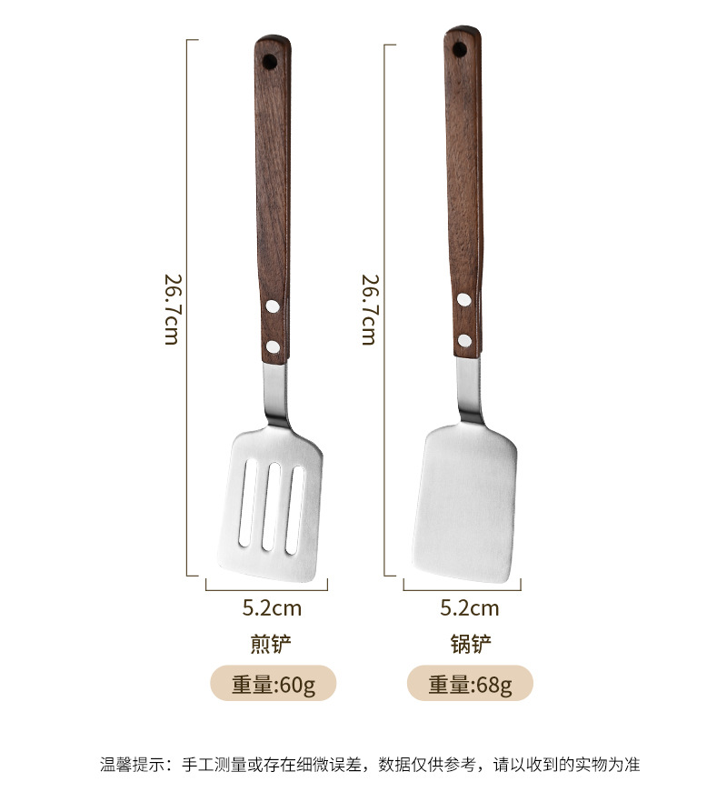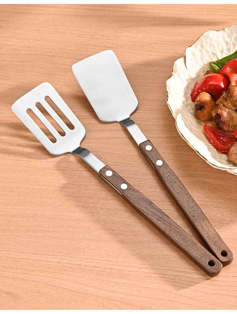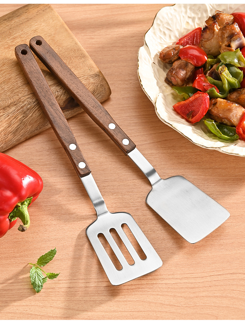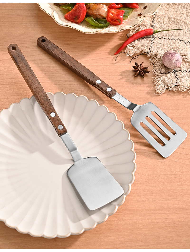 새로운 주방용품 스테이크 작은 냄비 삽 튀김 삽 미니 경량 블랙 호두 손잡이 304 스테인레스 스틸 요리 삽