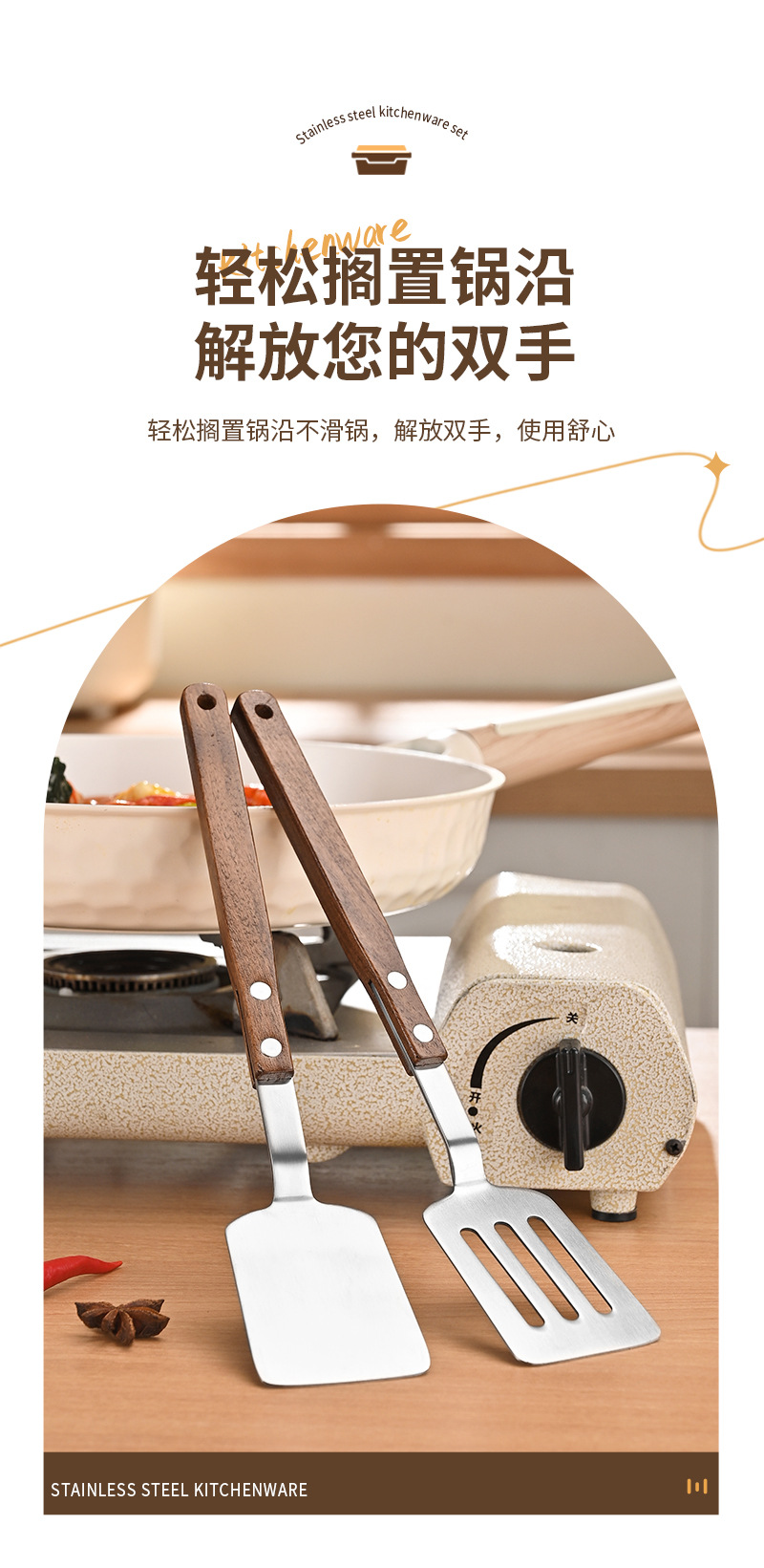 새로운 주방용품 스테이크 작은 냄비 삽 튀김 삽 미니 경량 블랙 호두 손잡이 304 스테인레스 스틸 요리 삽스토어 가기