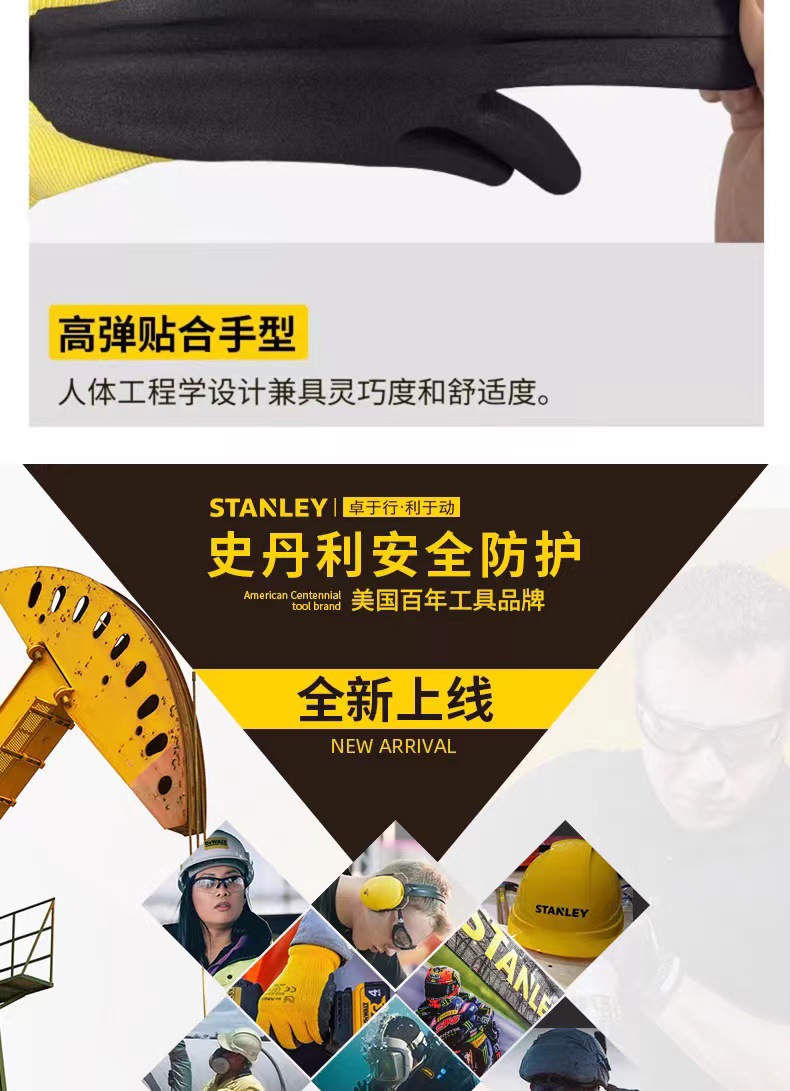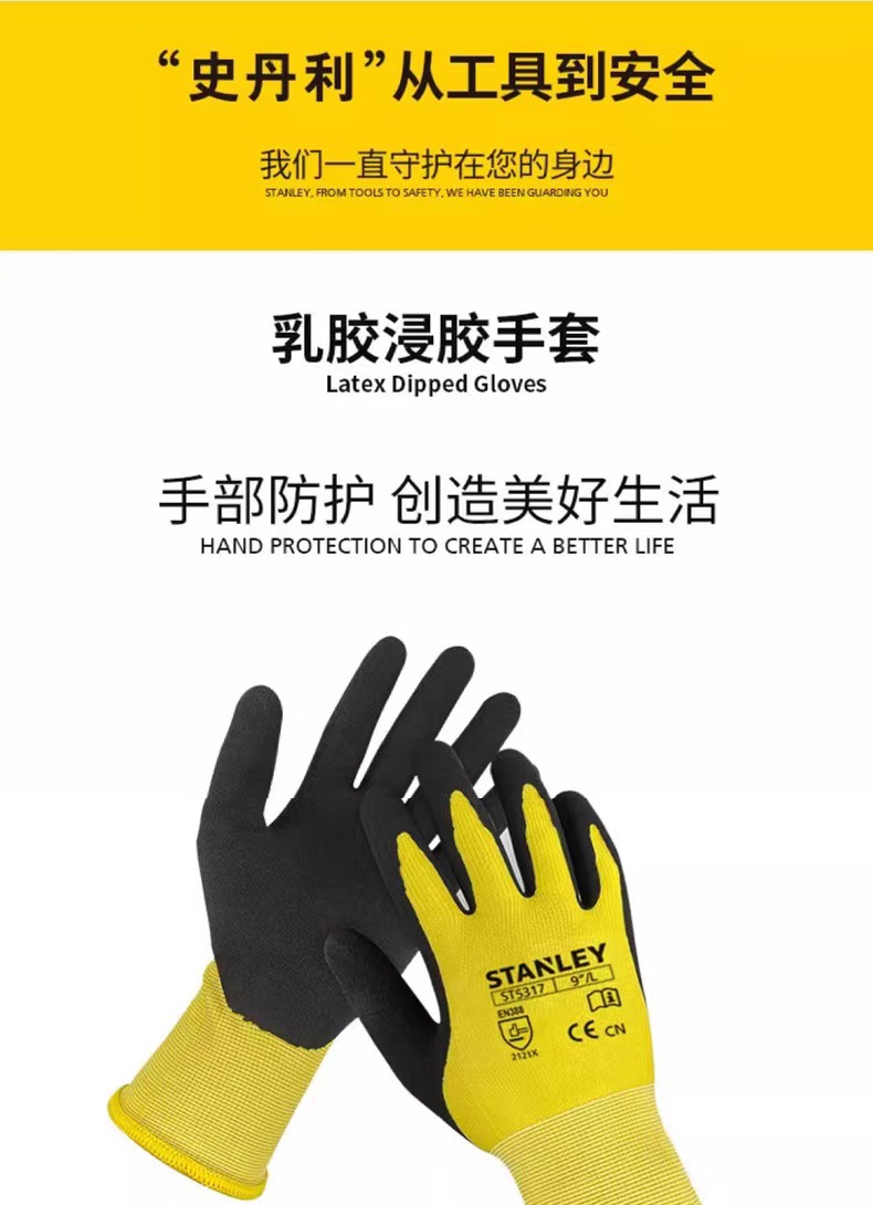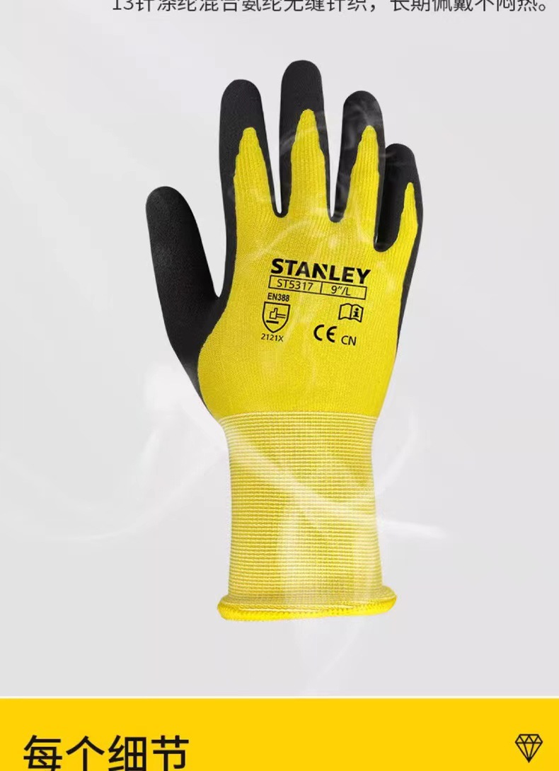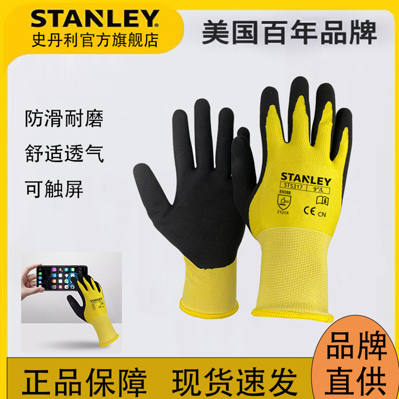 스탠리 STANLEY 미끄럼 방지 노동 보호 장갑, 고탄성, 편안함, 터치 스크린 작업 사이클링 라텍스 함침 장갑스토어 가기