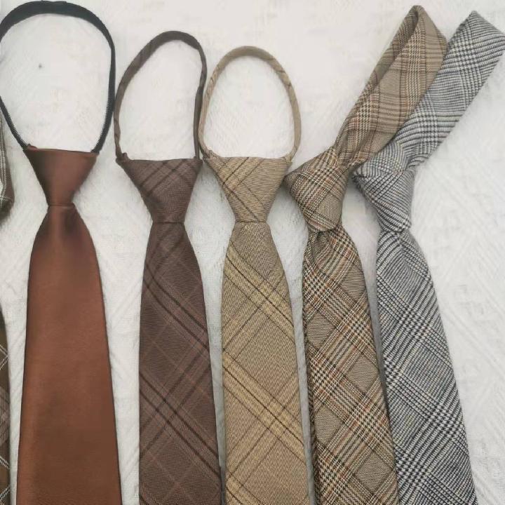 브라운 카멜 레트로 카키 커피 체크 무늬 지퍼가 없는 게으른 손으로 만든 솔리드 컬러 넥타이 남성과 여성 트렌드스토어 가기