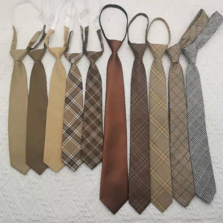 브라운 카멜 레트로 카키 커피 체크 무늬 지퍼가 없는 게으른 손으로 만든 솔리드 컬러 넥타이 남성과 여성 트렌드