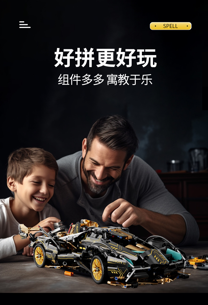 블랙 골드 버전 V12 원격 제어 스포츠카 사이버 펑크 스포츠카 조립 퍼즐 작은 입자 빌딩 블록 모델 장난감 선물스토어 가기