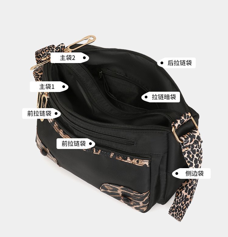 2025 여름 새 레오파드 무늬 멀티 포켓 여성 중년 어머니 노동 통근 어깨 크로스 바디 백