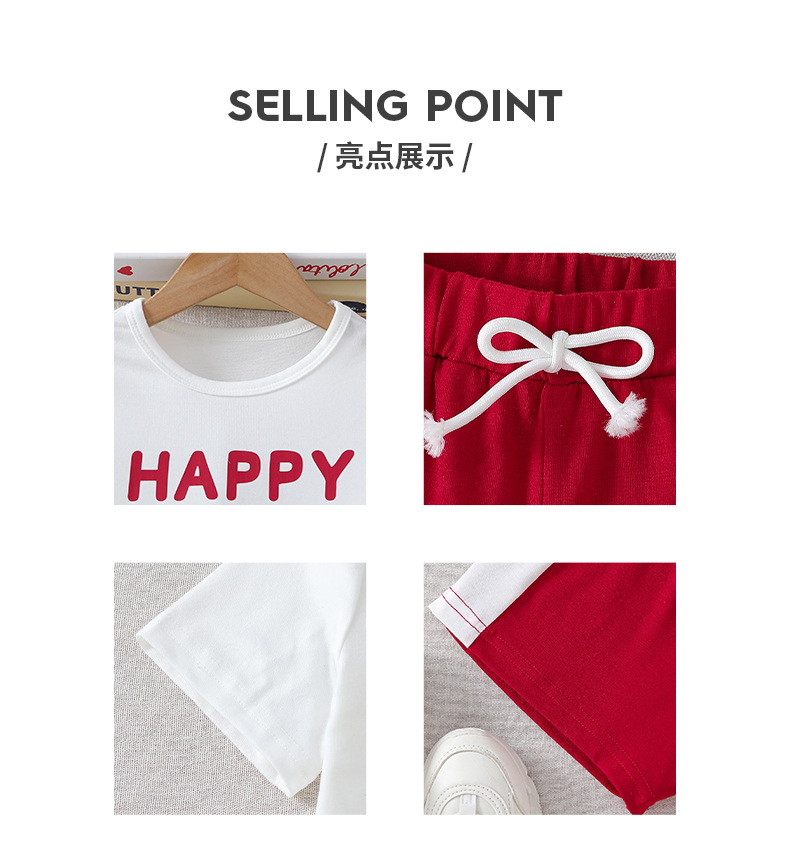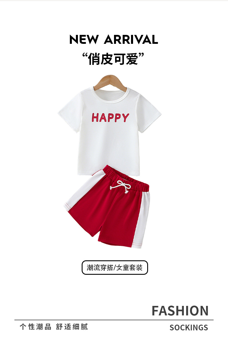 대외 무역 어린이 여름 정장 흰색 문자 인쇄 티셔츠 빨간색 스포츠 반바지 중대형 어린이 투피스 양복스토어 가기