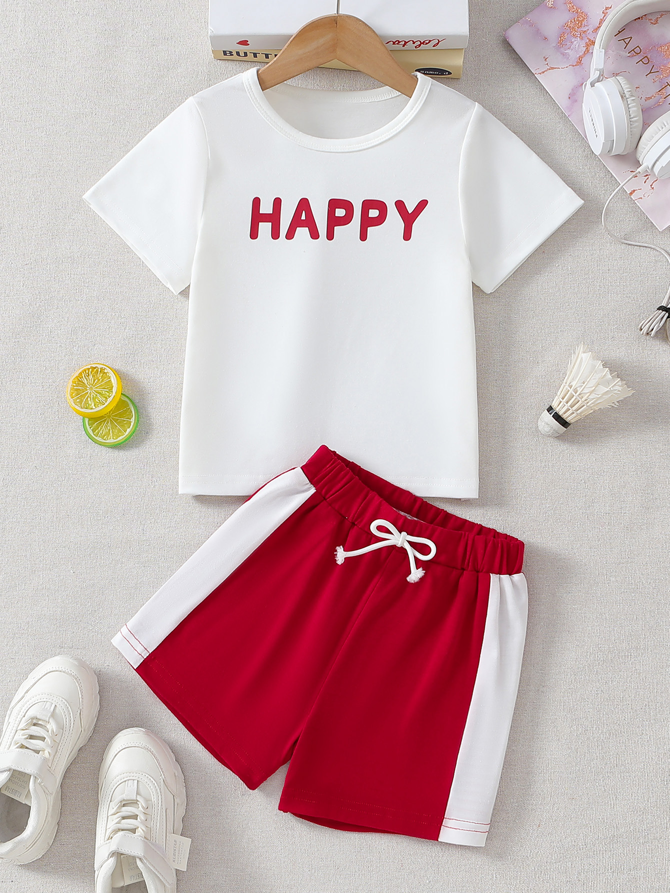 대외 무역 어린이 여름 정장 흰색 문자 인쇄 티셔츠 빨간색 스포츠 반바지 중대형 어린이 투피스 양복