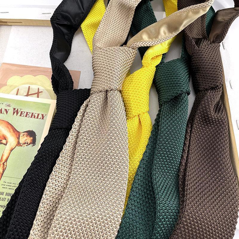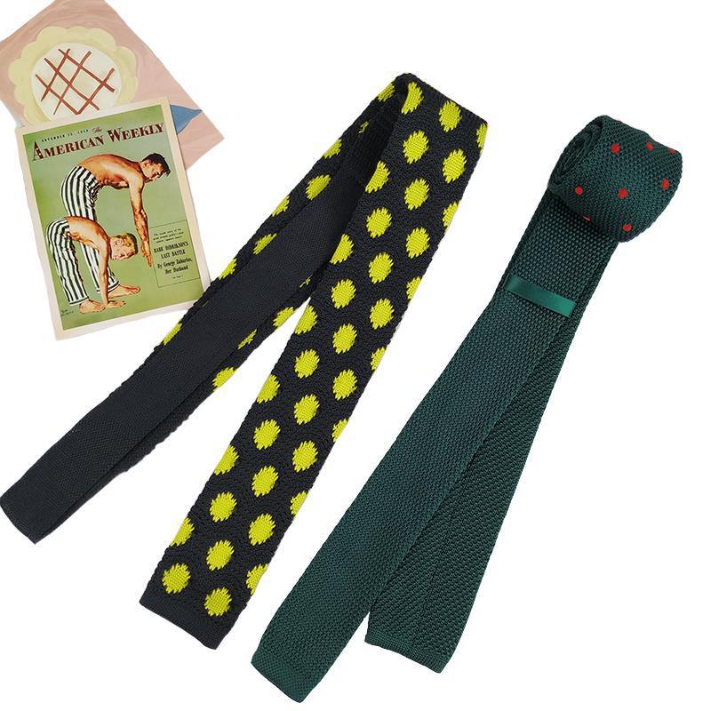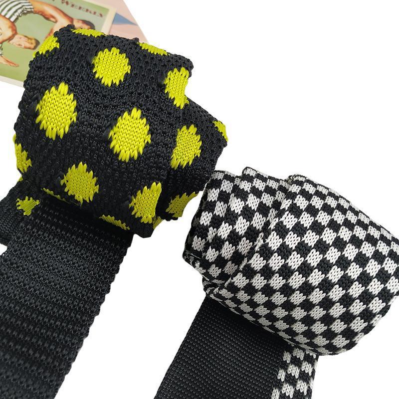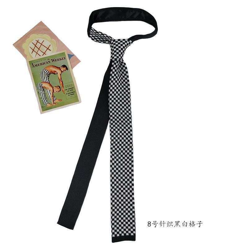 HOW 니트 대비 단색 짙은 녹색 검정색 남성과 여성을 위한 다재다능하고 흥미로운 셔츠 넥타이 좁은 버전 플랫 체크 무늬스토어 가기