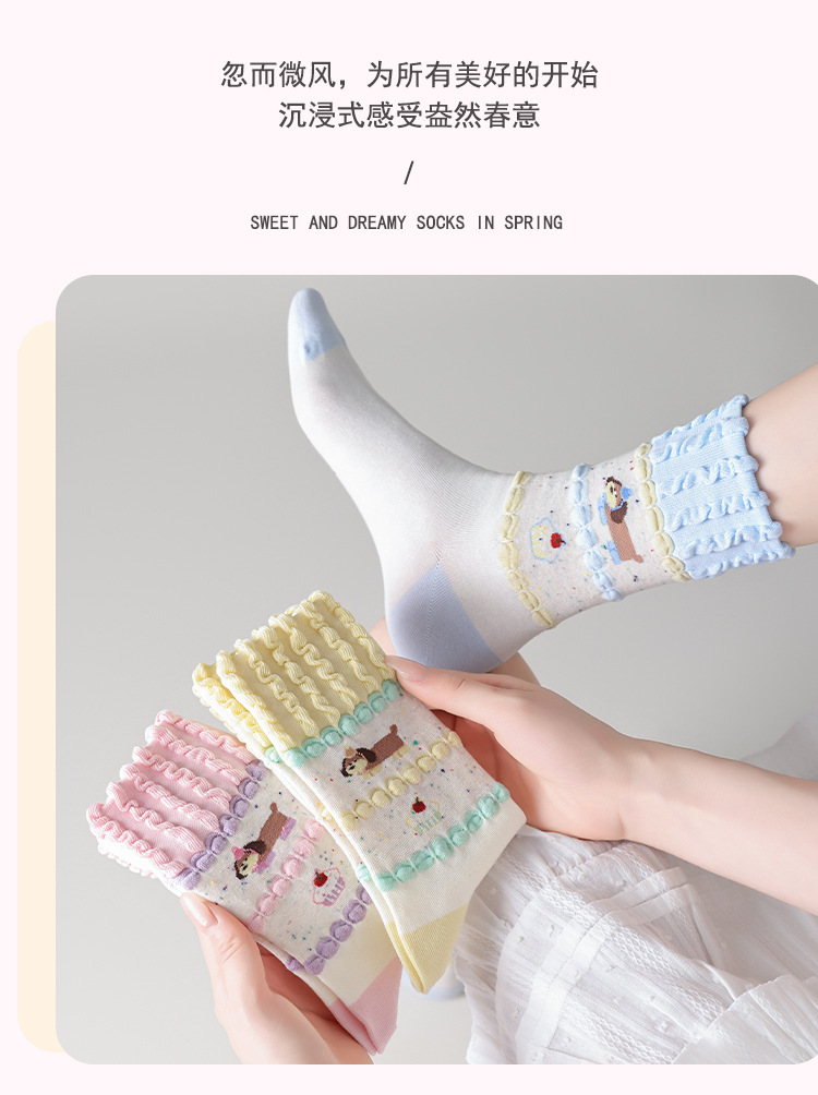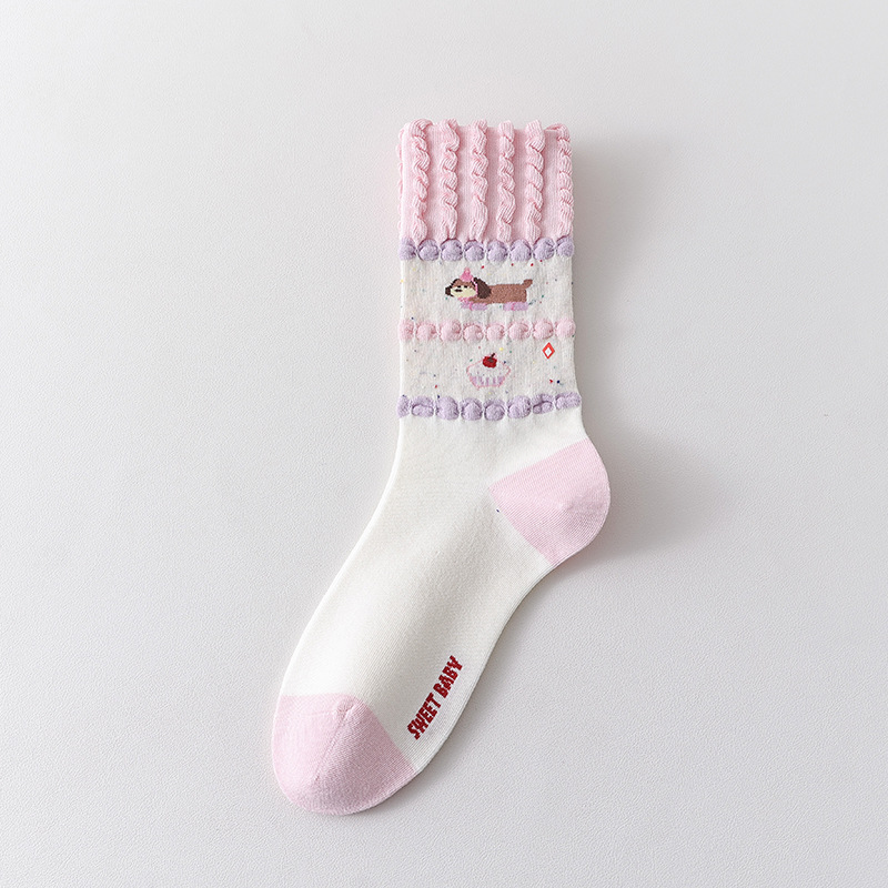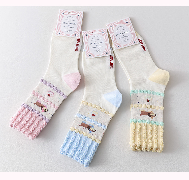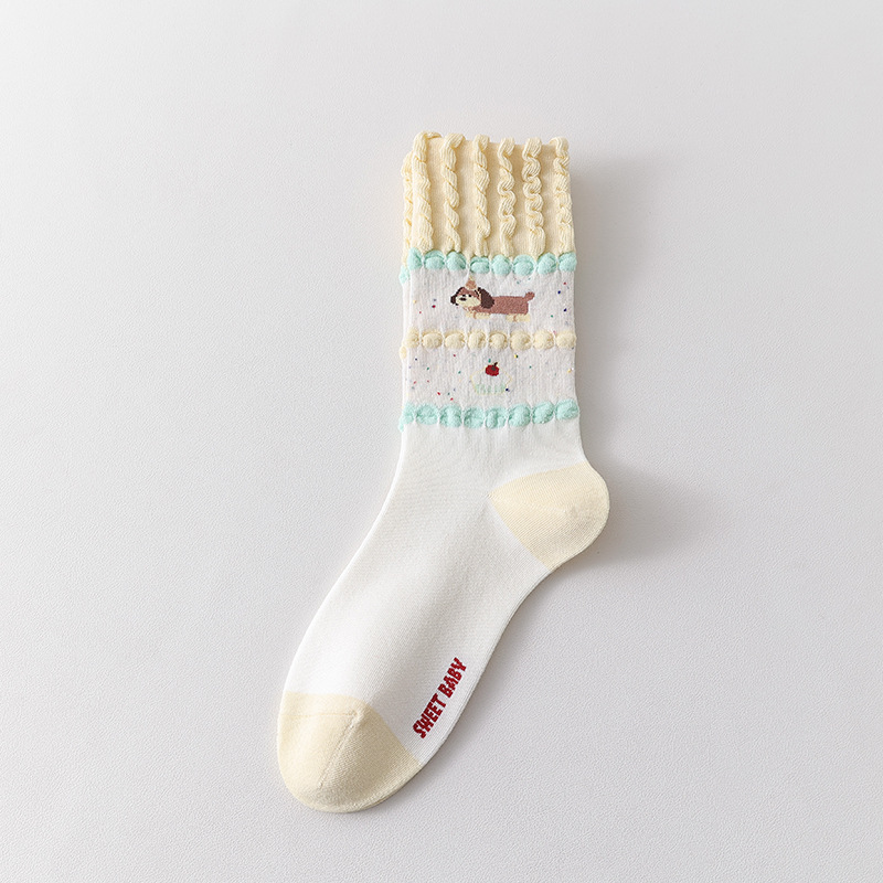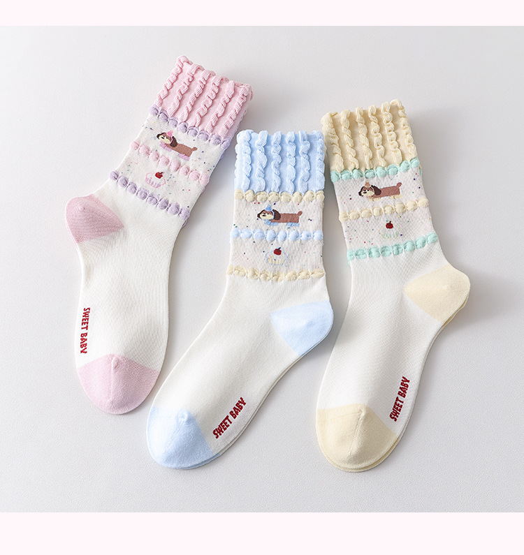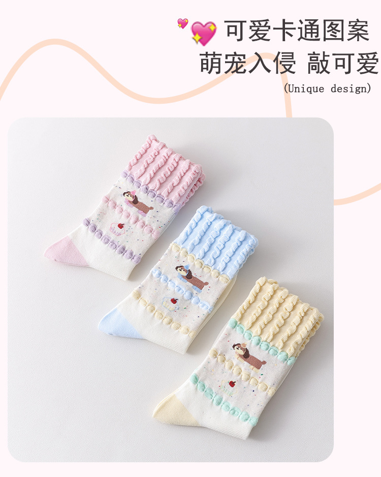 【30% off 클리어런스】여름용 얇은 양말, 여성용 러그양말, 만화 강아지 양말, 무봉제 보풀방지 면 양말, 중간 길이 양말스토어 가기