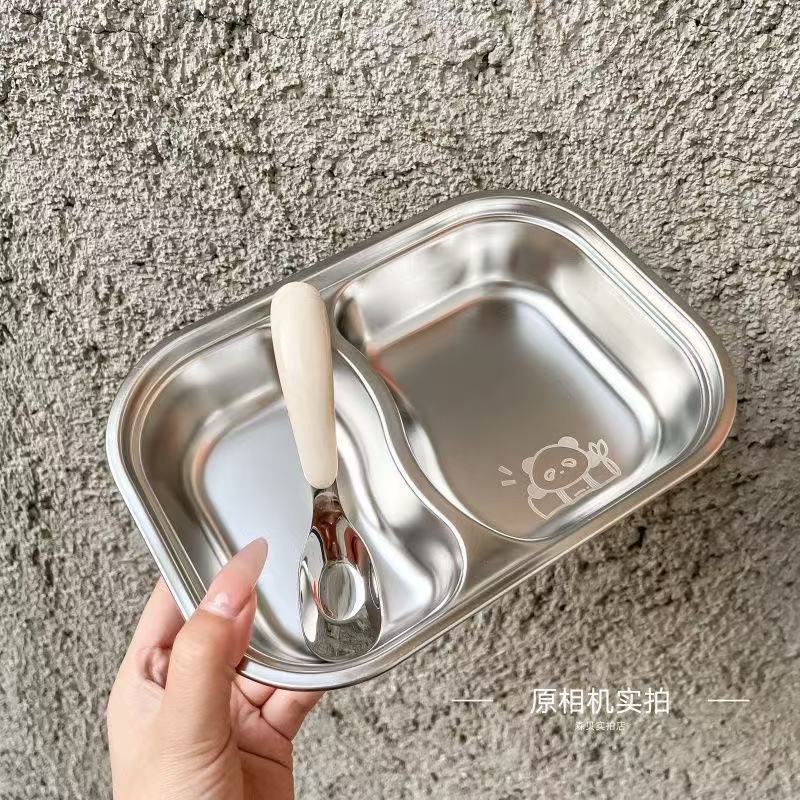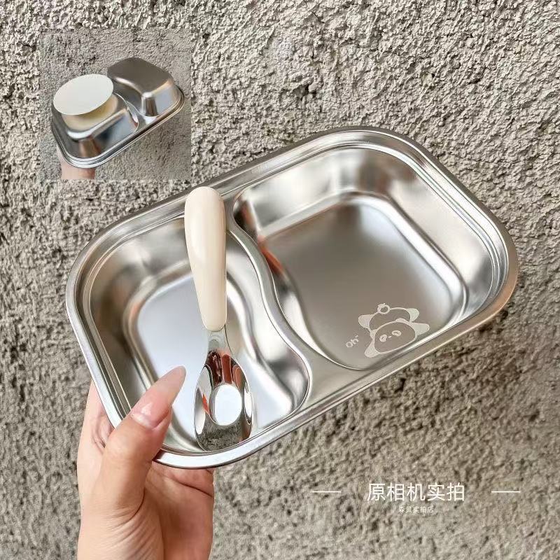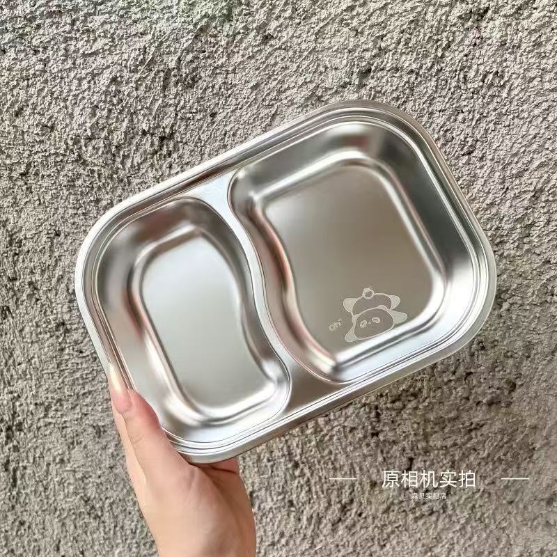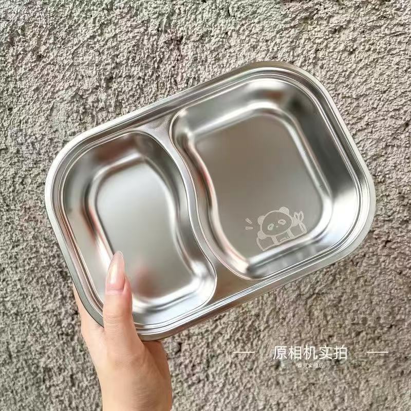 식품 학년 스테인레스 스틸 어린이 디너 플레이트 유치원 가정용 베이비 런치 박스 스테인레스 스틸 디너 플레이트 드롭 방지 멀티 그리드 도매
