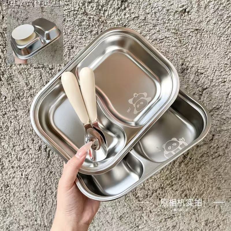 식품 학년 스테인레스 스틸 어린이 디너 플레이트 유치원 가정용 베이비 런치 박스 스테인레스 스틸 디너 플레이트 드롭 방지 멀티 그리드 도매스토어 가기