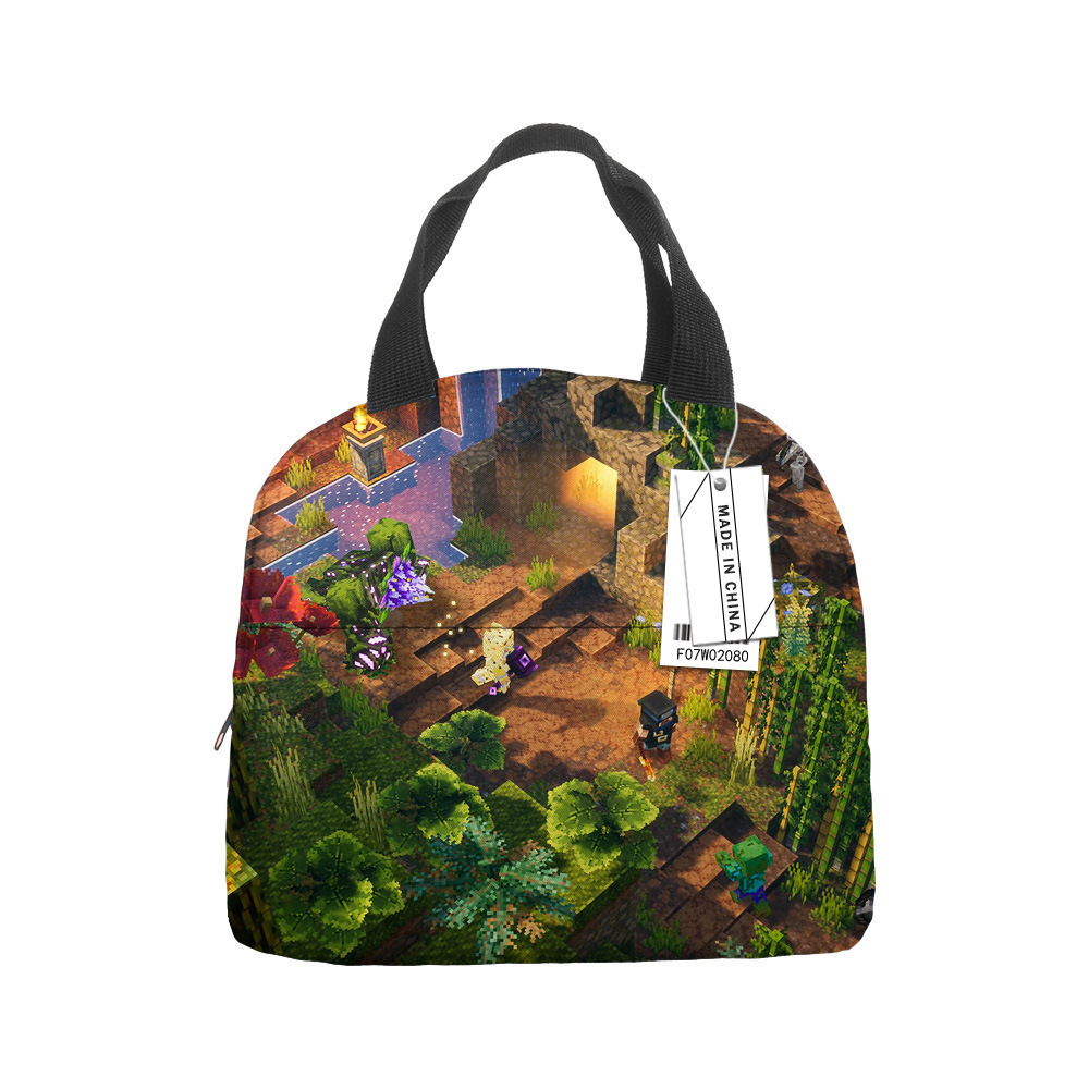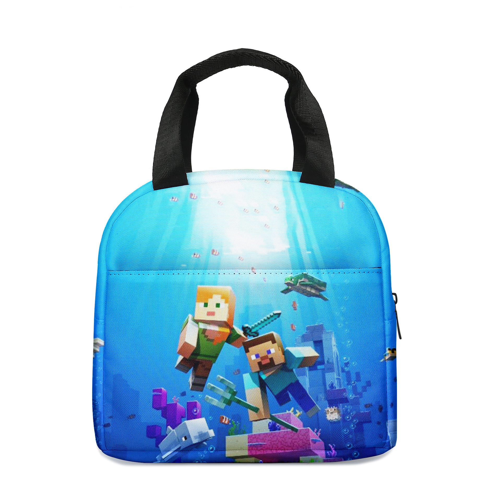 국경 간 뜨거운 판매 Minecraft 휴대용 절연 가방 쿨러 가방 만화 애니메이션 두꺼운 알루미늄 호일 대용량 점심 가방스토어 가기