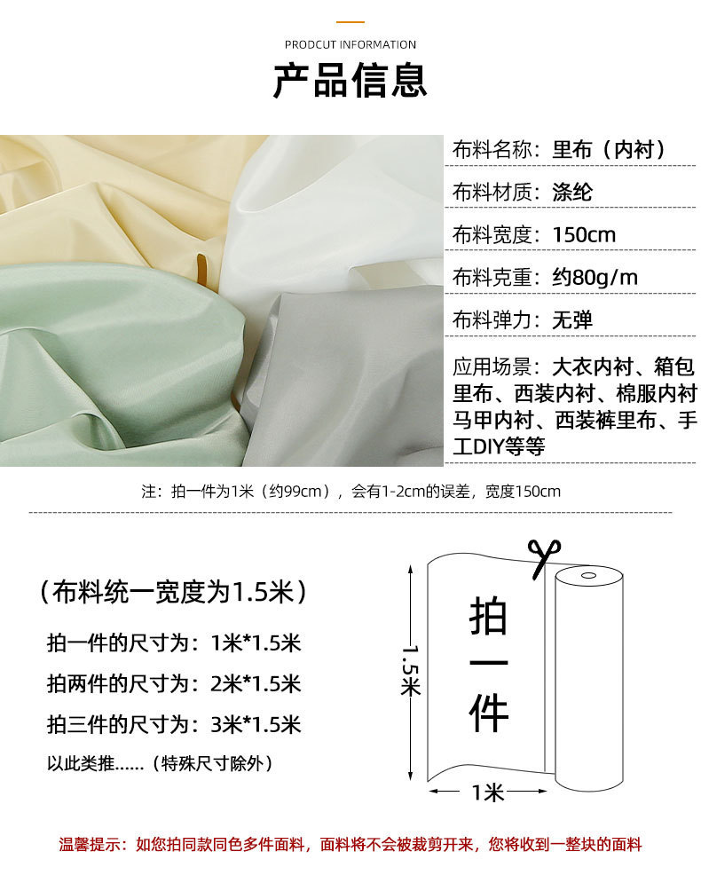 폴리에스터 태피터 의류 및 가방 안감 원단 솔리드 컬러 안감 코트 및 양복 안감스토어 가기