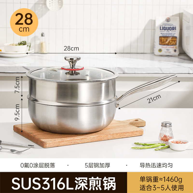 • 28cm 깊은 냄비(뚜껑 포함) [316 리벳 없음] 스테인리스 스틸 감지액 포함