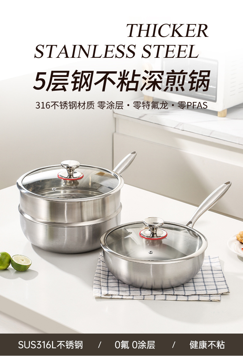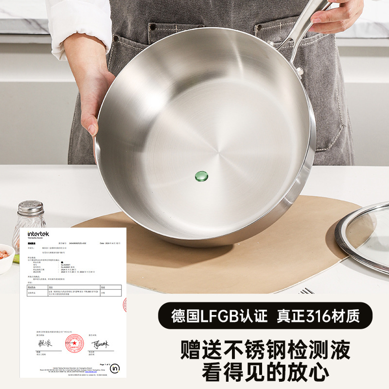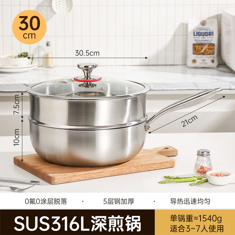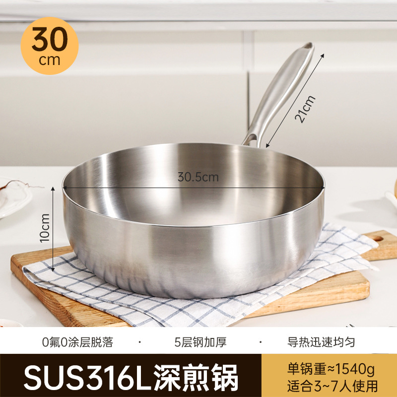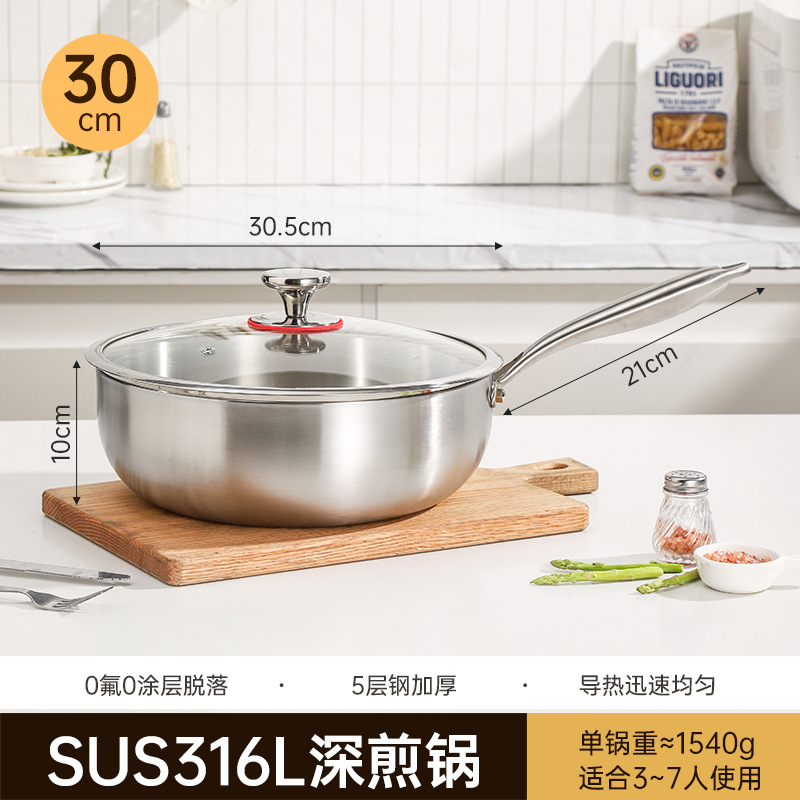 • 30cm 깊은 냄비(뚜껑 포함) [316 리벳 없음] 스테인리스 스틸 테스트 솔루션 포함