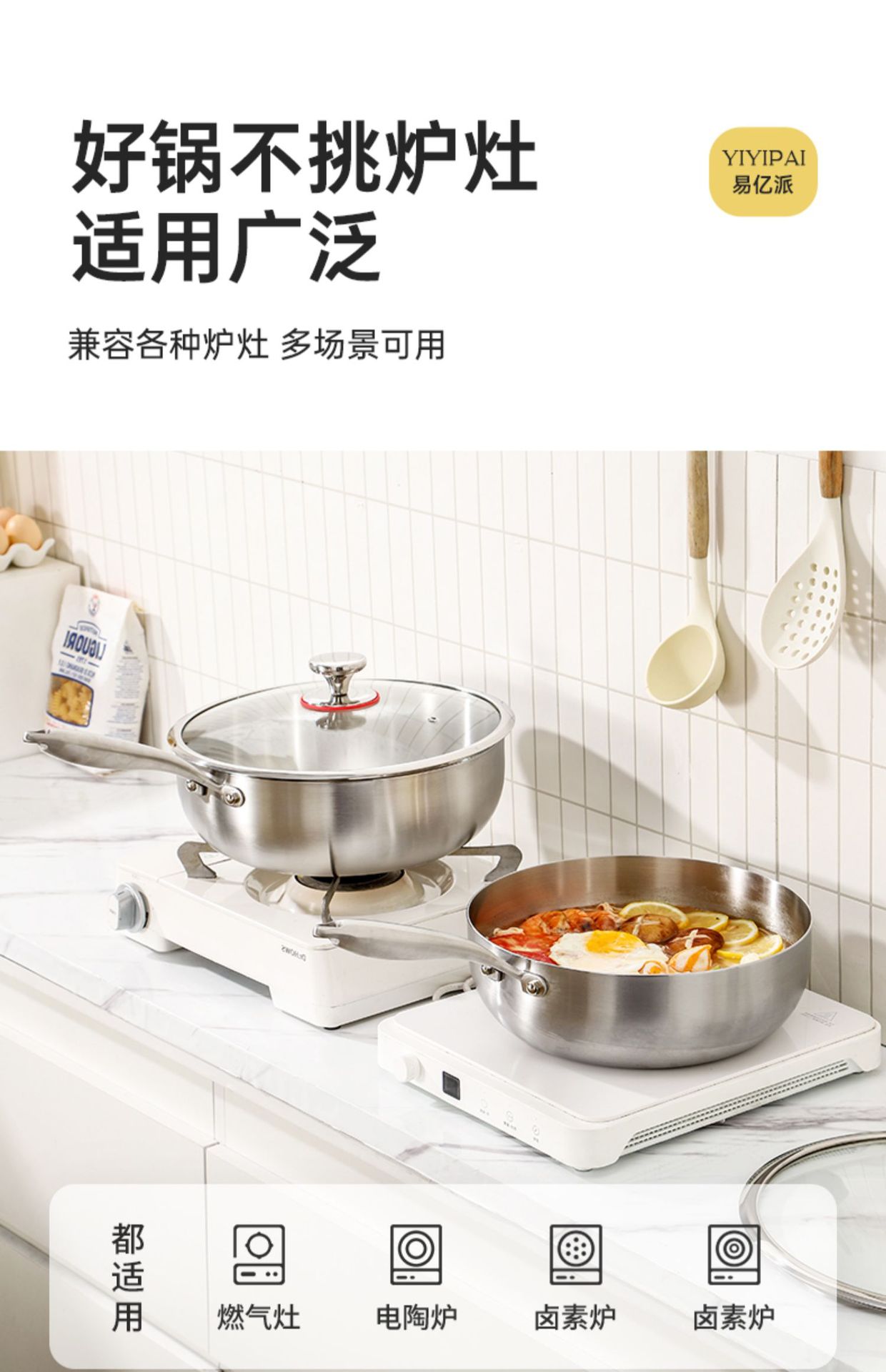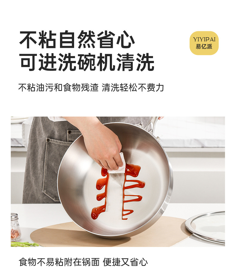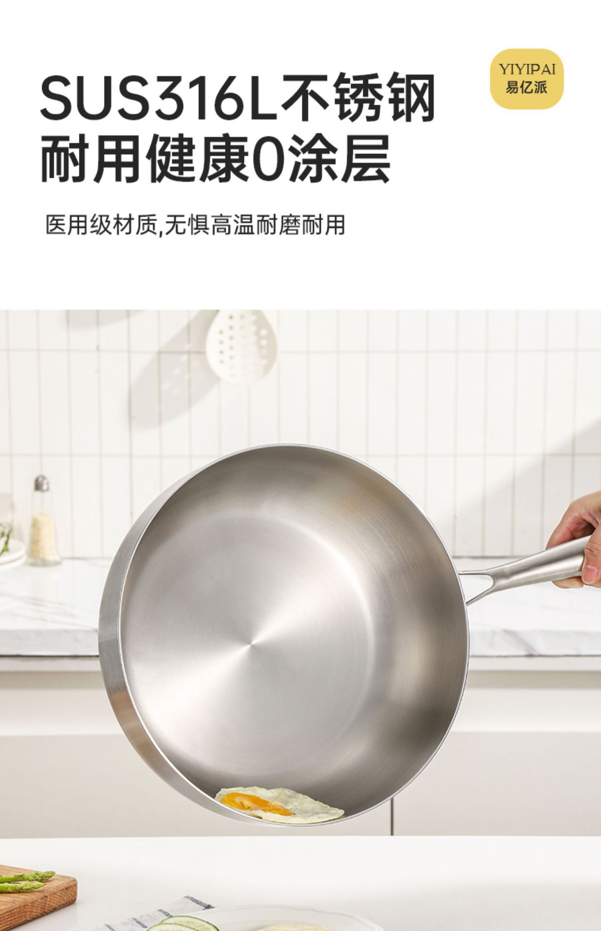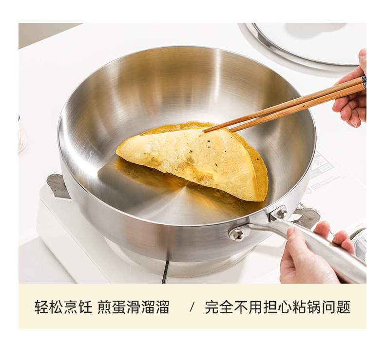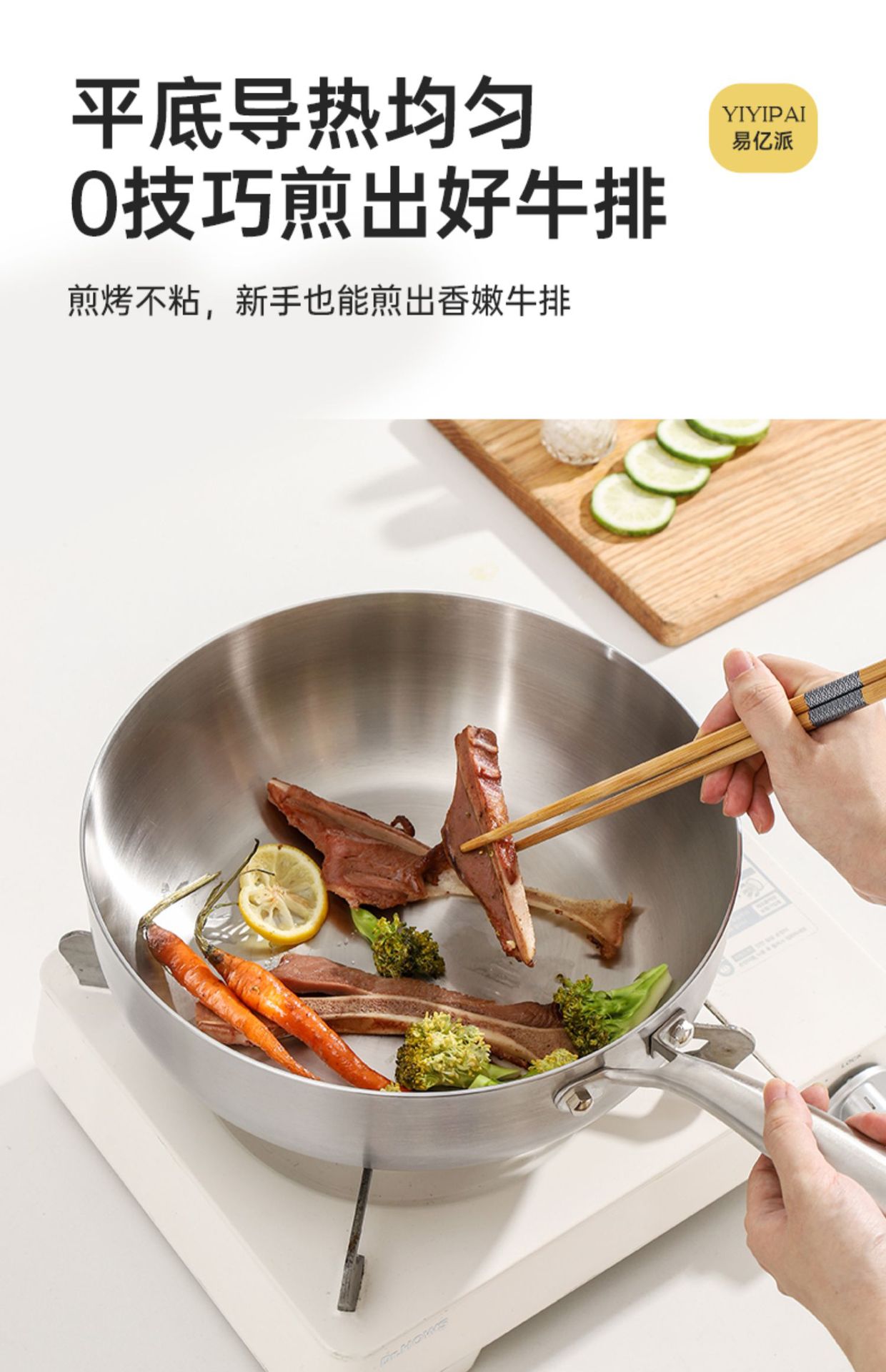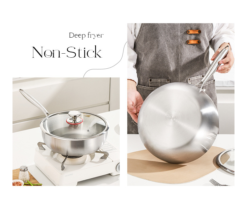 식품 등급 두껍게 316 스테인레스 스틸 플랫 바텀 워크 스틱 워크 가정용 유도 쿠커 코팅되지 않은 딥 워크스토어 가기