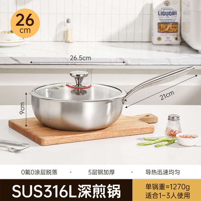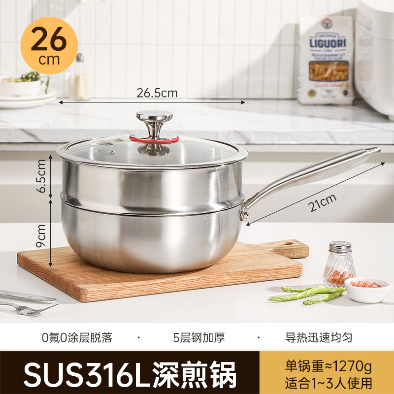 • 26cm 깊은 냄비(뚜껑 포함) [316 리벳 없음] 스테인리스 스틸 감지액 포함