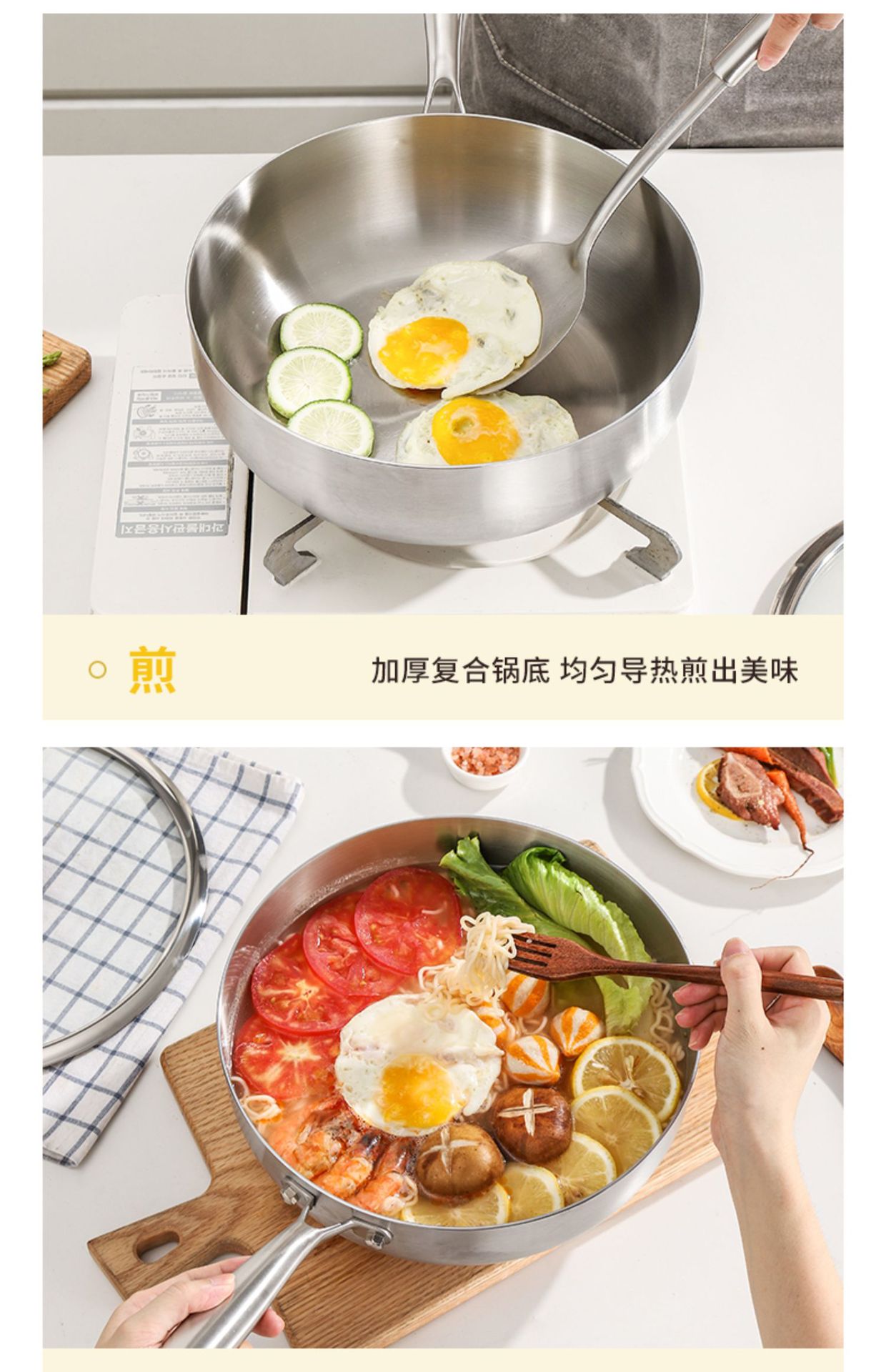 • 28cm 깊은 웍(뚜껑 제외) [316 리벳 없음] 스테인리스 스틸 감지액 포함