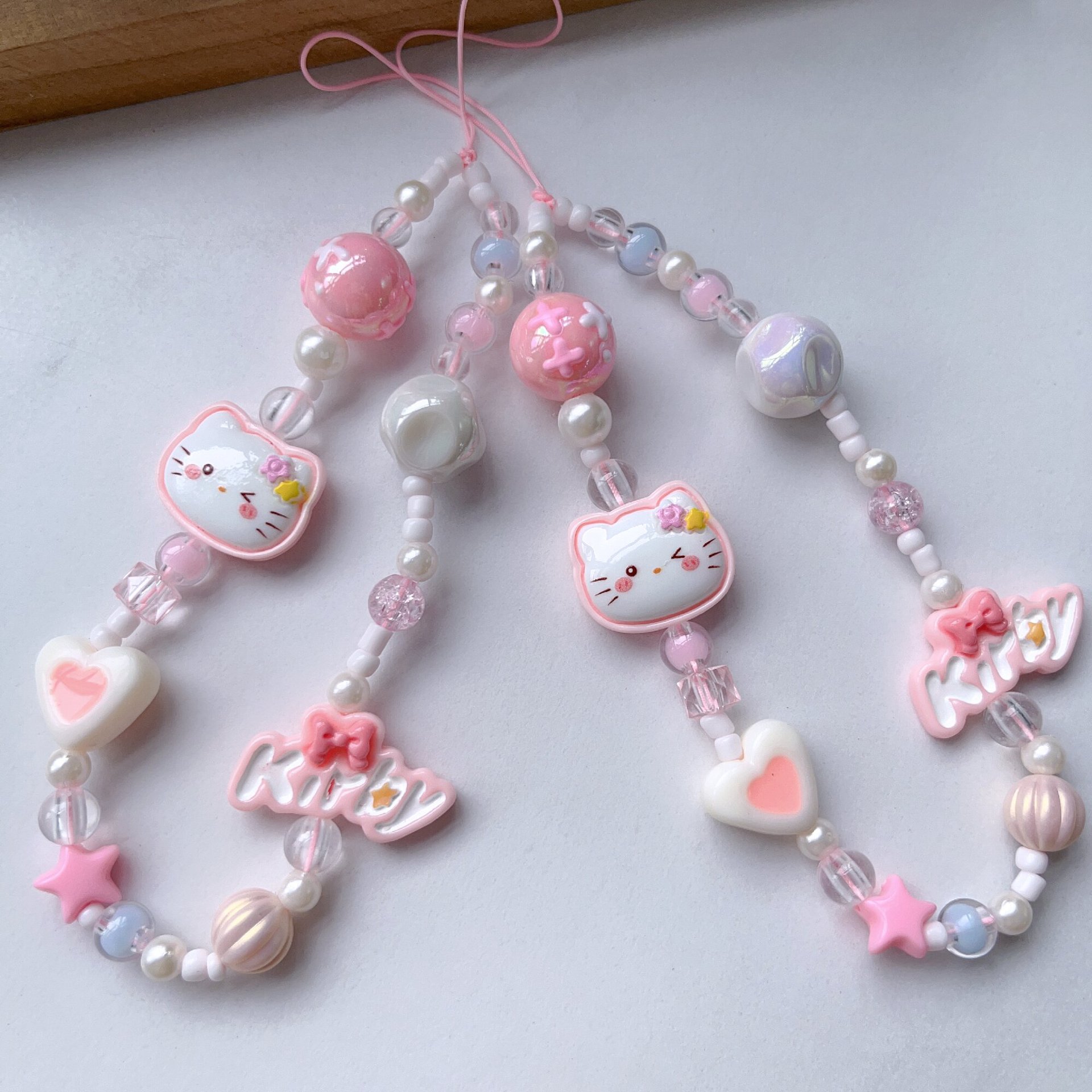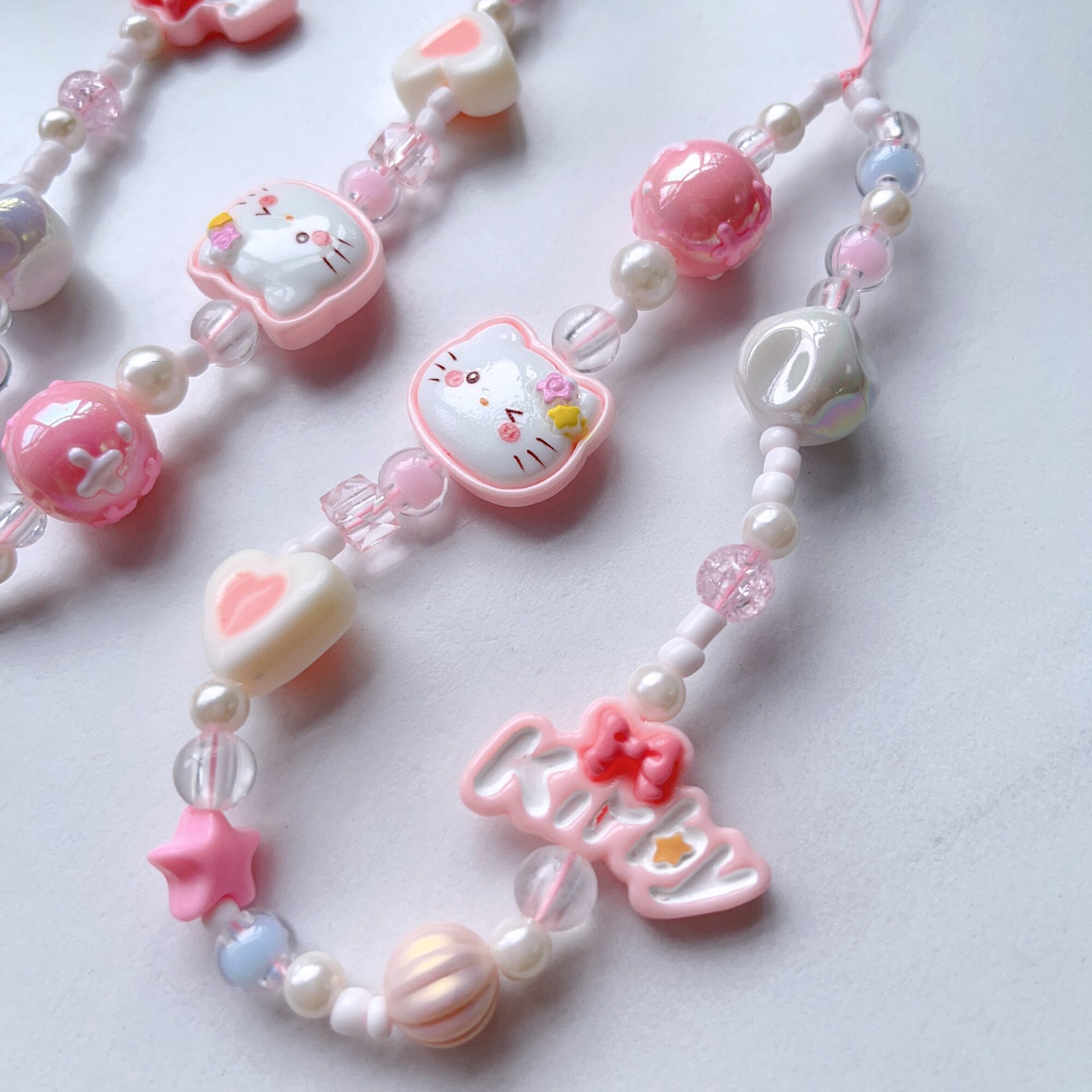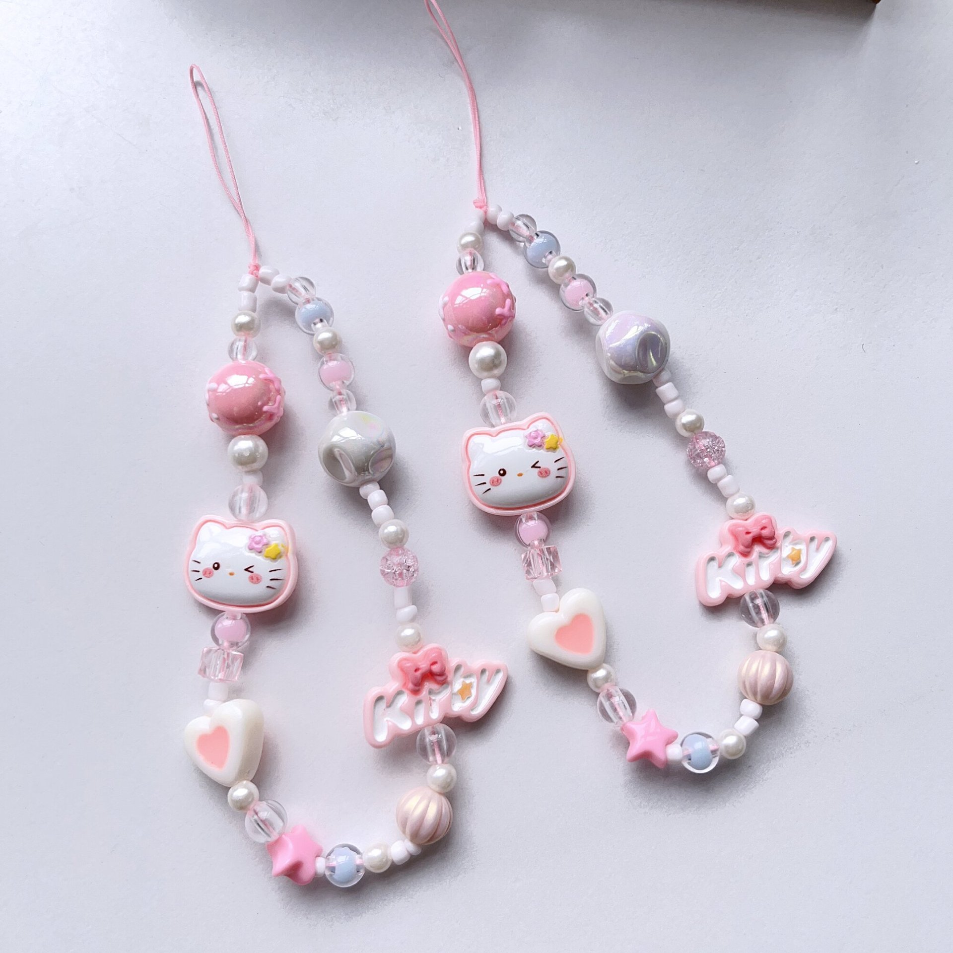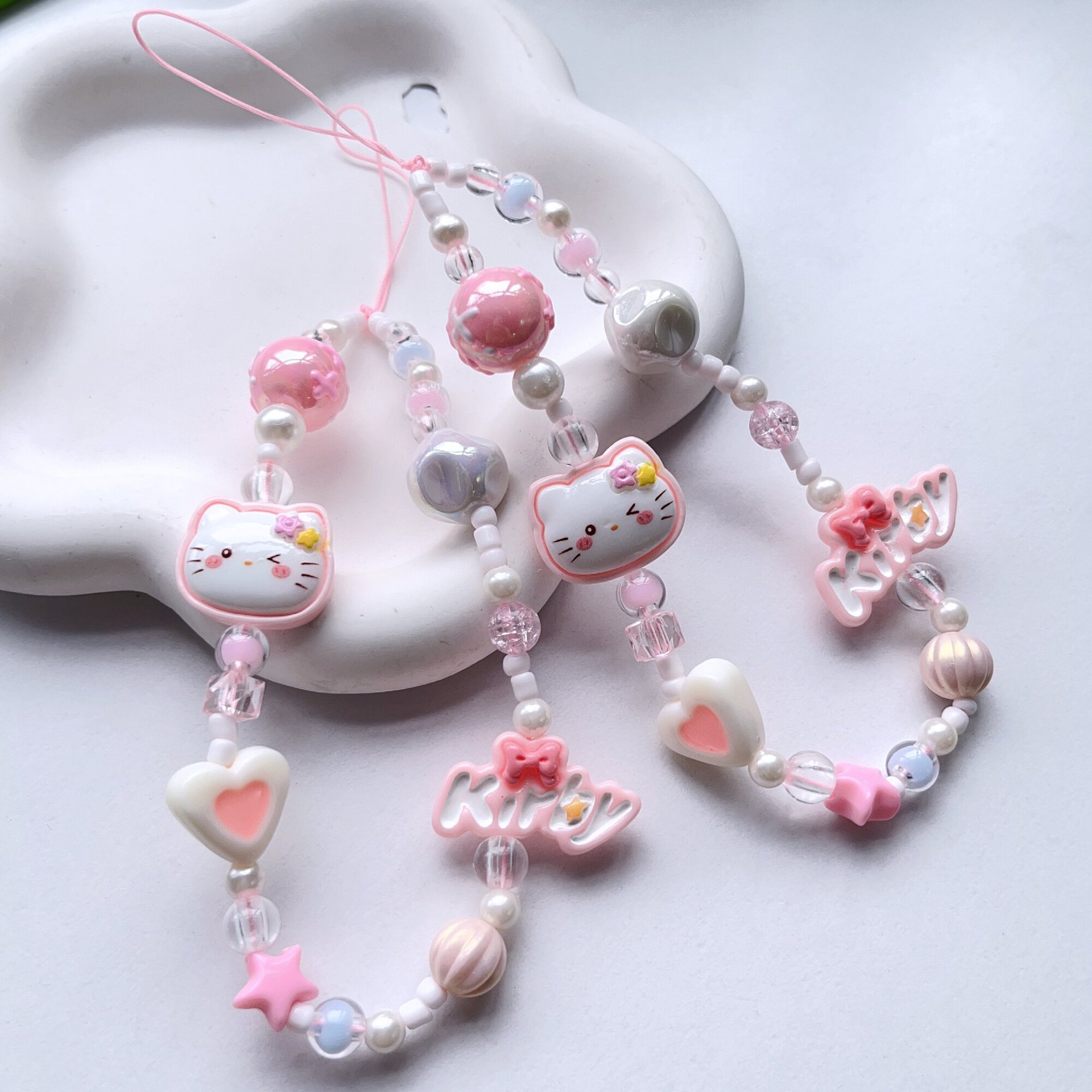 만화 키티 고양이 휴대 전화 끈 체인 ccd 카메라 펜던트 가방 수제 구슬 창조적 인 체인 펜던트 도매스토어 가기