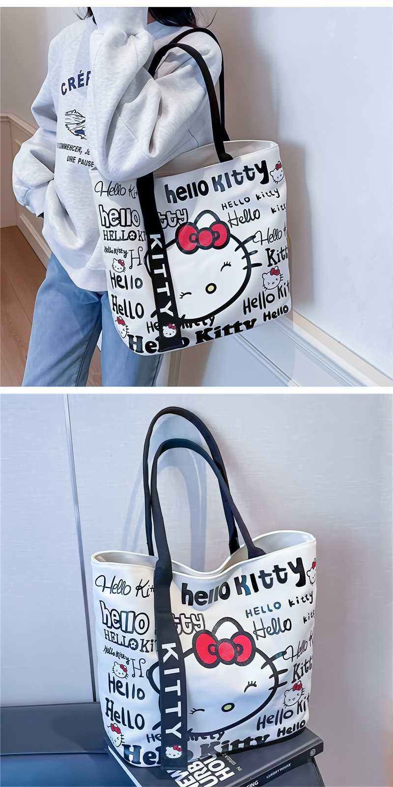 만화 캔버스 가방 패션 가방 여성용 핸드백 귀여운 통근 올 매치 숄더 토트 대용량스토어 가기