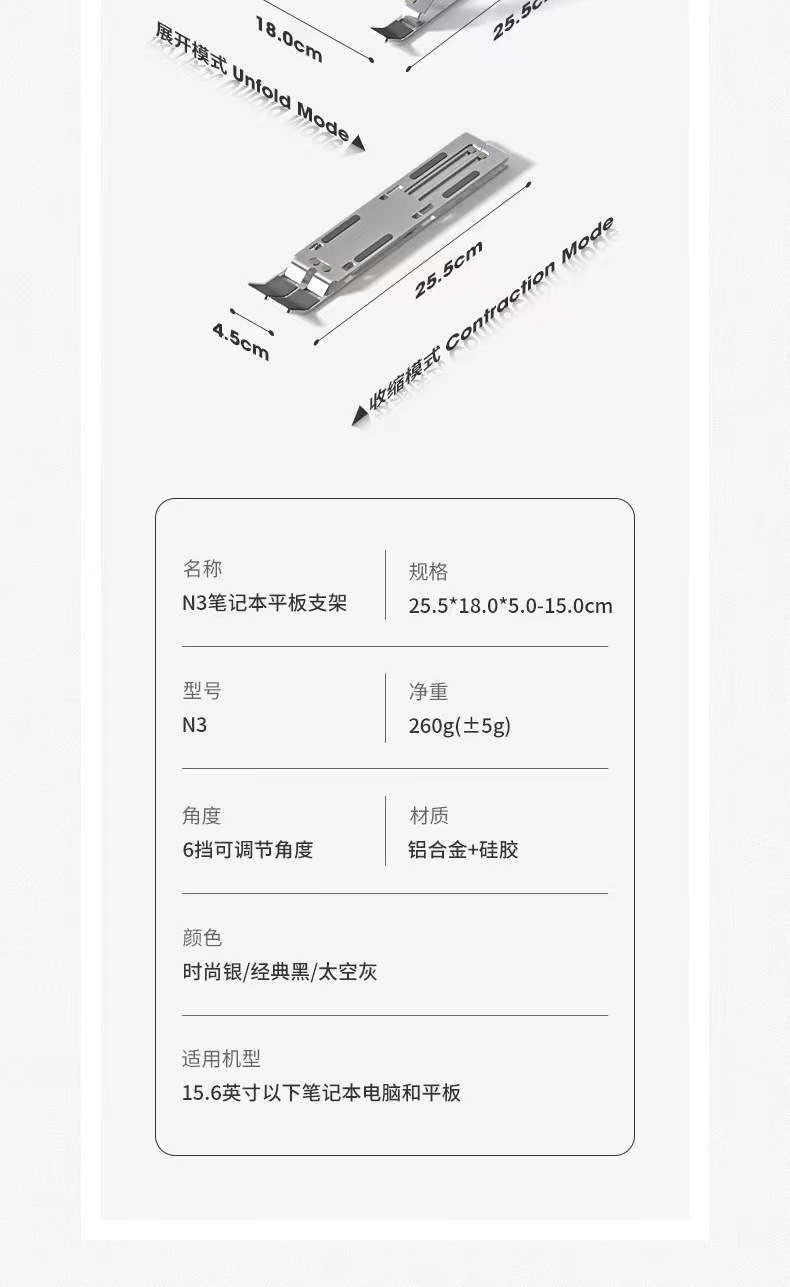 N3 노트북 스탠드 데스크탑 접이식 수직 방열 알루미늄 합금 컴퓨터 스탠드