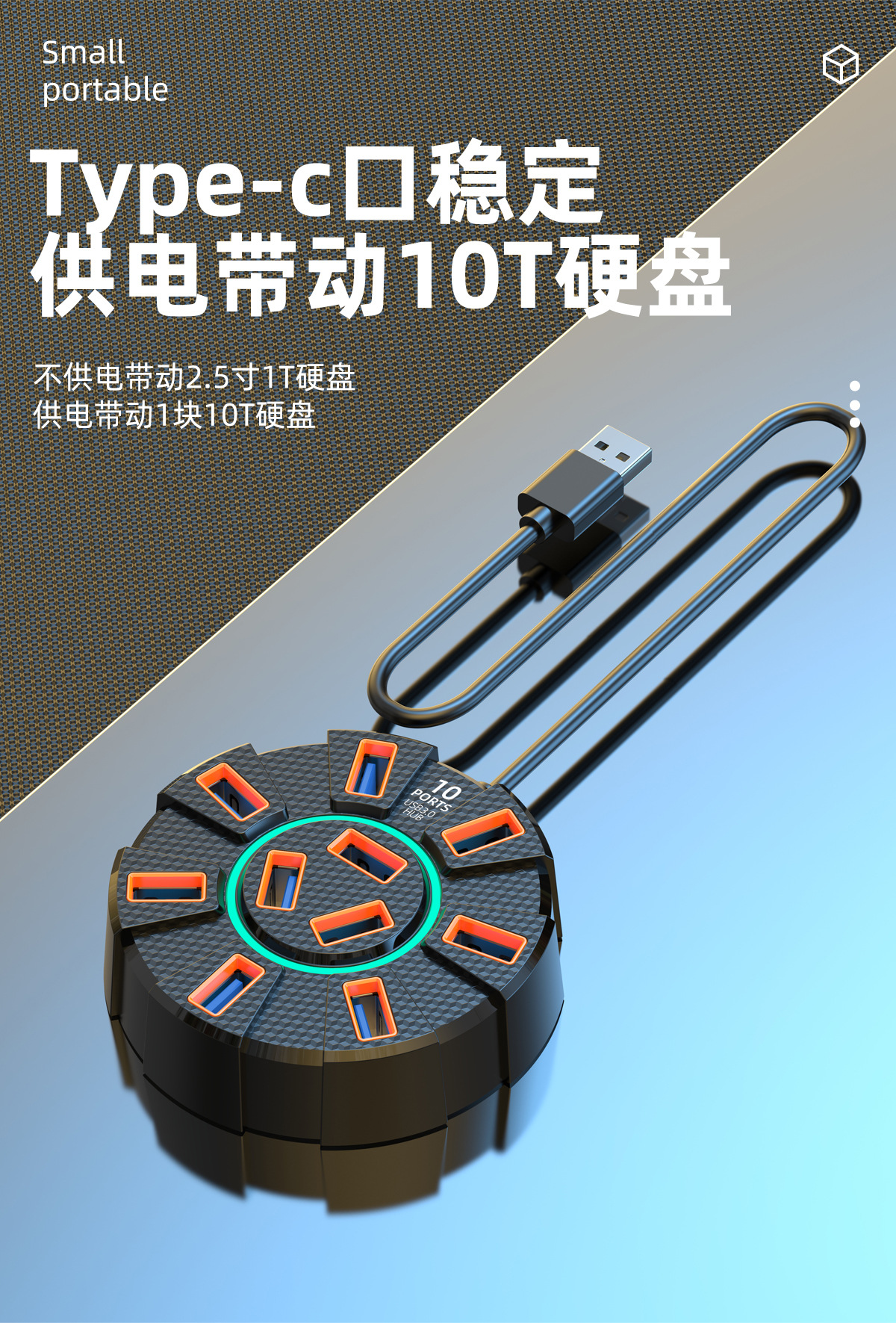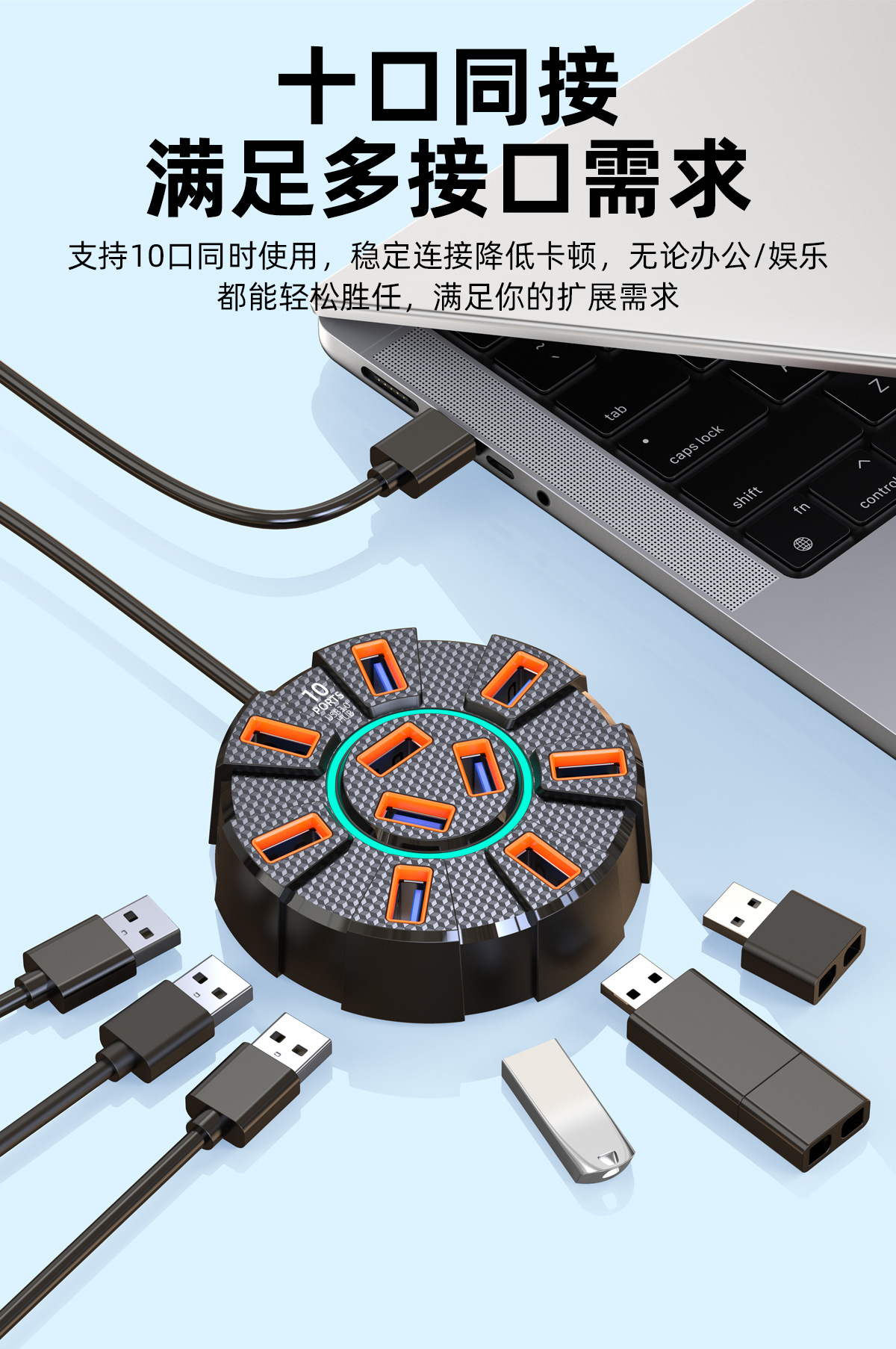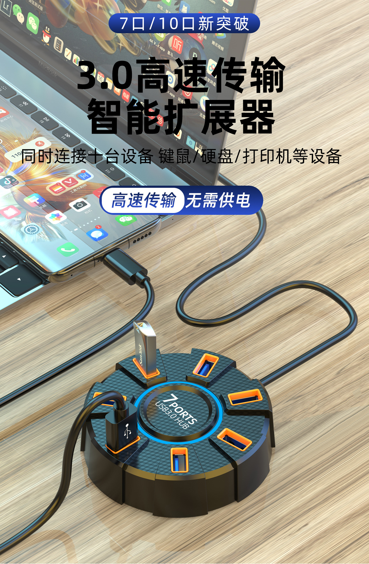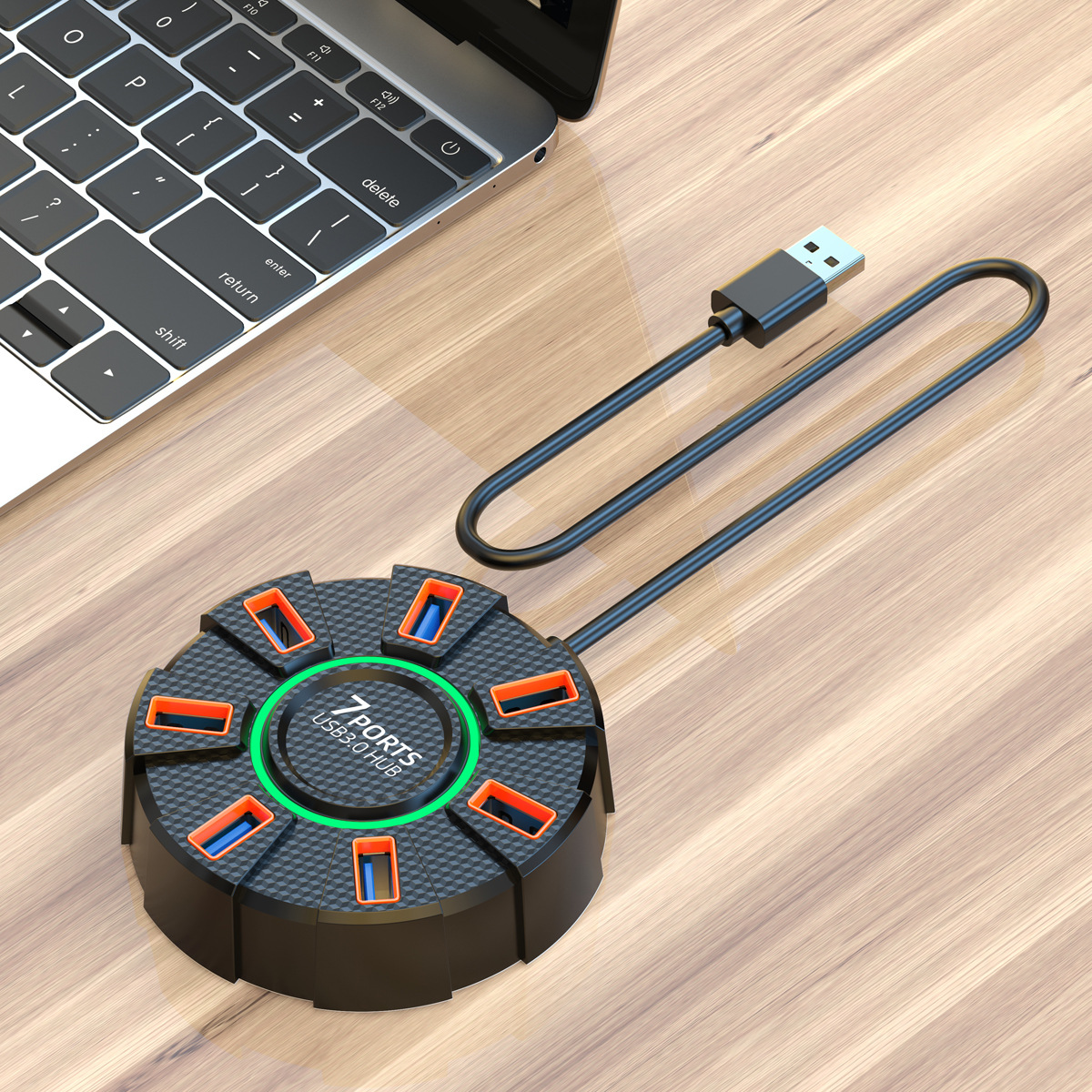 USB3.0 HUB 7 포트 10 포트 멀티 포트 확장 스플리터 USB3.0 고속 매직 컬러 RGB 분위기 빛스토어 가기
