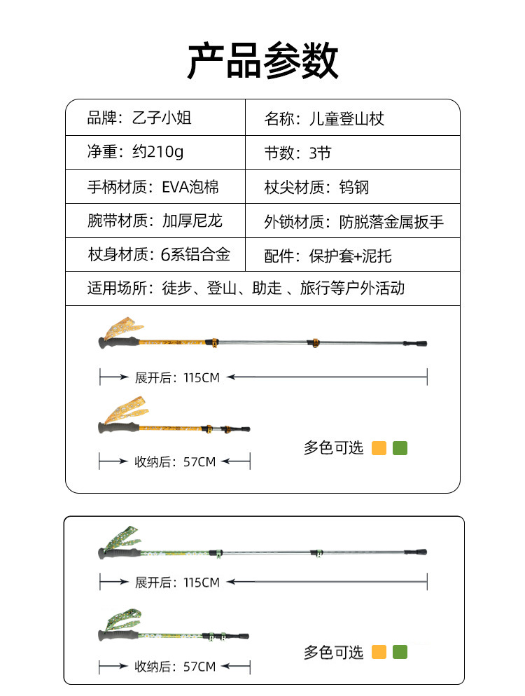 국경 간 어린이 특수 하이킹 스틱 야외 휴대용 알루미늄 합금 개폐식 하이킹 스틱 울트라 라이트 마운틴 접이식 워킹 스틱스토어 가기