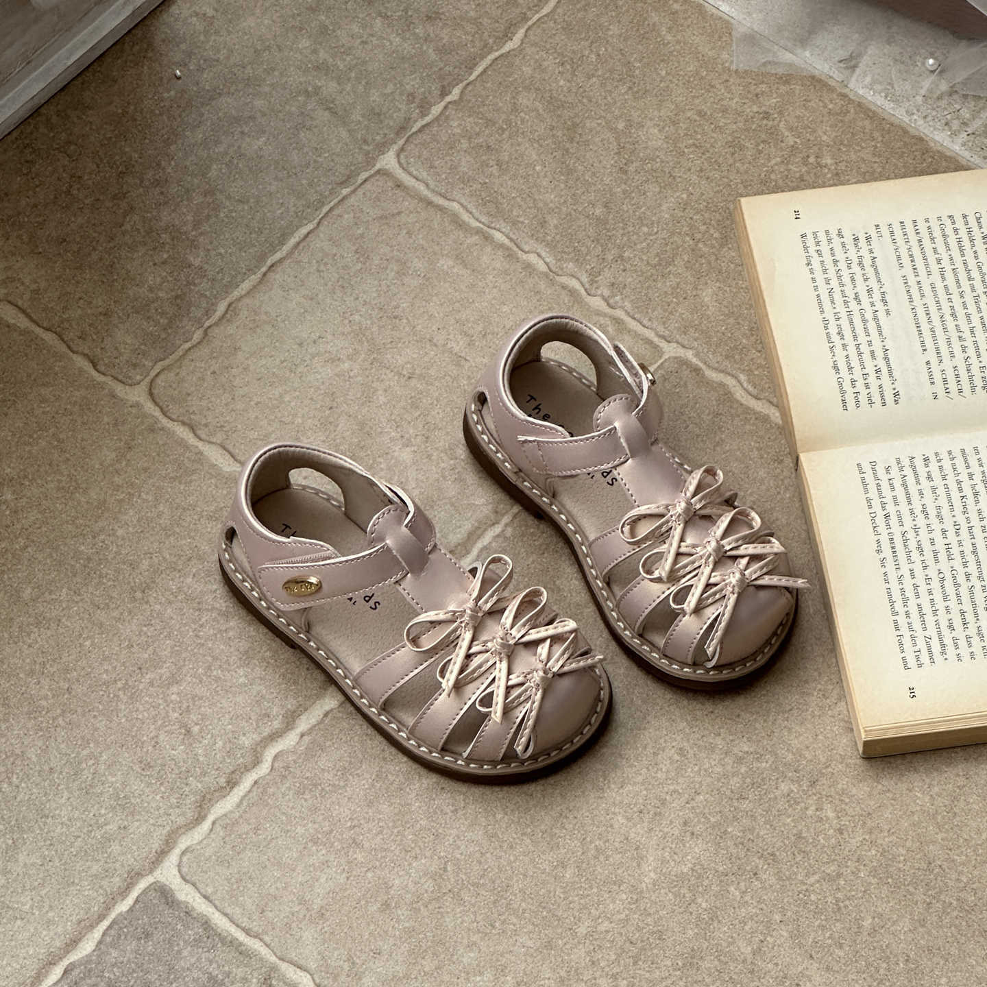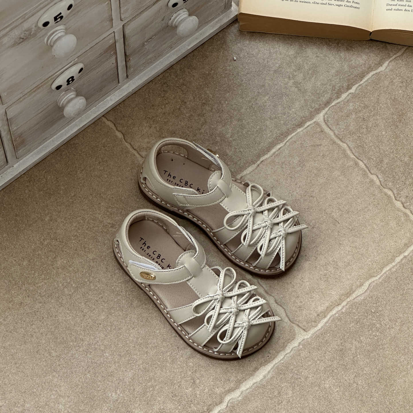XSHX『레트로 프렌치 스타일』 여아용 통기성 샌들 고무 밑창 미끄럼 방지 내구성 여름용 부드럽고 귀여운 중세풍 나비