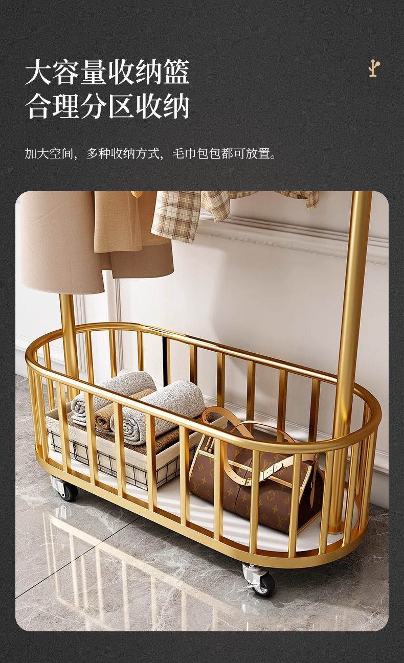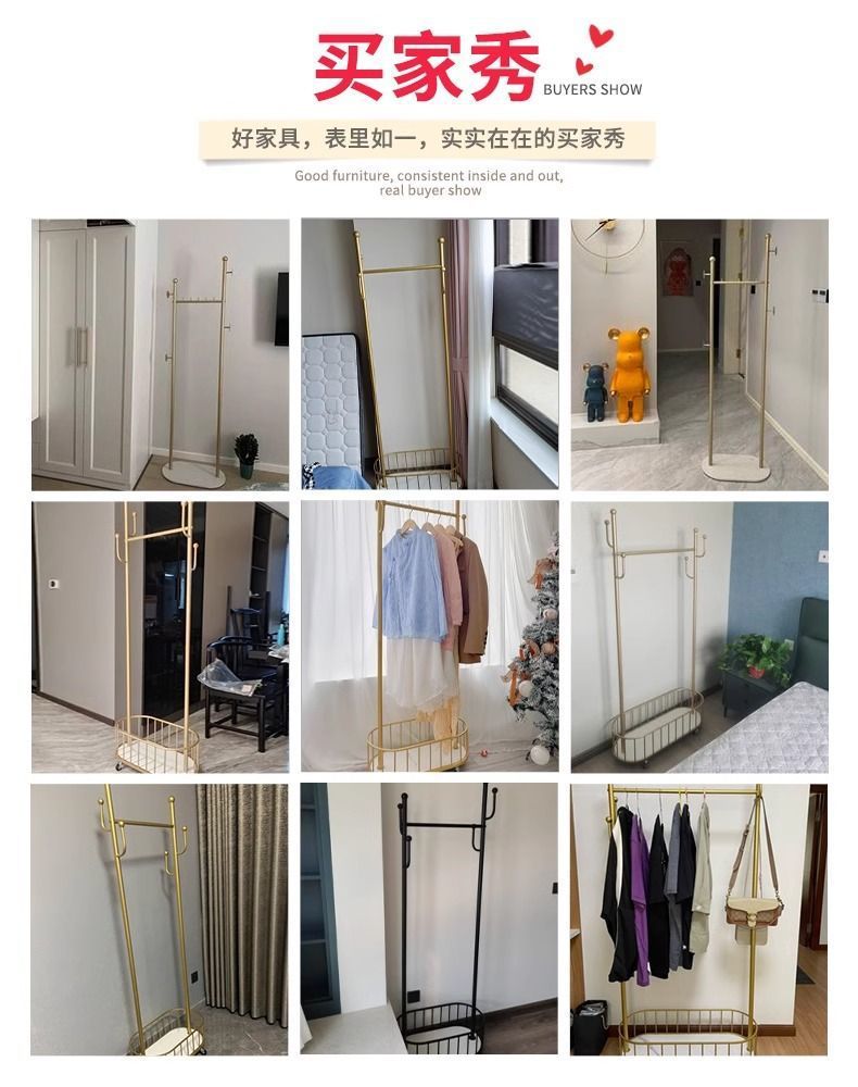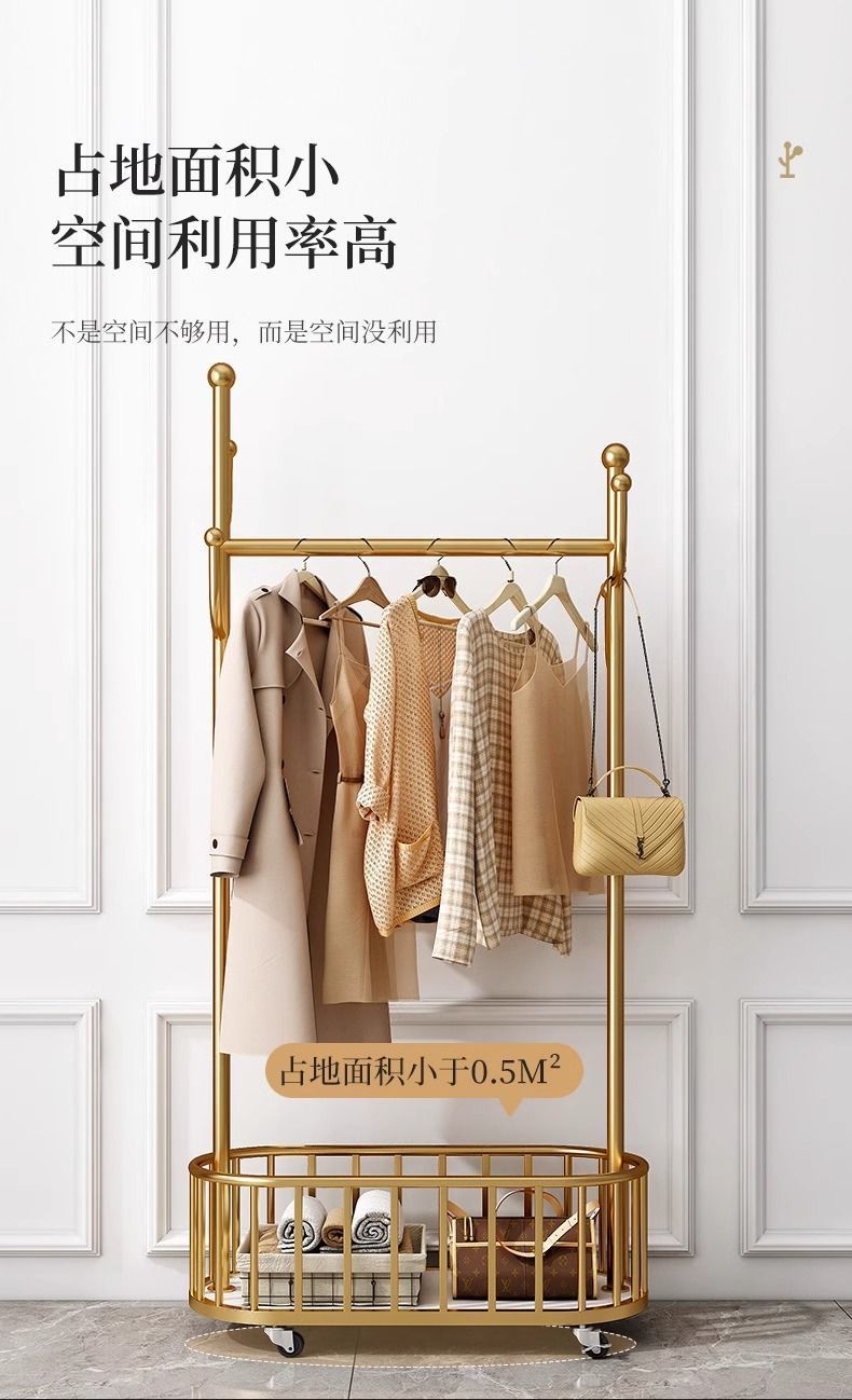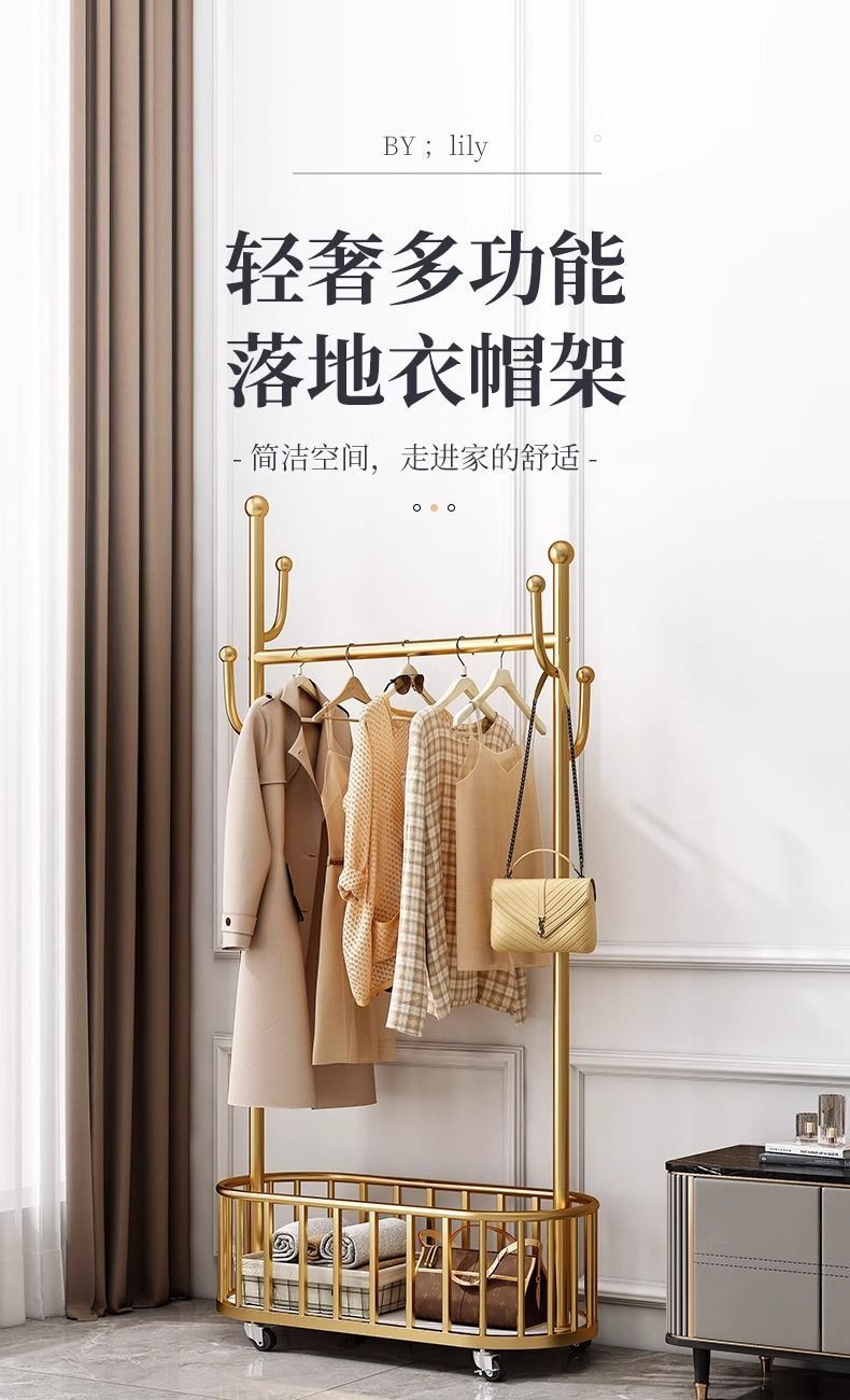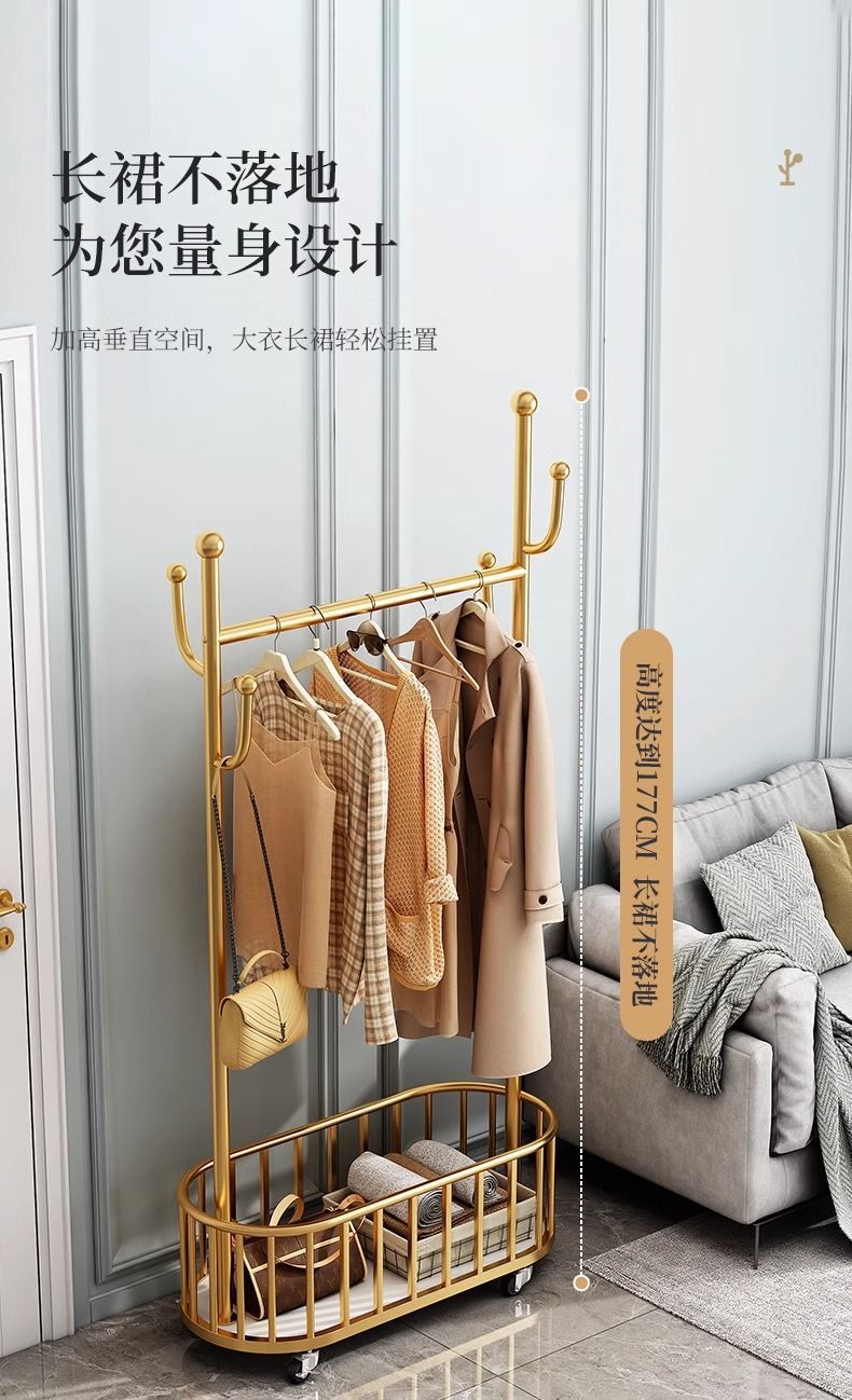 옷걸이 바닥 스탠딩 수직 옷걸이 이동식 바퀴가 달린 가정용 수납 옷걸이 거실 인터넷 연예인 가벼운 간단한 코트 L^스토어 가기