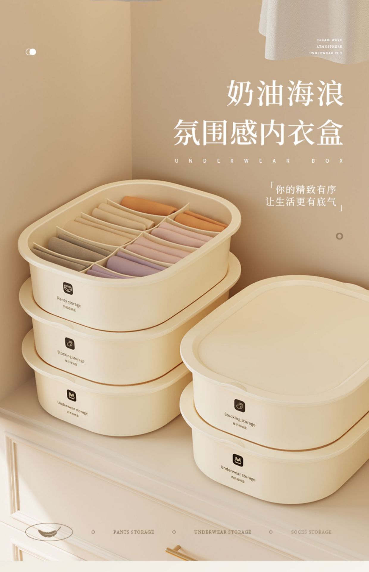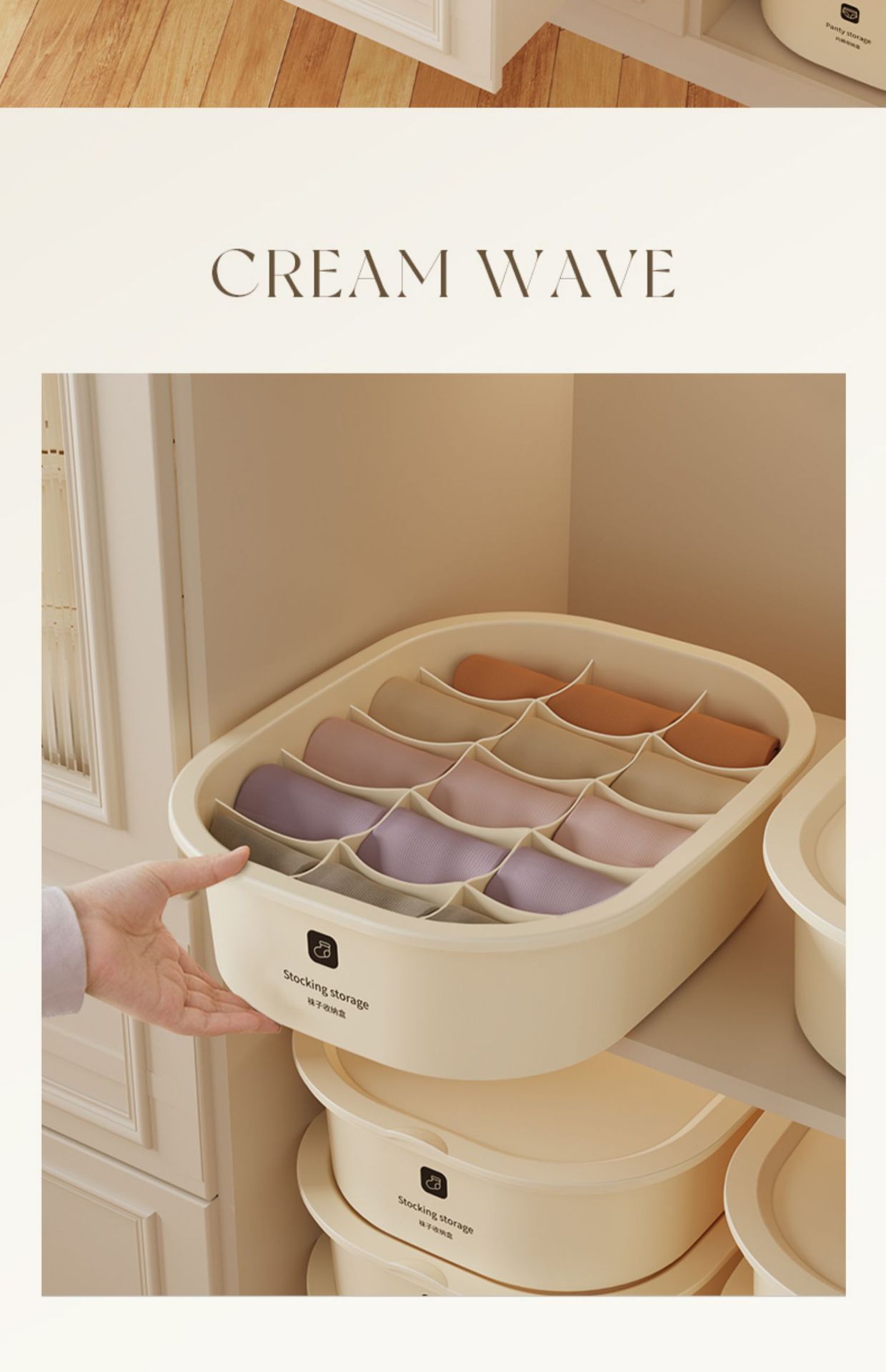 • 크림 화이트 뚜껑 포함 10칸 [속옷 30벌 수납 가능]