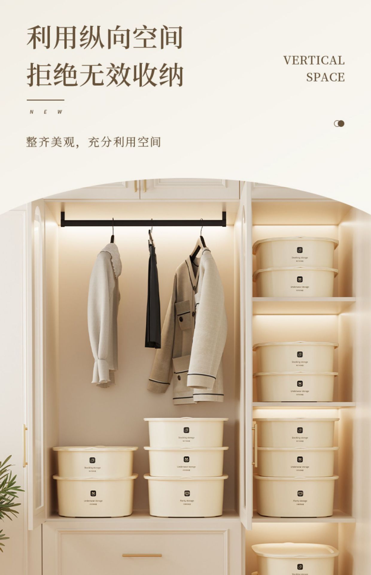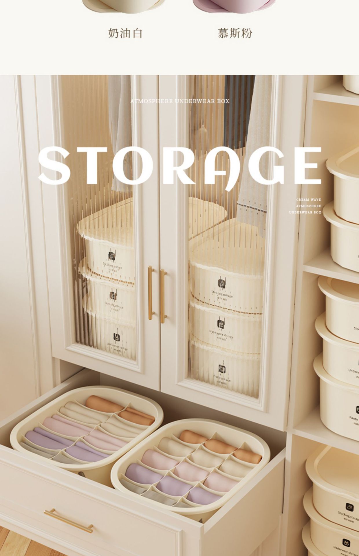 • 그리드와 뚜껑이 없는 크림 화이트 [속옷 12벌 수납 가능]