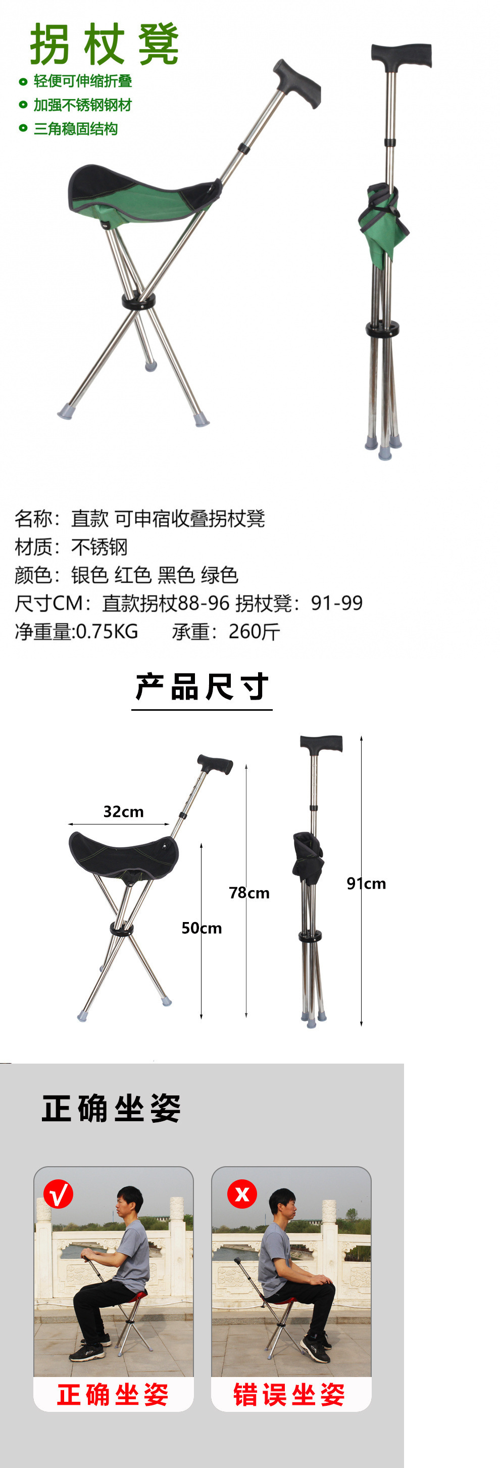 노인을 위한 야외 등산용 접이식 직선 지팡이 의자, 보조 산책 지팡이, 레저 등산 후크 낚시 의자스토어 가기
