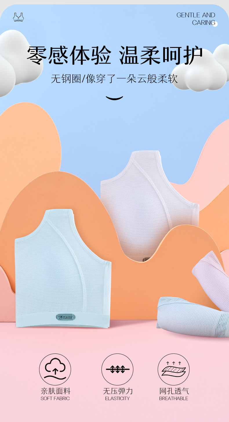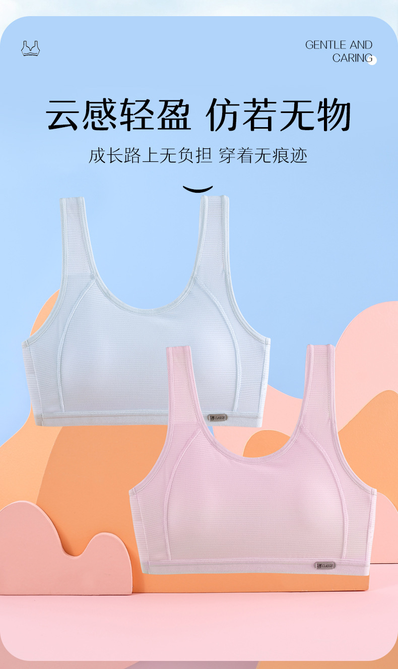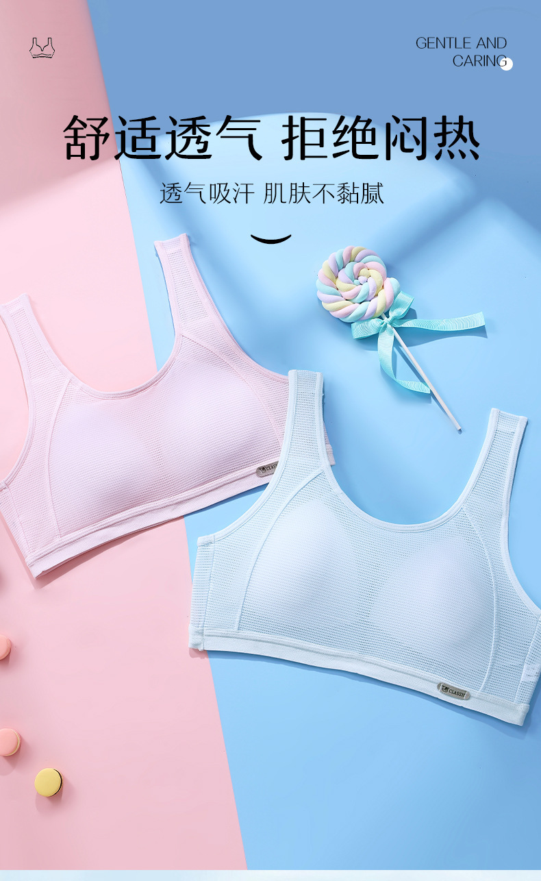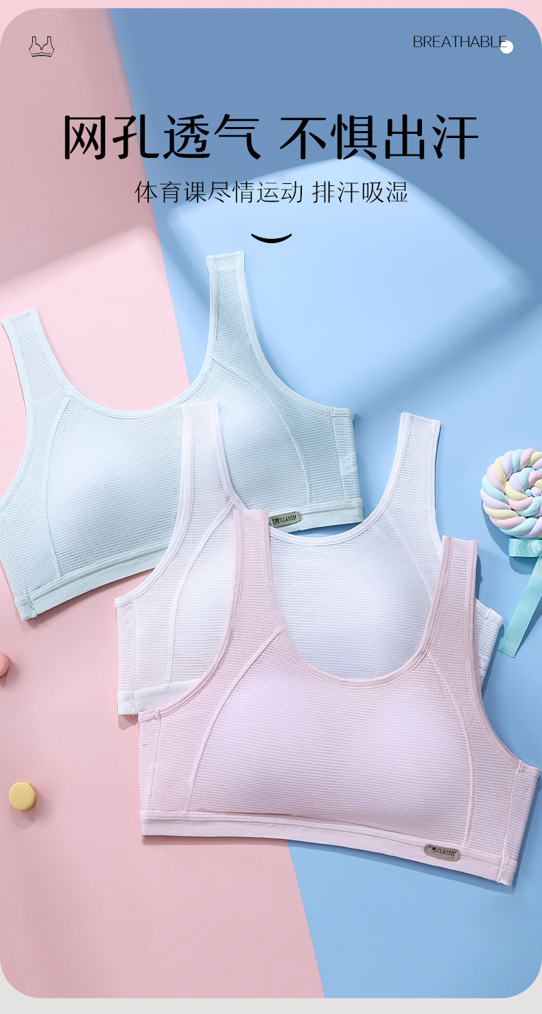 여자 속옷, 청소년 발달기 여학생 조끼, 여름 통기성 스포츠 조끼, 여성용 메쉬 얇은 브래지어