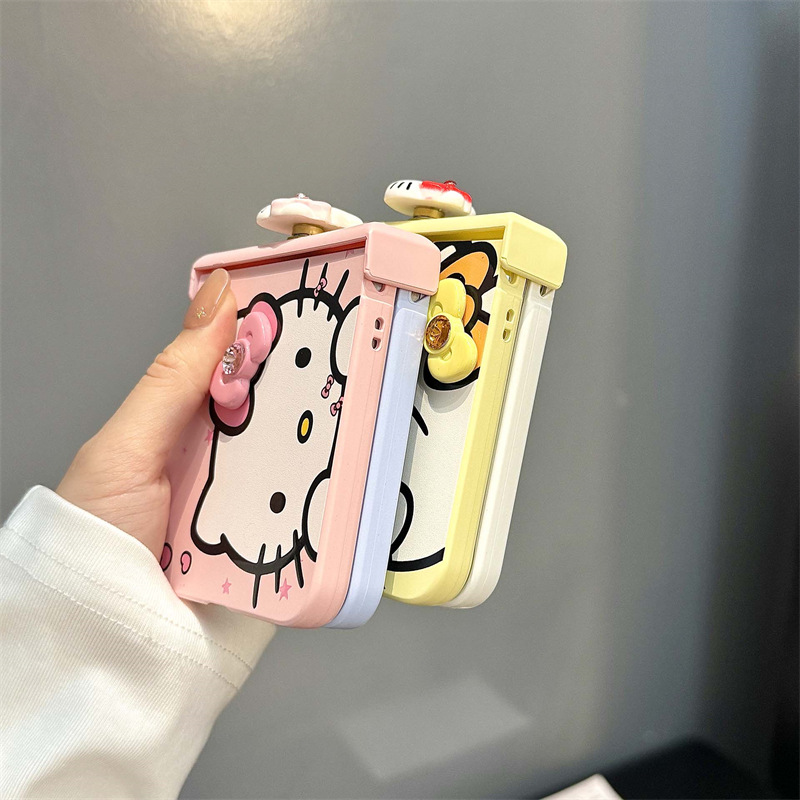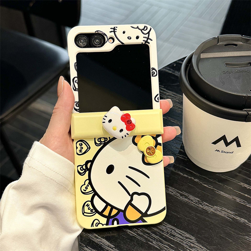 삼성 갤럭시 zflip3/4/5/6 세대 3 조각 전화 케이스 새로운 zflip6 에 대한 귀여운 만화