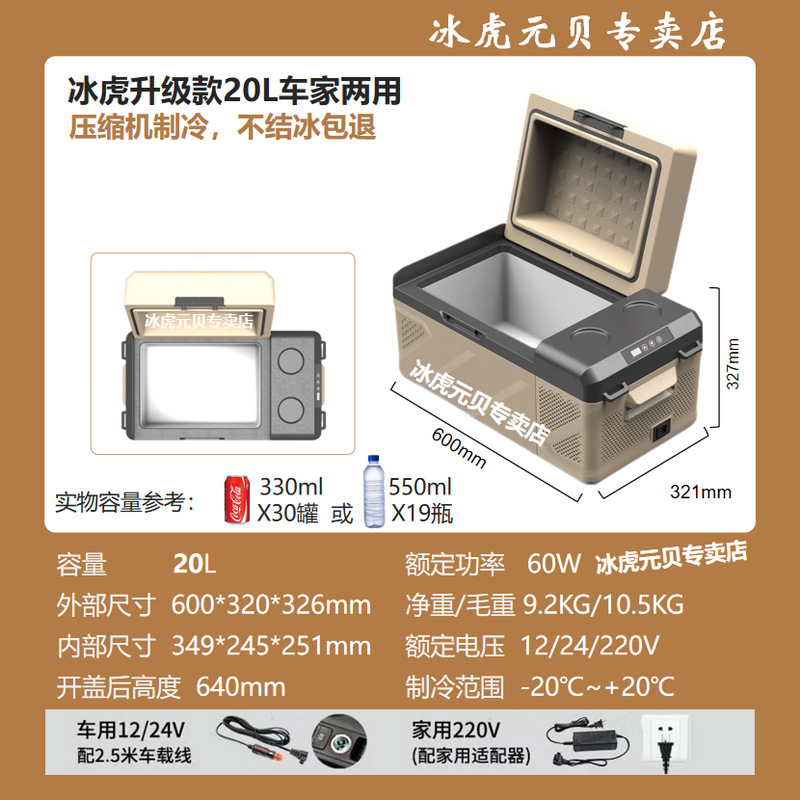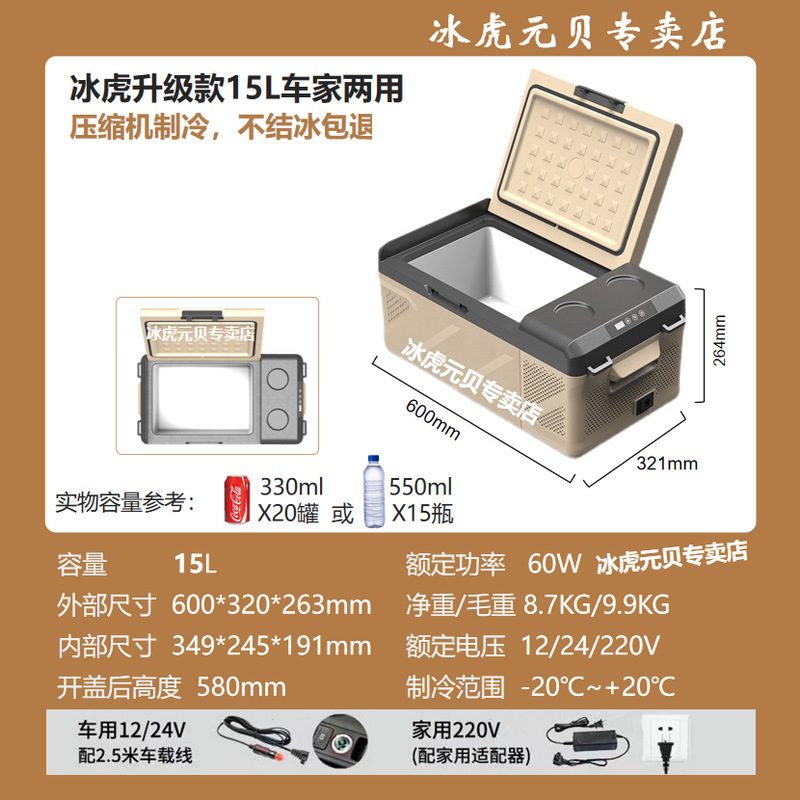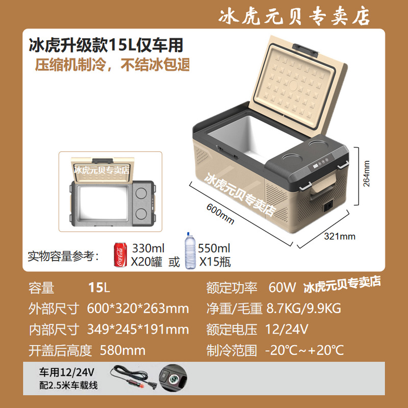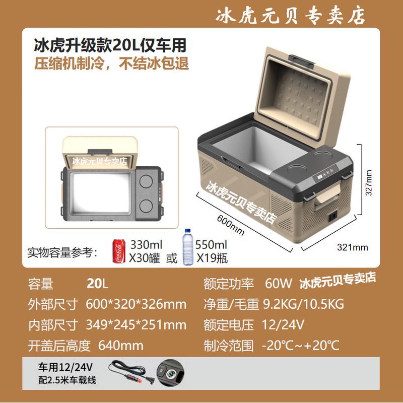 2024 Ice Tiger 새로운 업그레이드 자동차 냉장고 15/20L 휴대용 야외 자동차 트럭 가정용 소형 냉동고스토어 가기