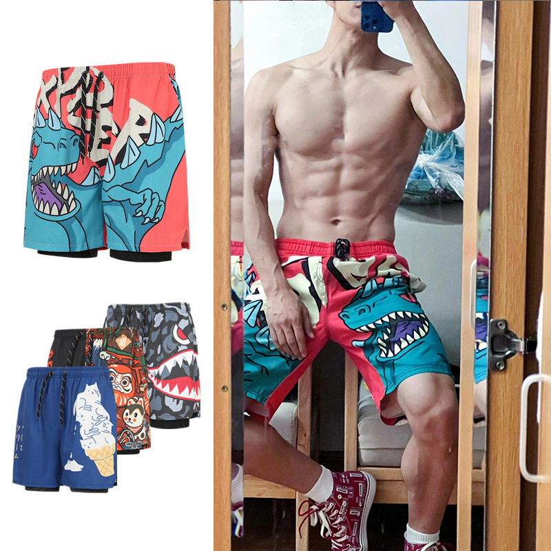 남녀공용 수영팬츠, 이중층 속건성, 당황스러움 방지, 수영팬츠, 해변용 비치팬츠, 온천 수영복 세트