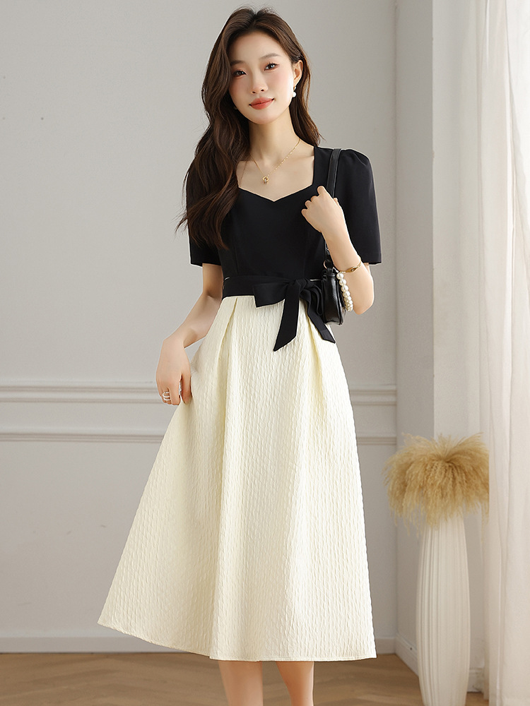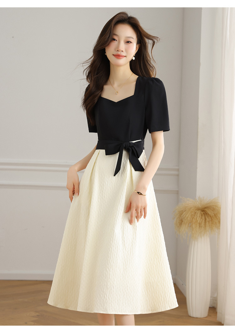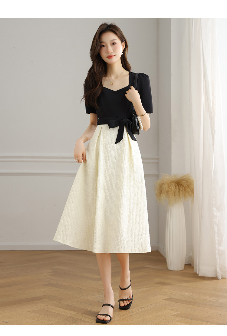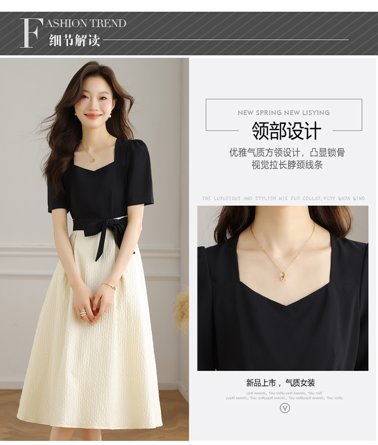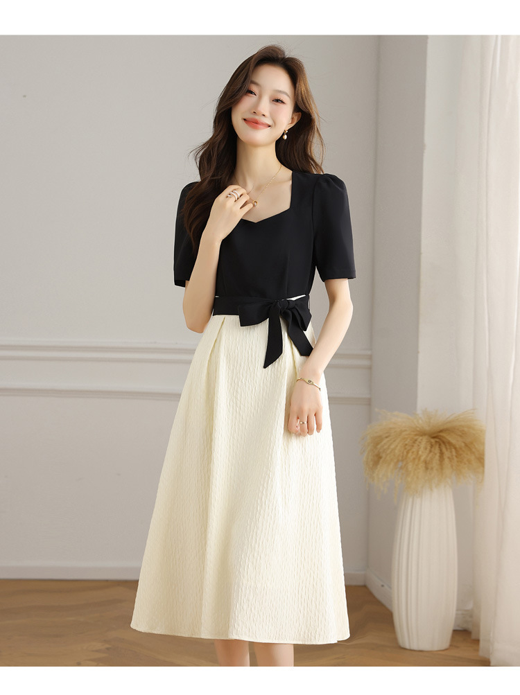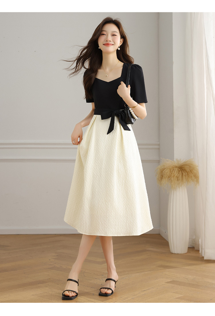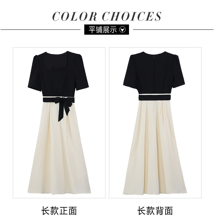 스퀘어 넥 드레스 여성 2025 여름 신작 프렌치 티 브레이크 투피스 흑백 스플라이싱 허리 슬리밍 스커트