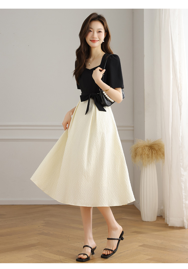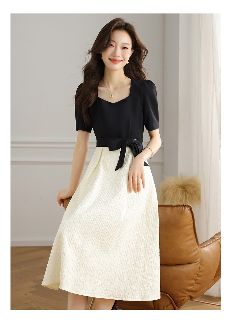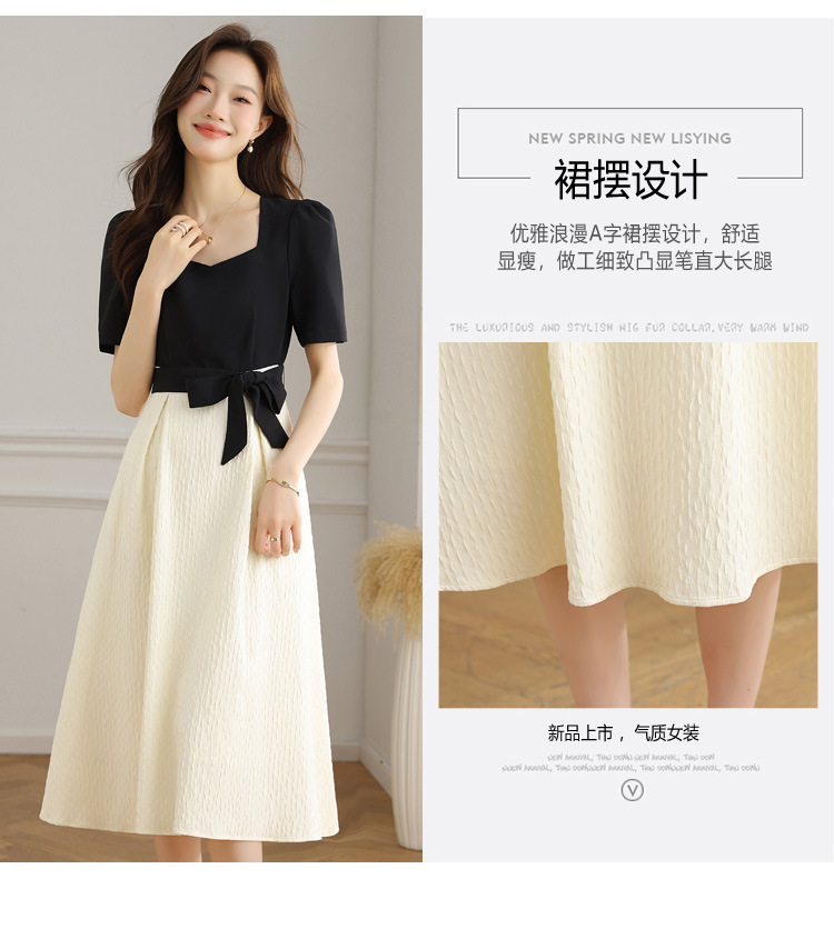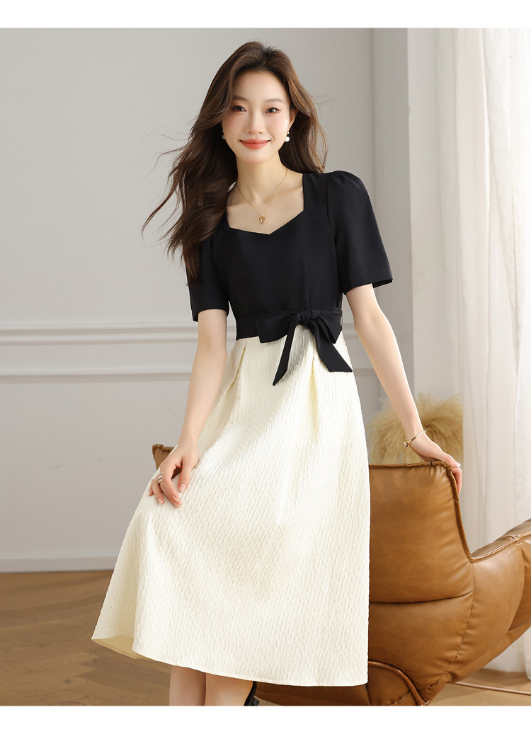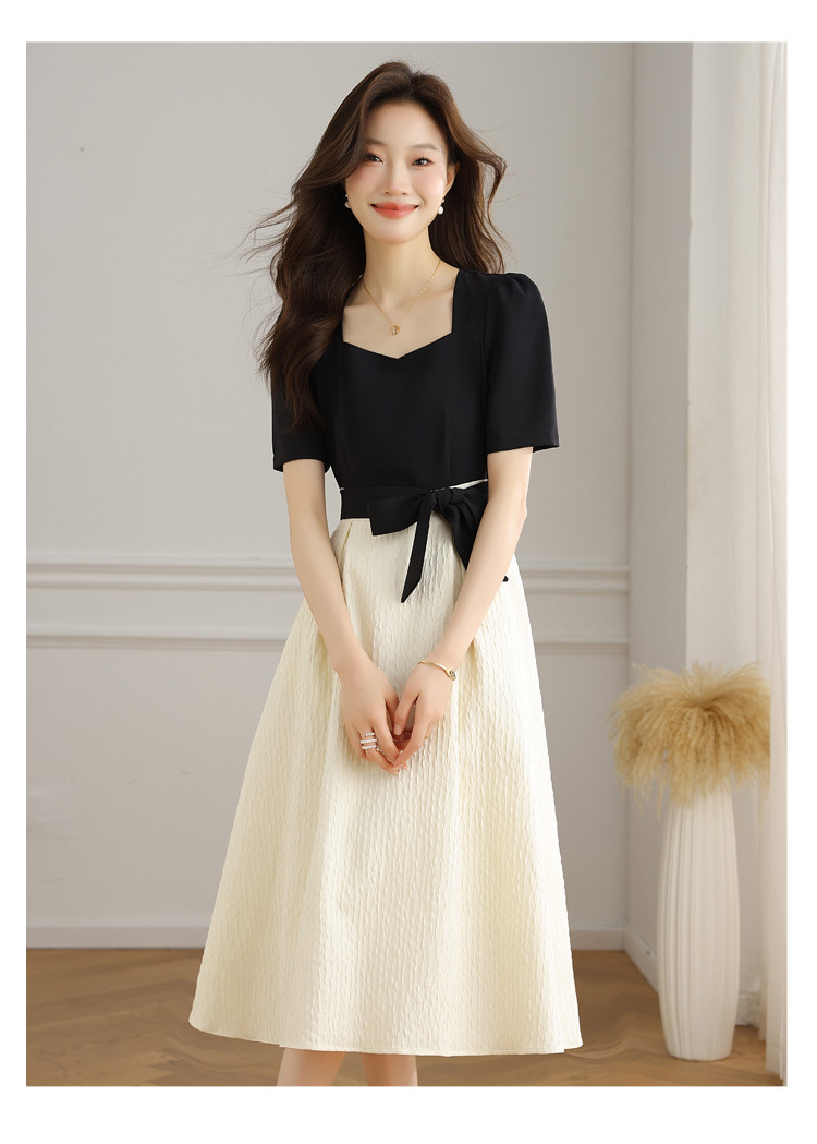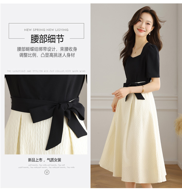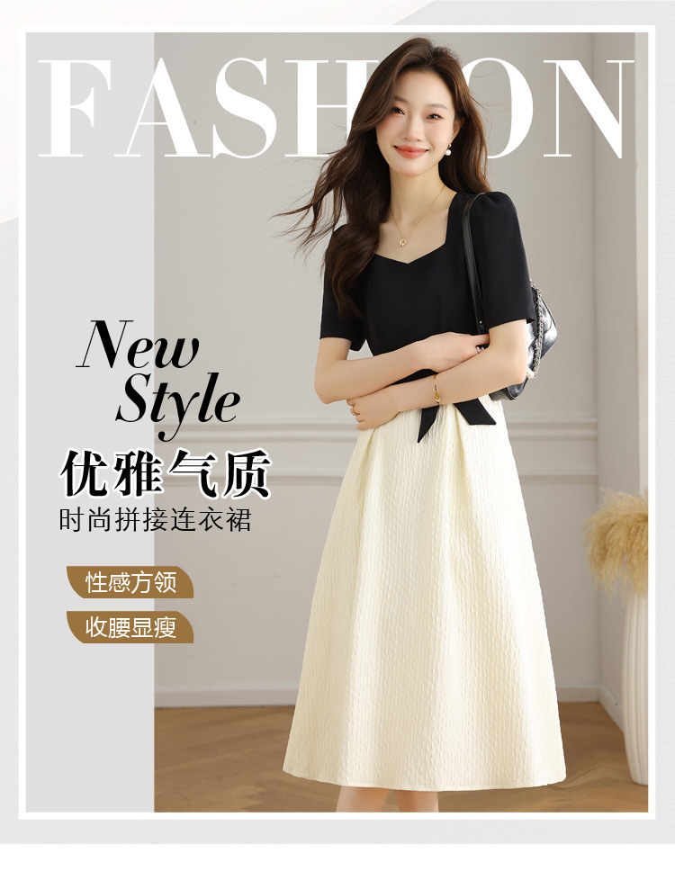 스퀘어 넥 드레스 여성 2025 여름 신작 프렌치 티 브레이크 투피스 흑백 스플라이싱 허리 슬리밍 스커트