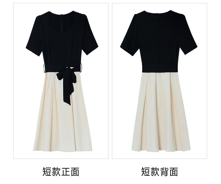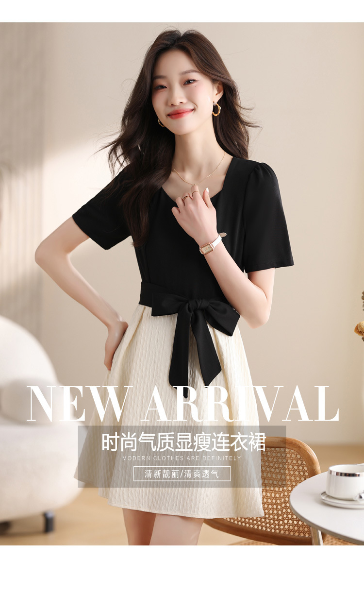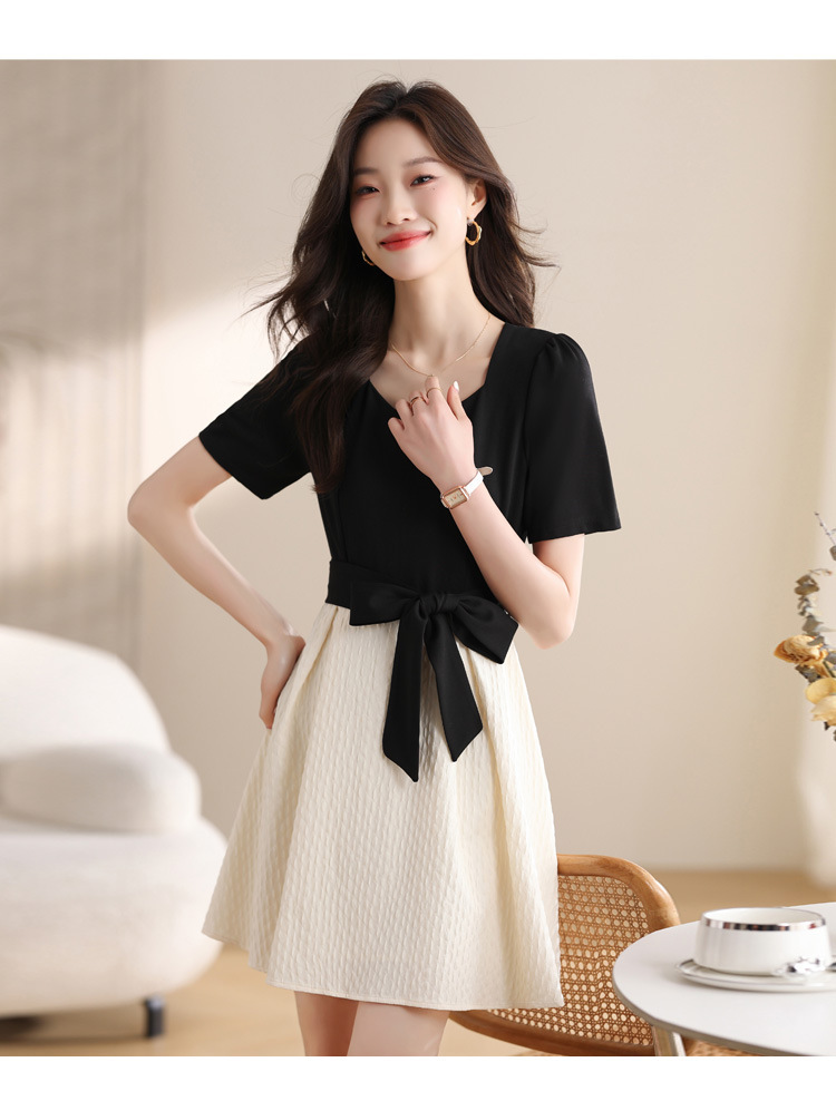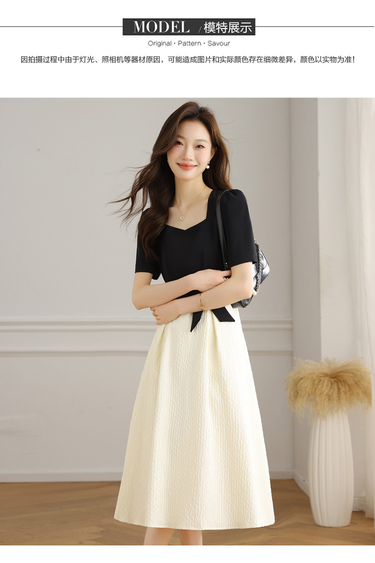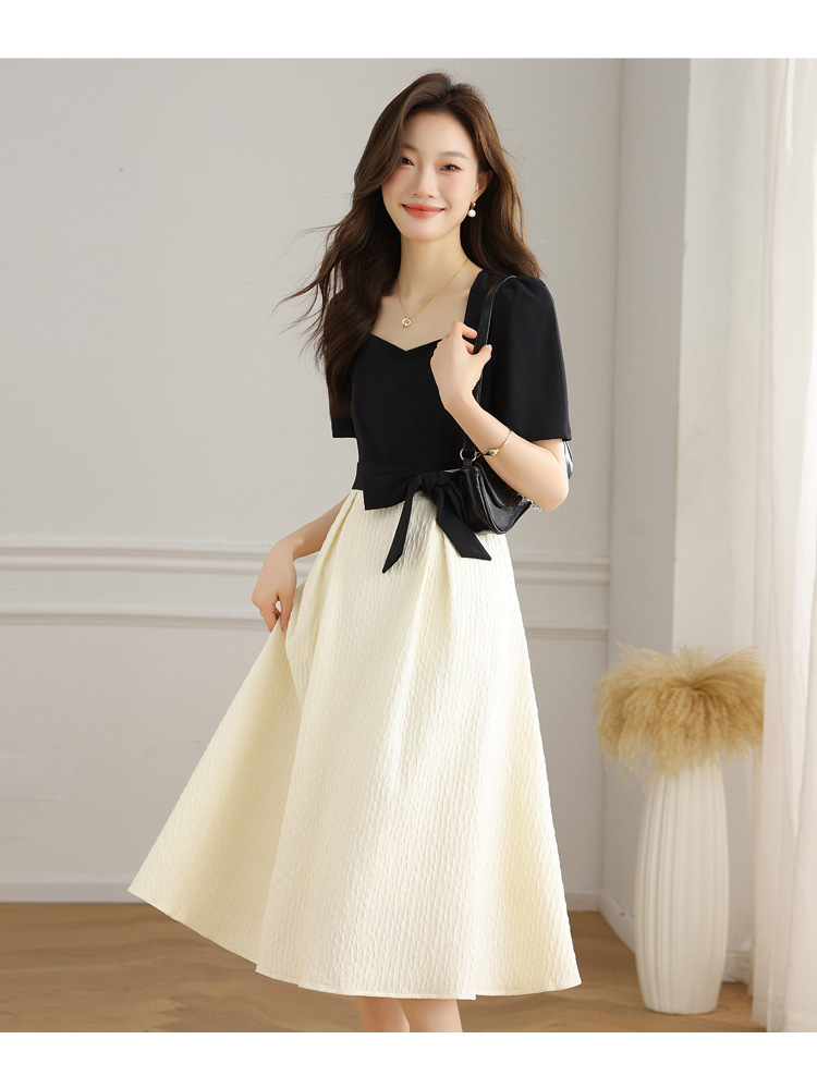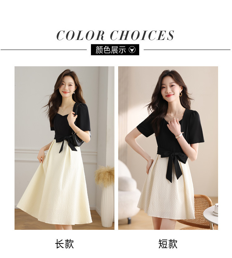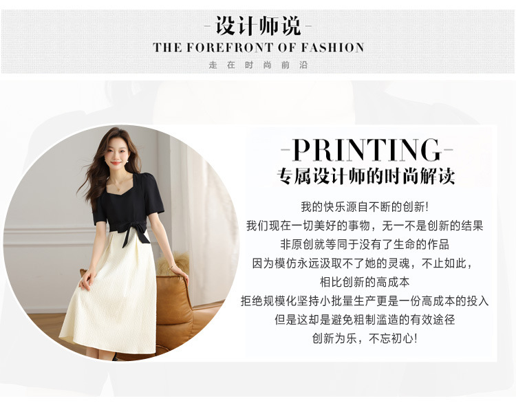 스퀘어 넥 드레스 여성 2025 여름 신작 프렌치 티 브레이크 투피스 흑백 스플라이싱 허리 슬리밍 스커트