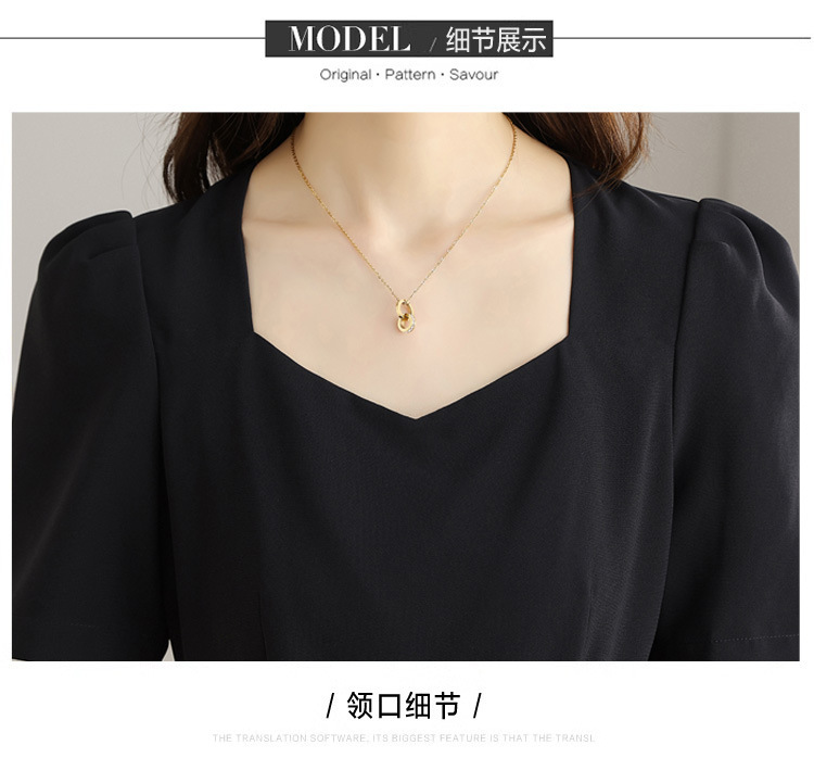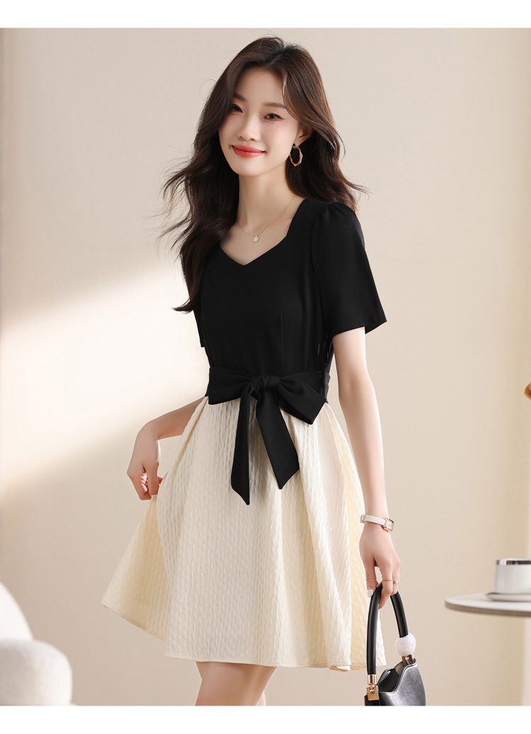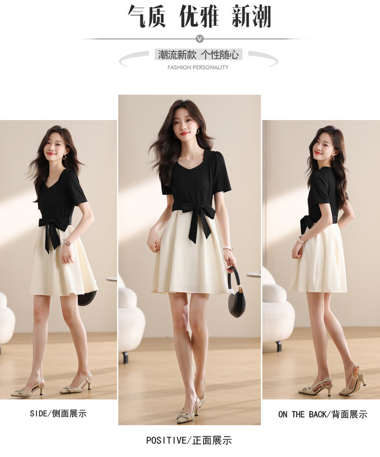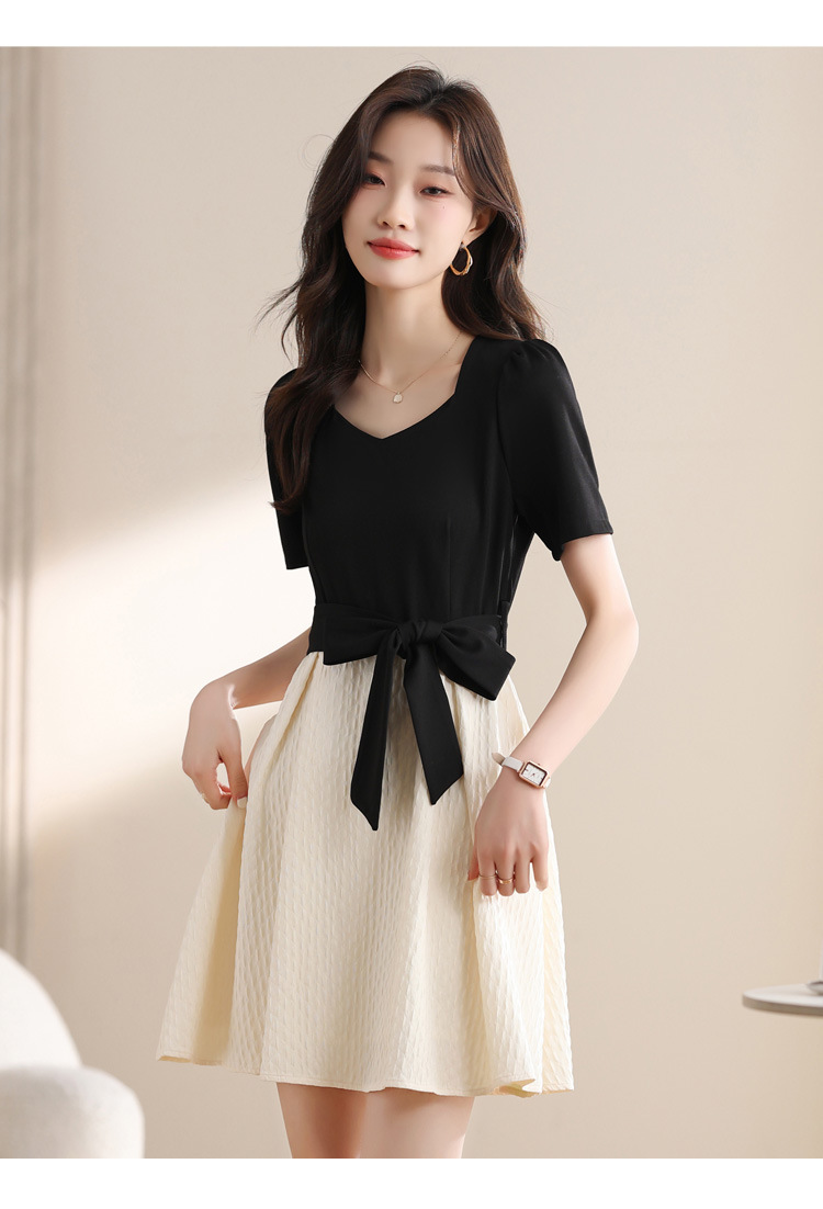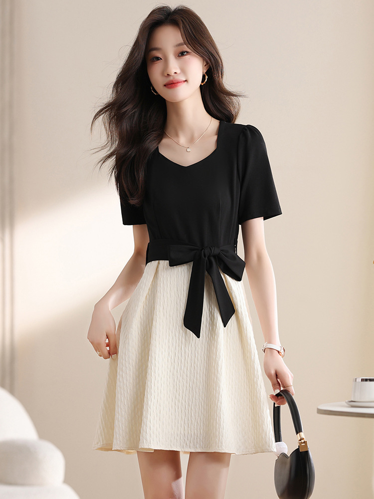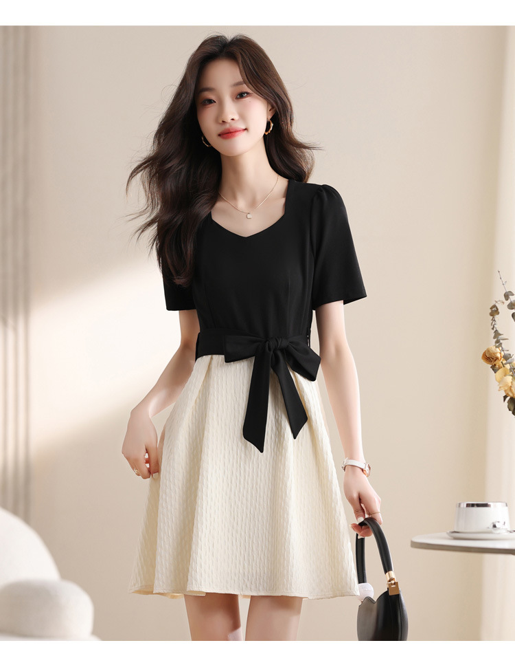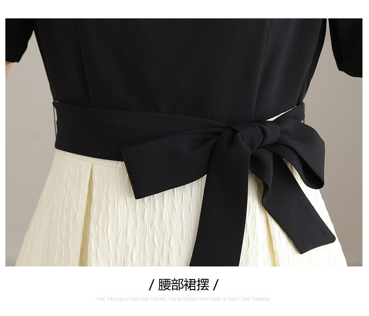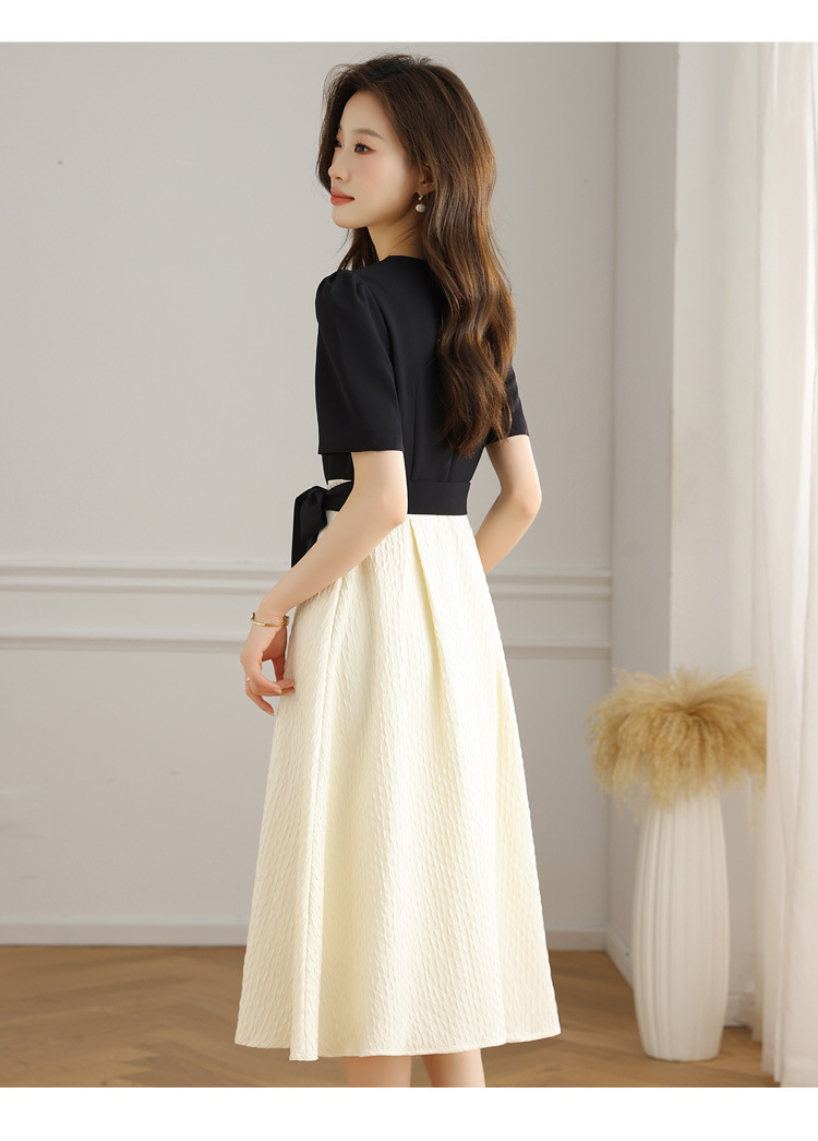 스퀘어 넥 드레스 여성 2025 여름 신작 프렌치 티 브레이크 투피스 흑백 스플라이싱 허리 슬리밍 스커트