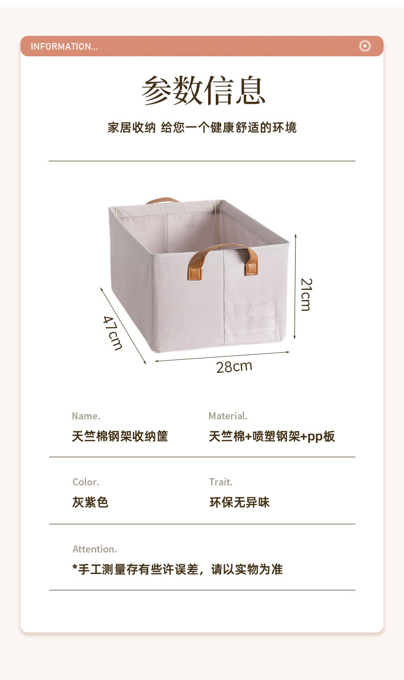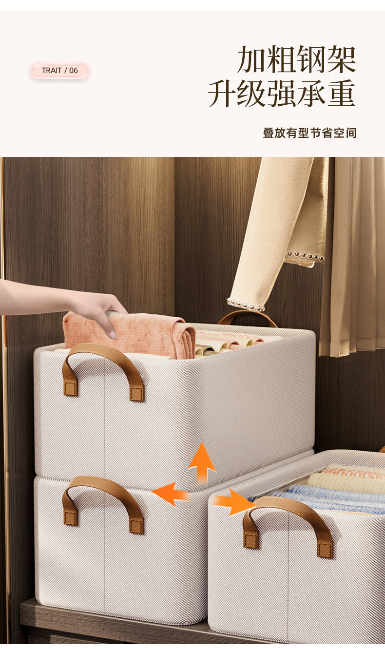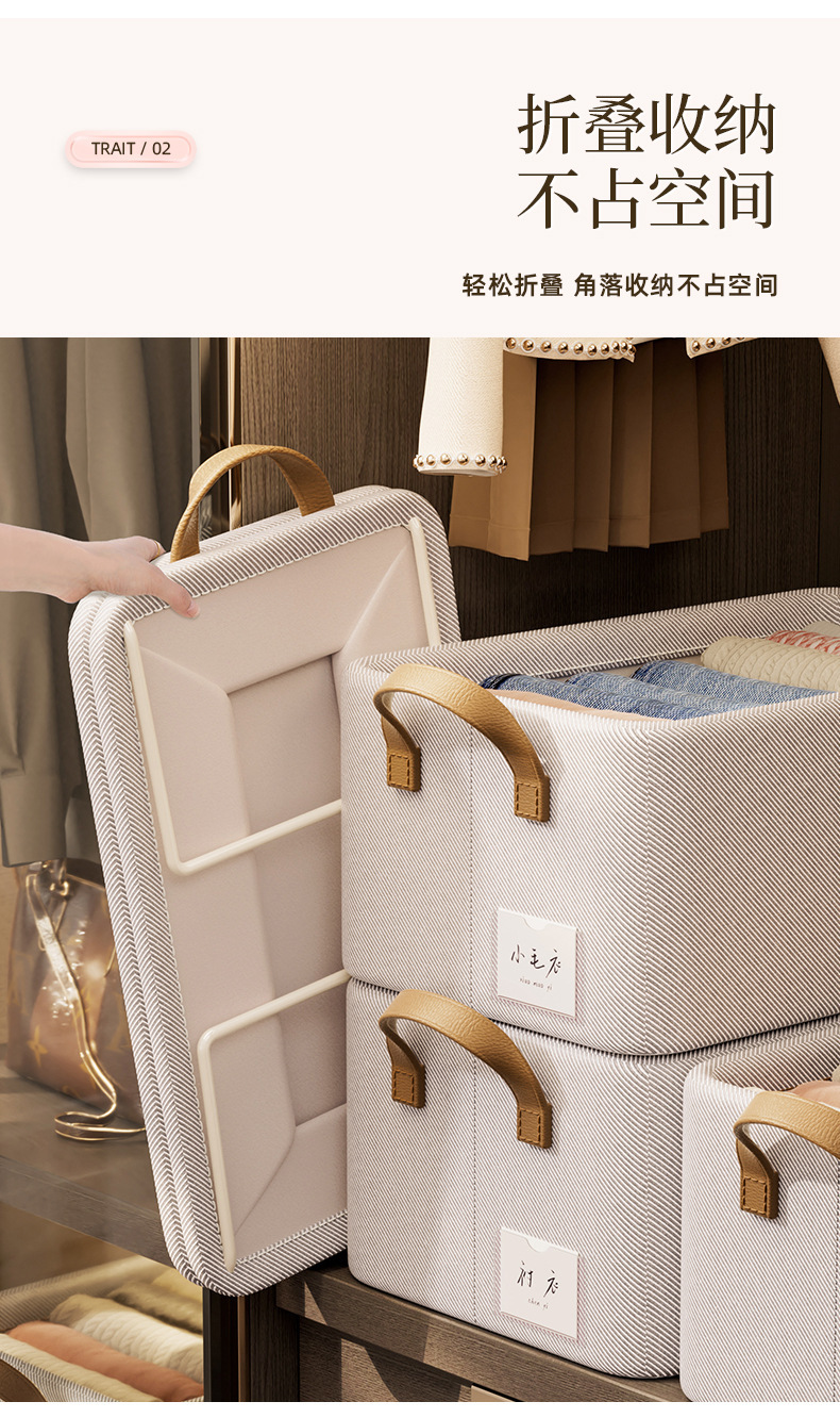 재고 있음 인터넷 연예인 모델 Tianzhu 면 보관 바구니 접이식 세탁 가능 Tianzhu 면 강철 프레임 바구니 옷과 바지 보관 상자스토어 가기