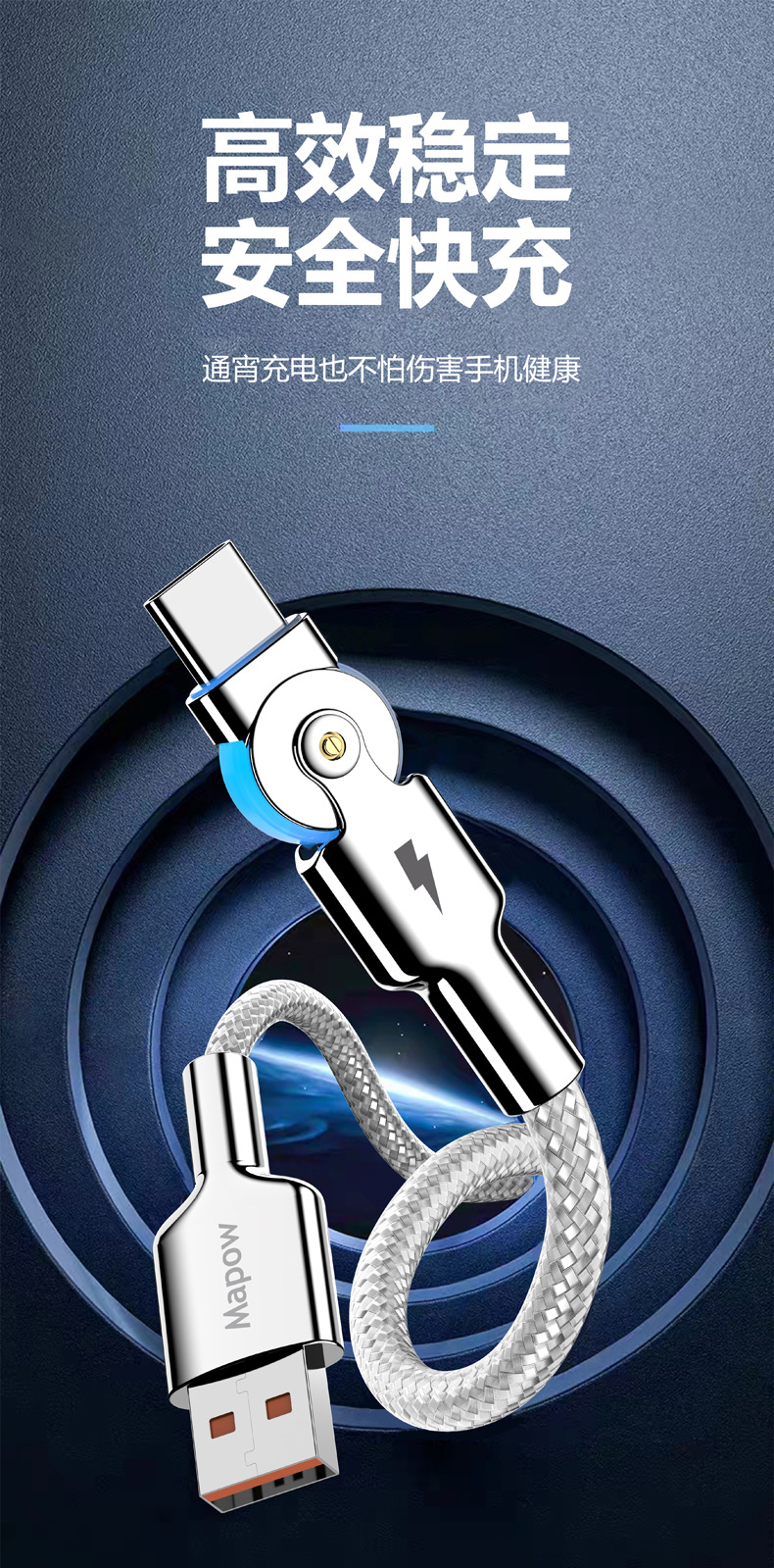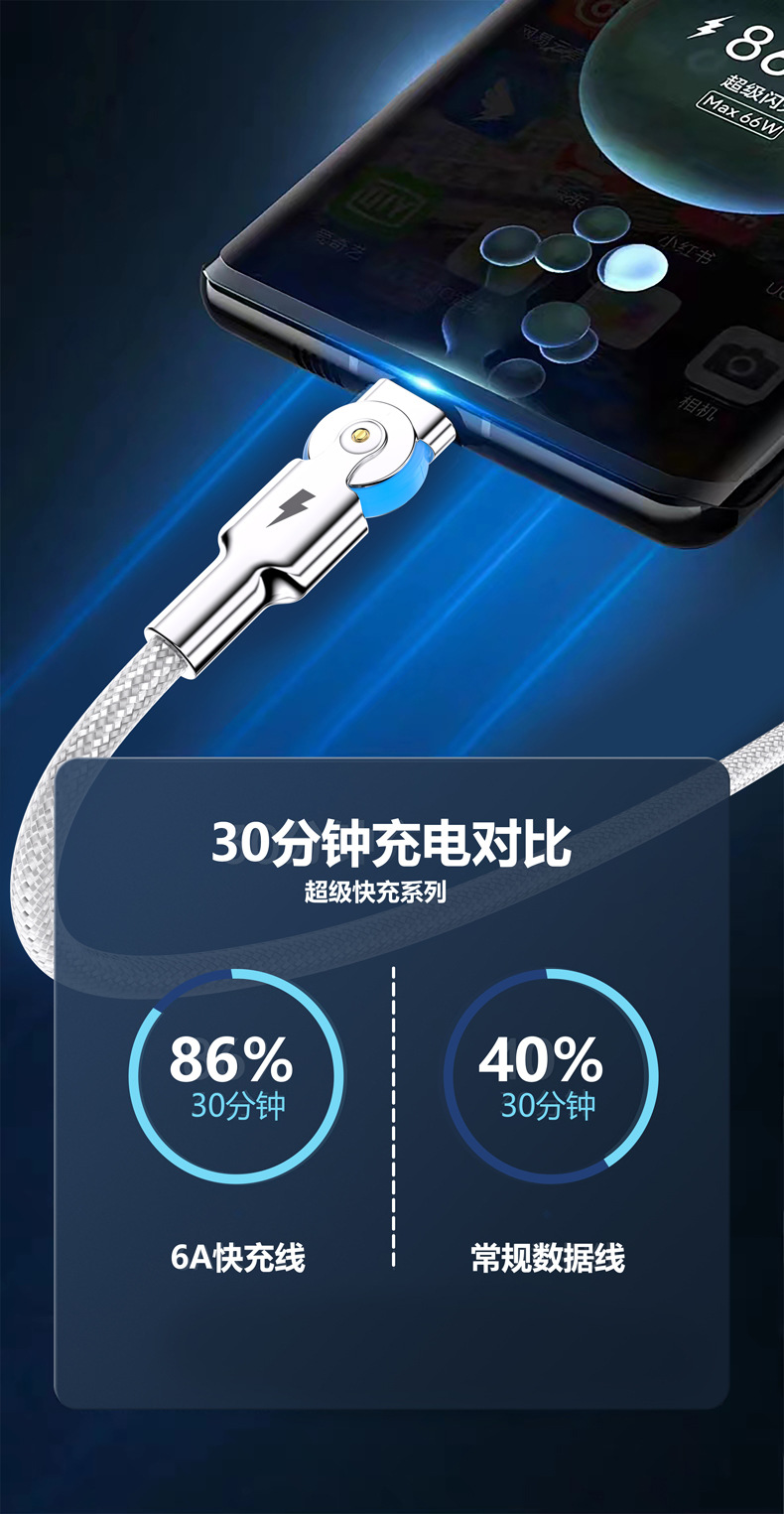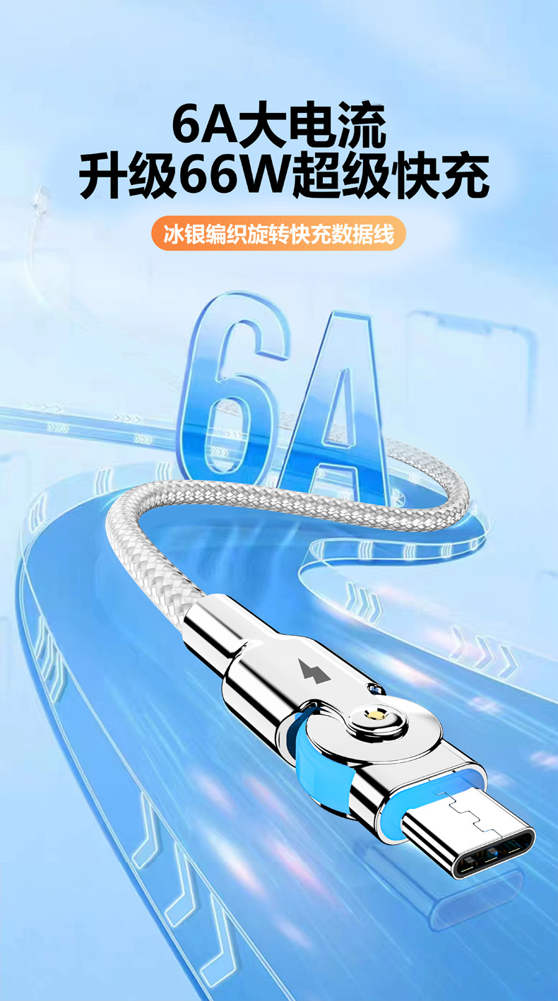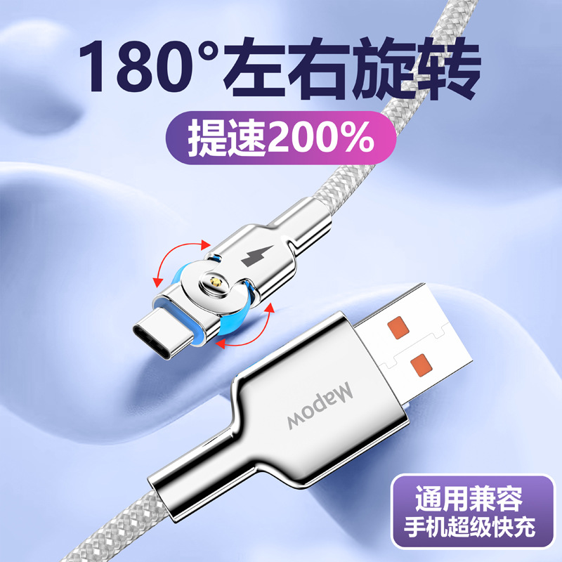 Apple Android 충전 케이블에 적합한 조명이 장착된 아연 합금 회전 확장형 Type-C 고속 충전 데이터 케이블 휴대폰 차량스토어 가기
