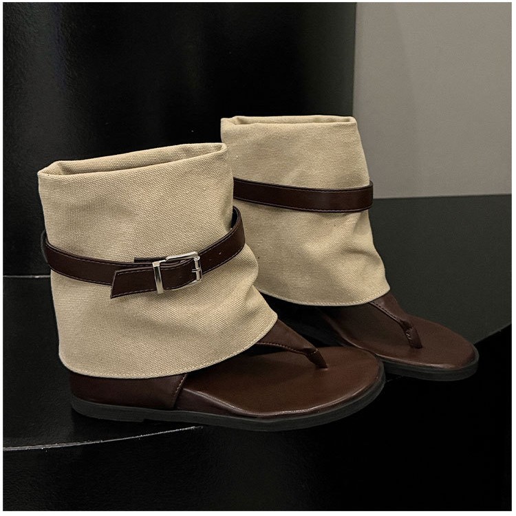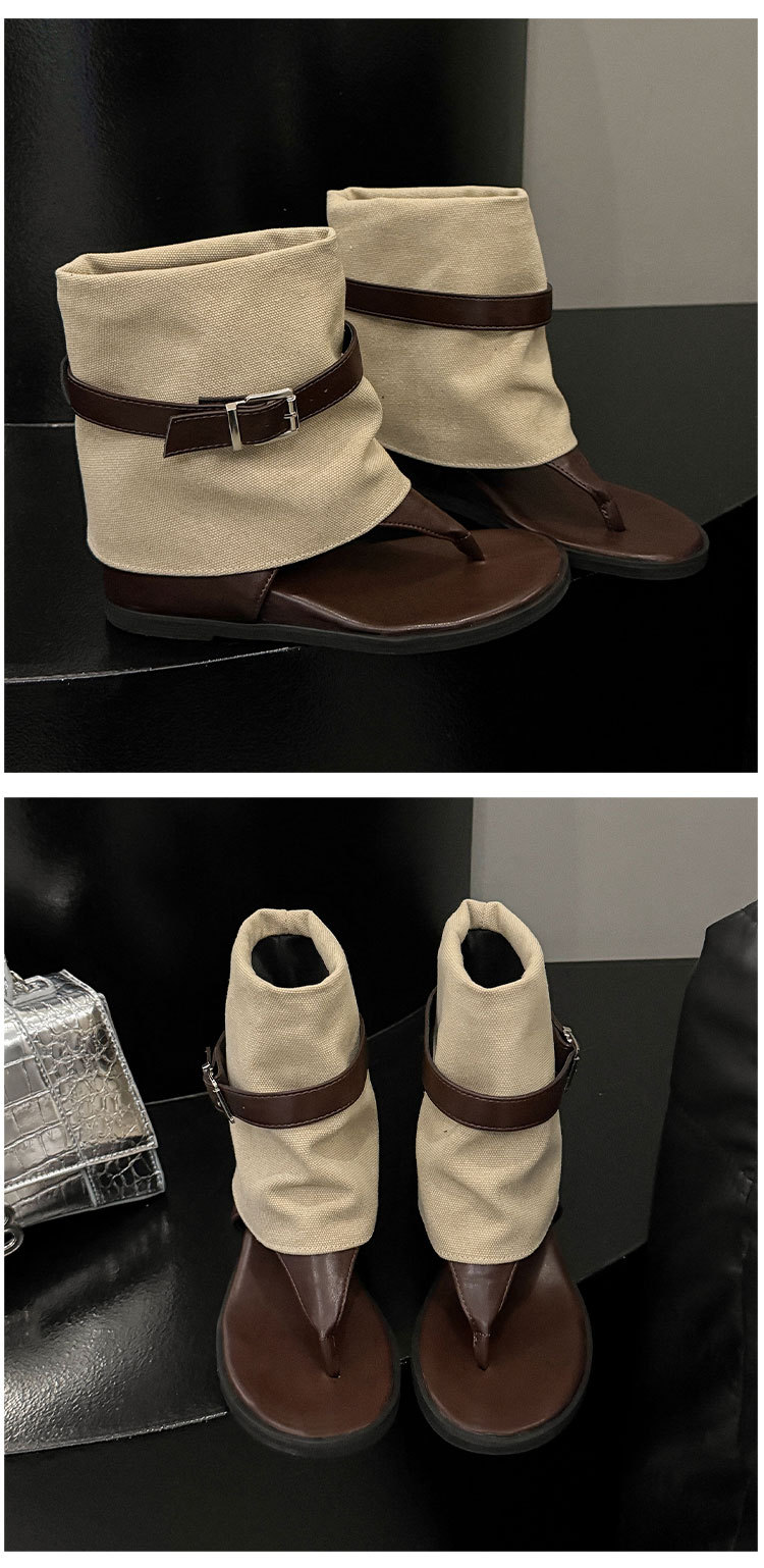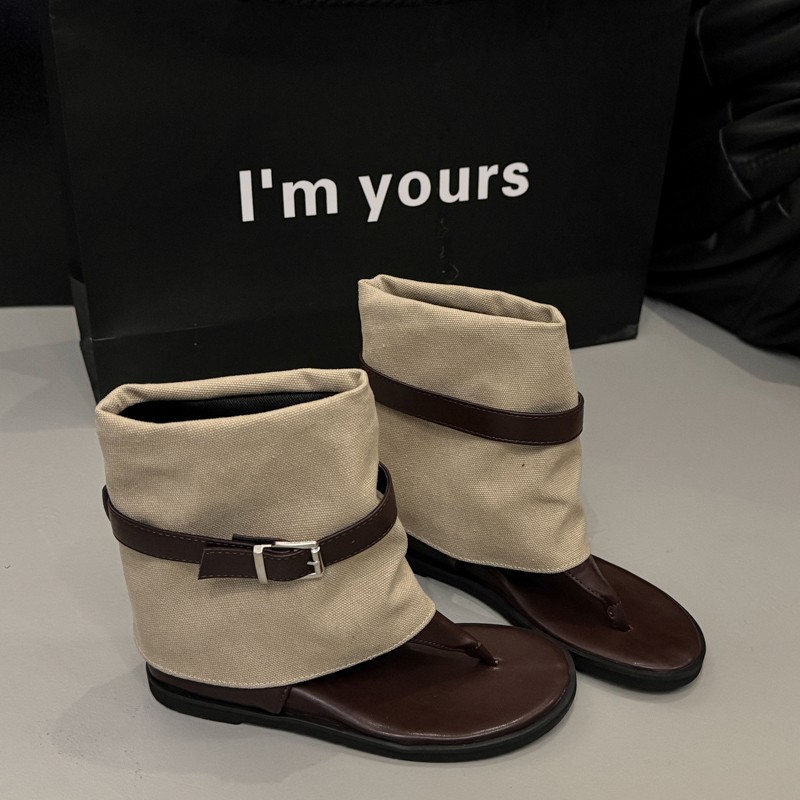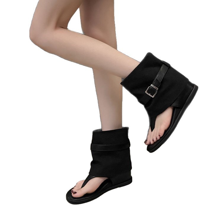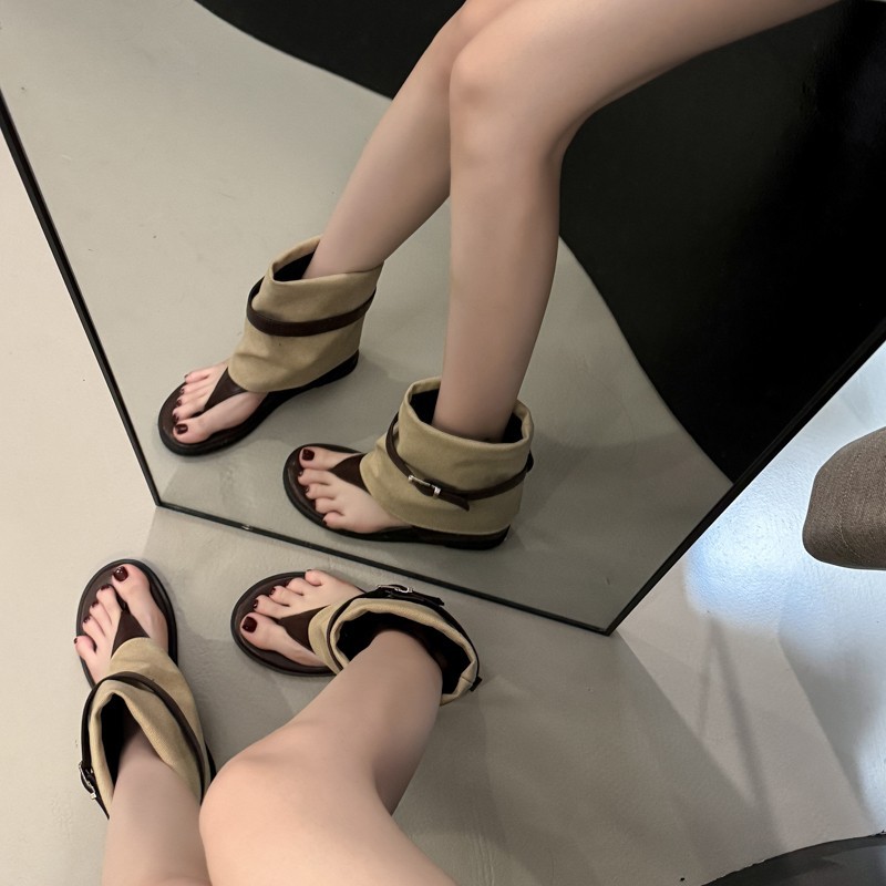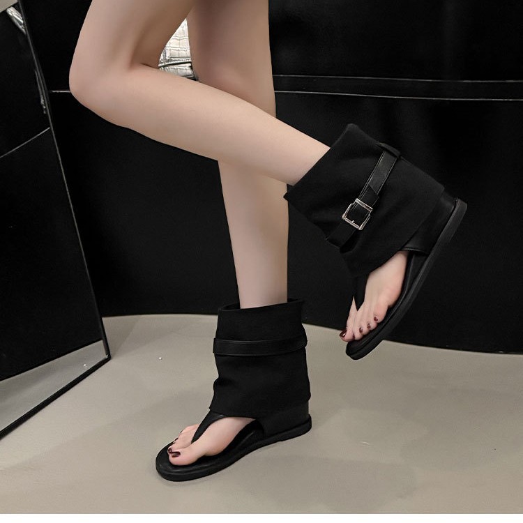 2025년 여름 새로운 유럽과 미국의 패션 솔리드 컬러 헤링본 스타일 라운드 헤드 벨트 버클 하이탑 여성용 다용도 웨지 샌들