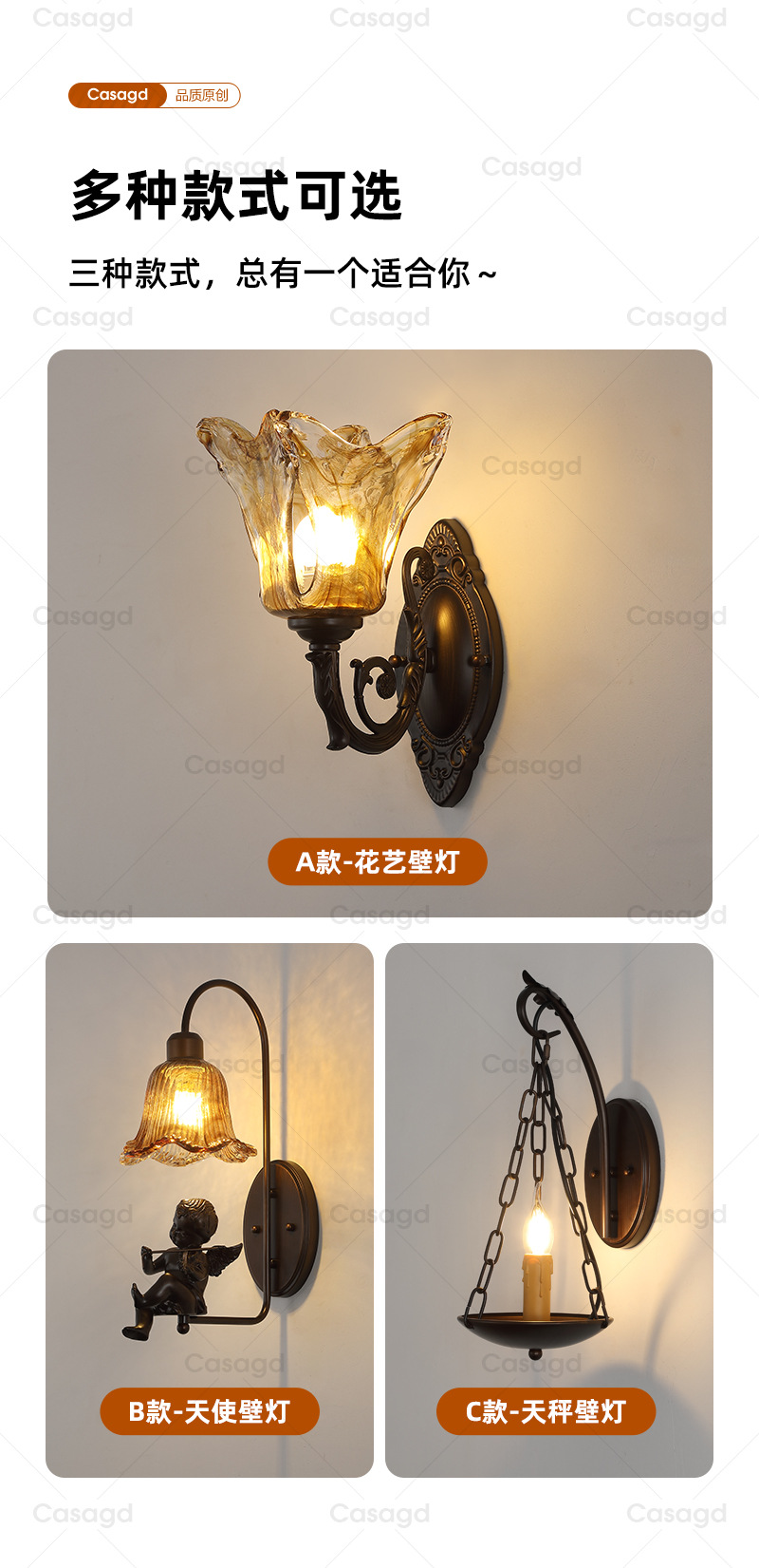 프랑스 중세 스타일 벽등 창의적인 미국 복고풍 거실 침실 침대 옆 벽등 창의적인 작은 천사 계단등