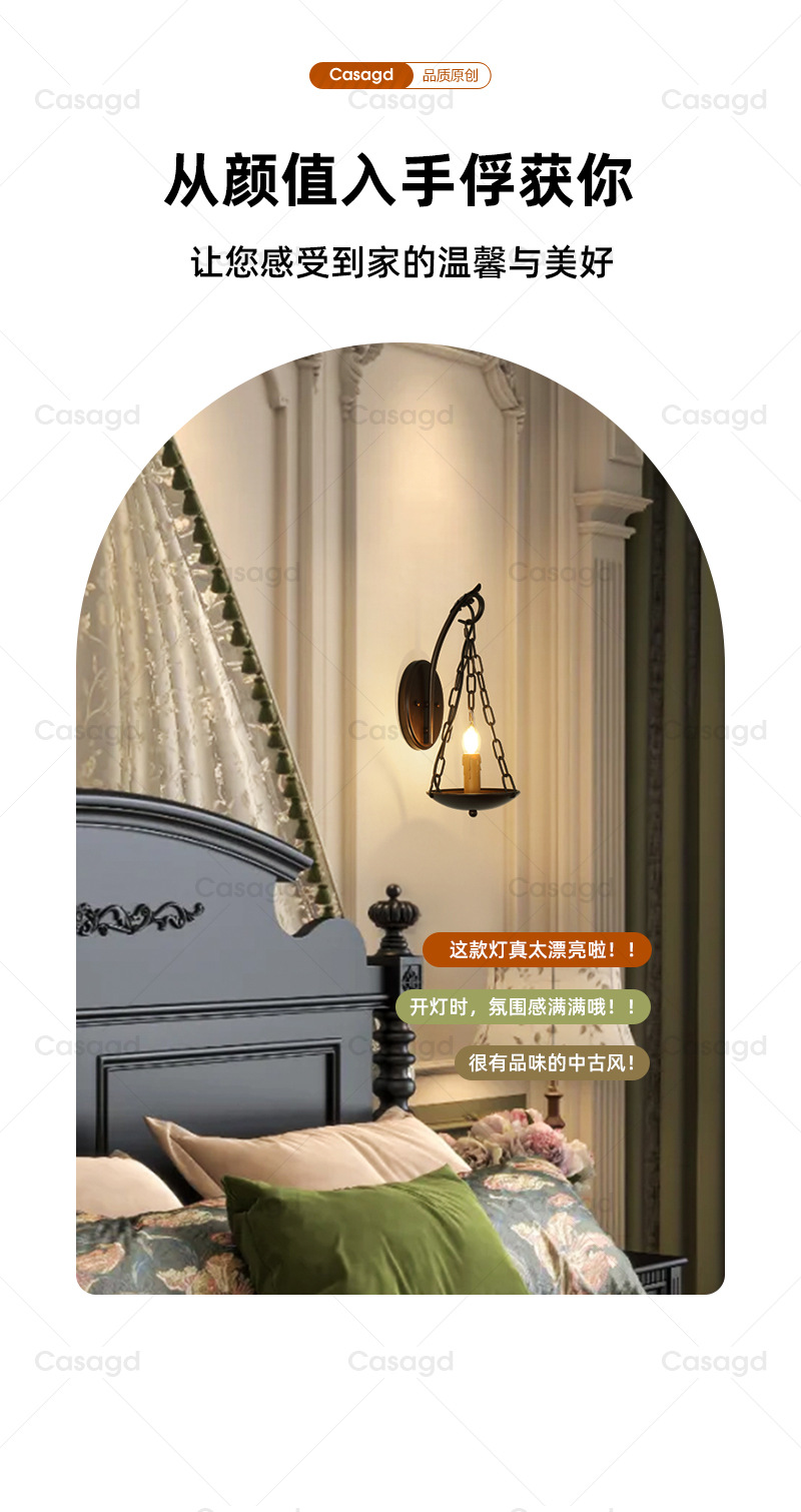 프랑스 중세 스타일 벽등 창의적인 미국 복고풍 거실 침실 침대 옆 벽등 창의적인 작은 천사 계단등스토어 가기