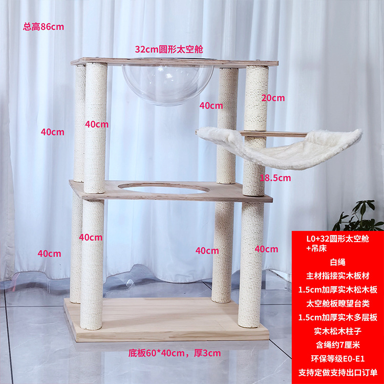 • L0 흰색 밧줄 + 32개의 원형 우주 캡슐 + 해먹 + 고품질 고양이 둥지(높이 86cm)