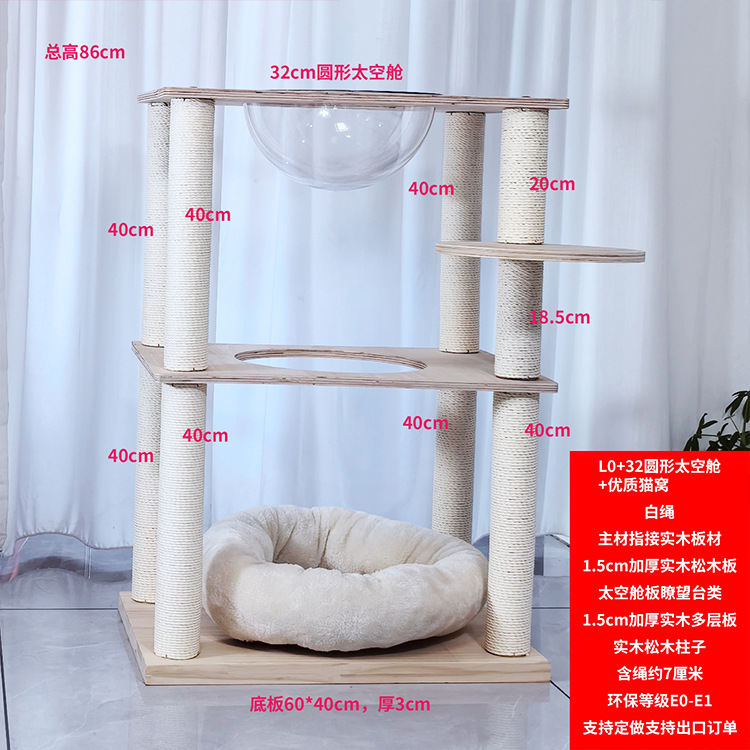 • L0 흰색 밧줄 + 32개의 원형 우주 캡슐 + 고품질 고양이 둥지(높이 86cm)