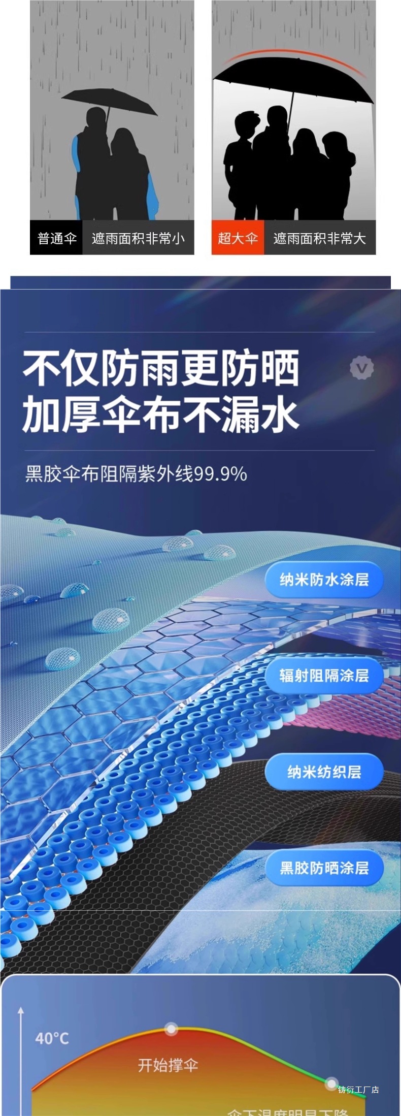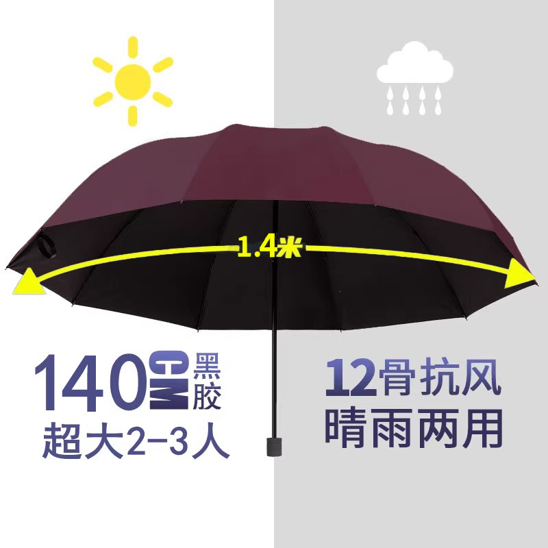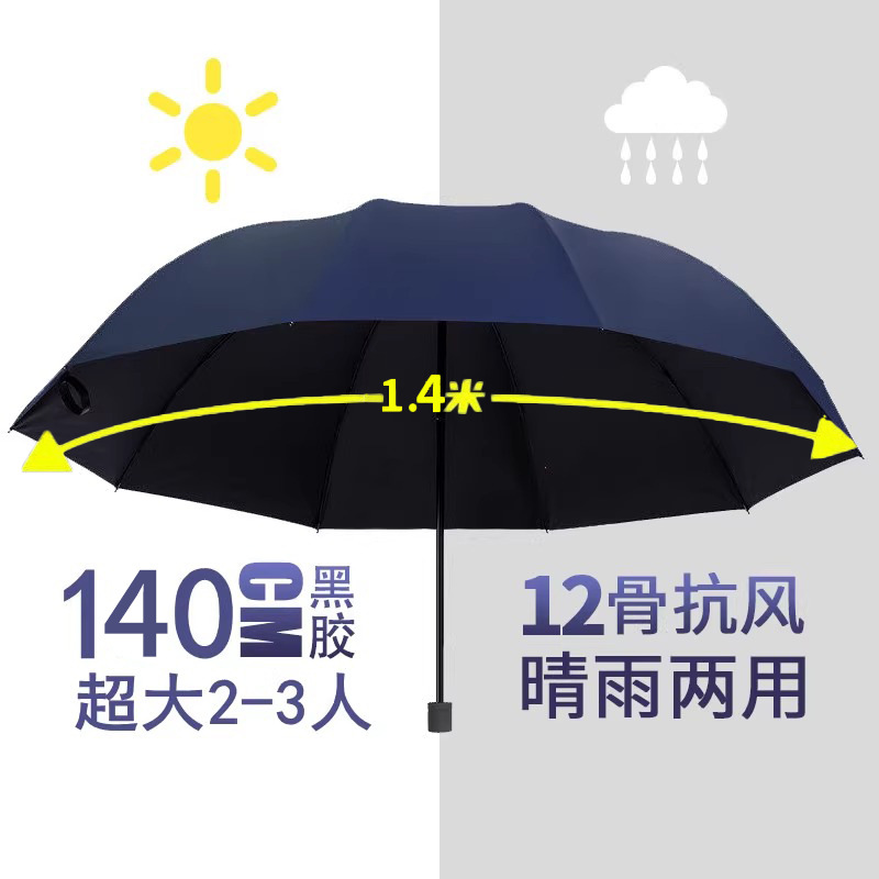 • 검은색 12개 뼈 확대 보강 [3인우산+자외선차단 검정접착제] 우산 표면을 140도까지 펼칠 수 있으며, 파손시 보상해드립니다.